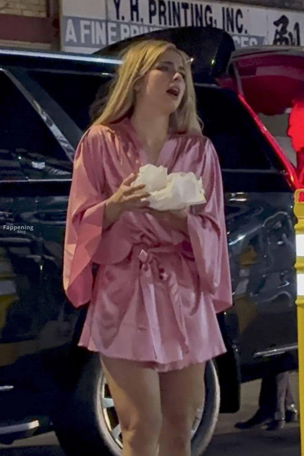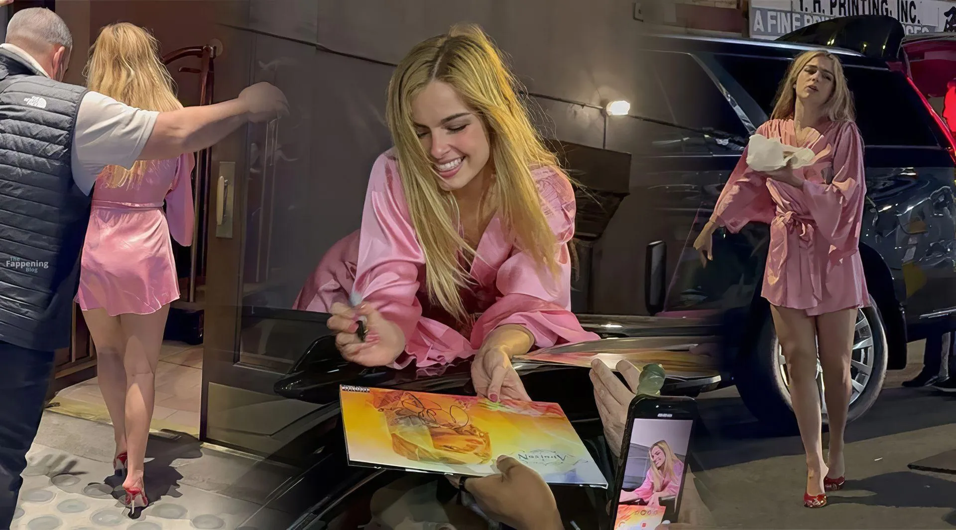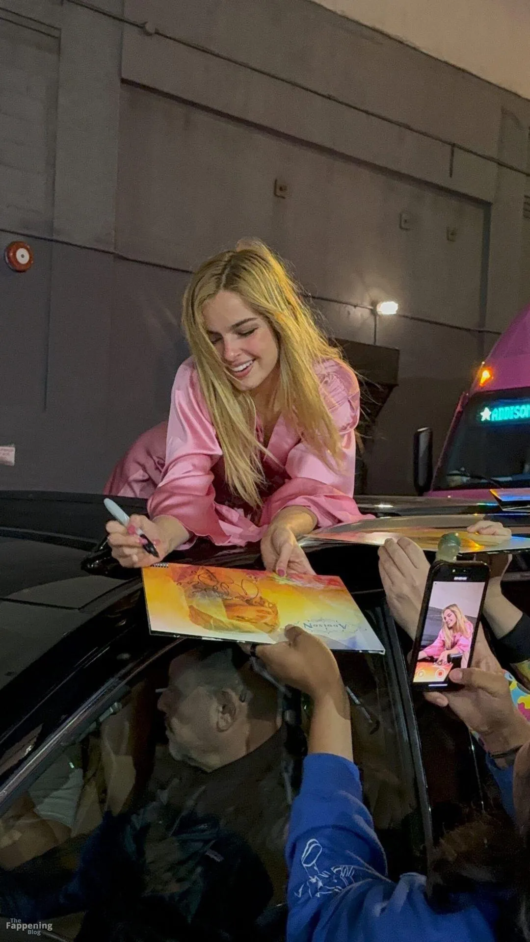 Addison Rae stunned fans in NYC in a silky pink satin mini dress. She was signin’ autographs and showin’ off her toned legs.