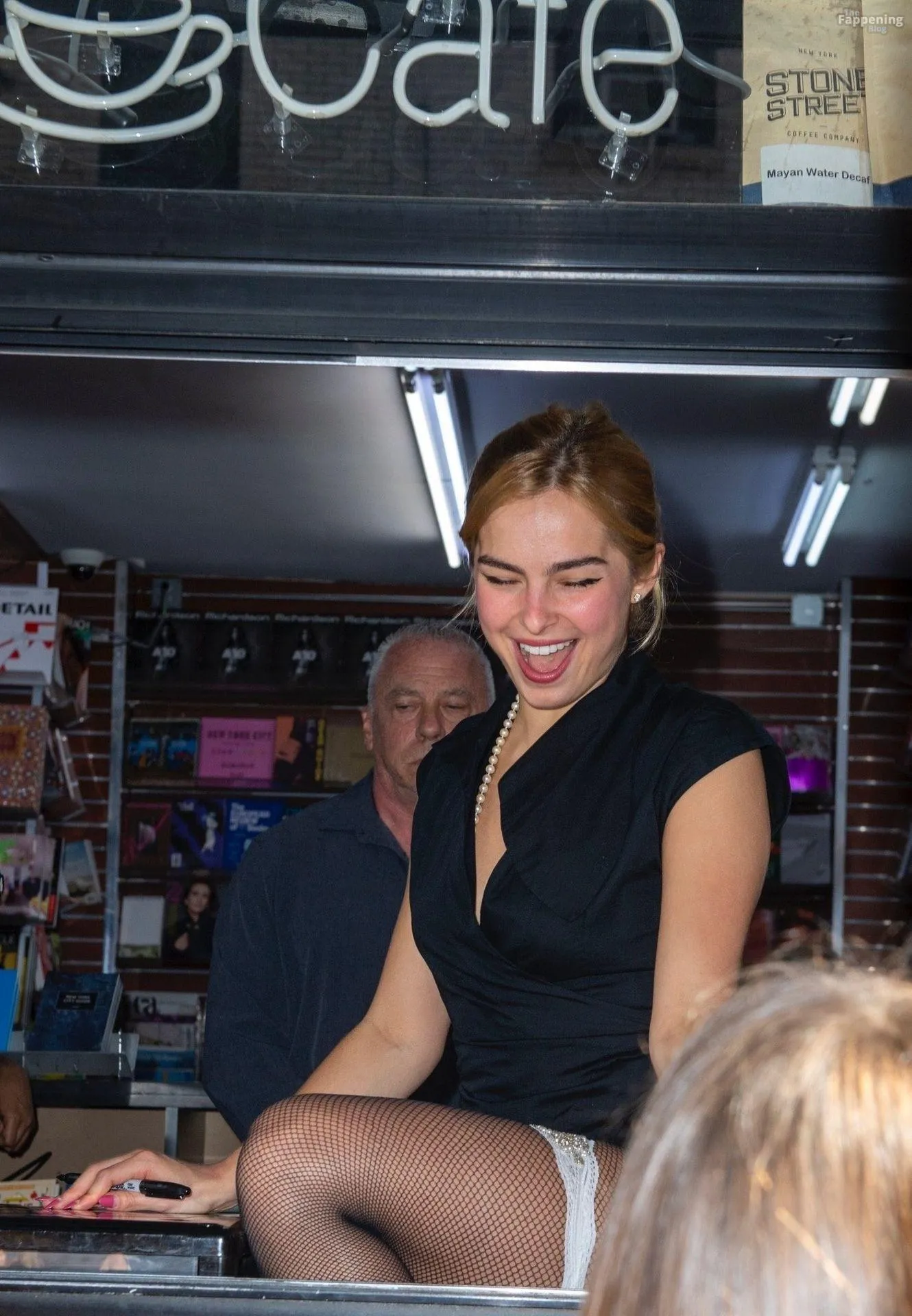 Addison Rae showed off her thighs, lace garter, and sexy legs at her NYC magazine signing.
