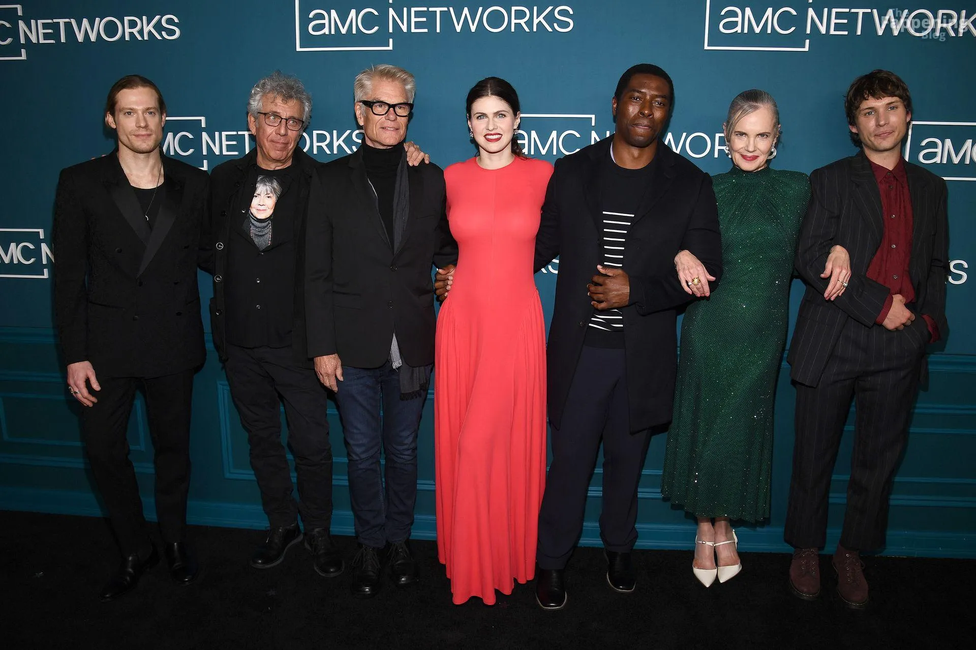 Actress and model Alexandra Daddario looks hot in red at AMC’s Upfront in NYC, posin’ in a tight dress that’s huggin’ her famous curves and bust.