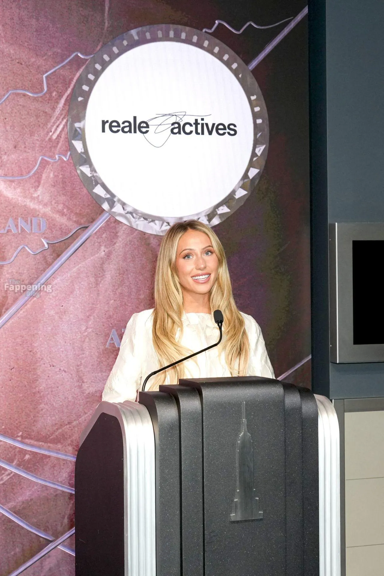 Alix Earle lights the Empire State Building to celebrate the launch of her new brand, Reale Actives, in support of the Mount Sinai Mammovan in New York City.