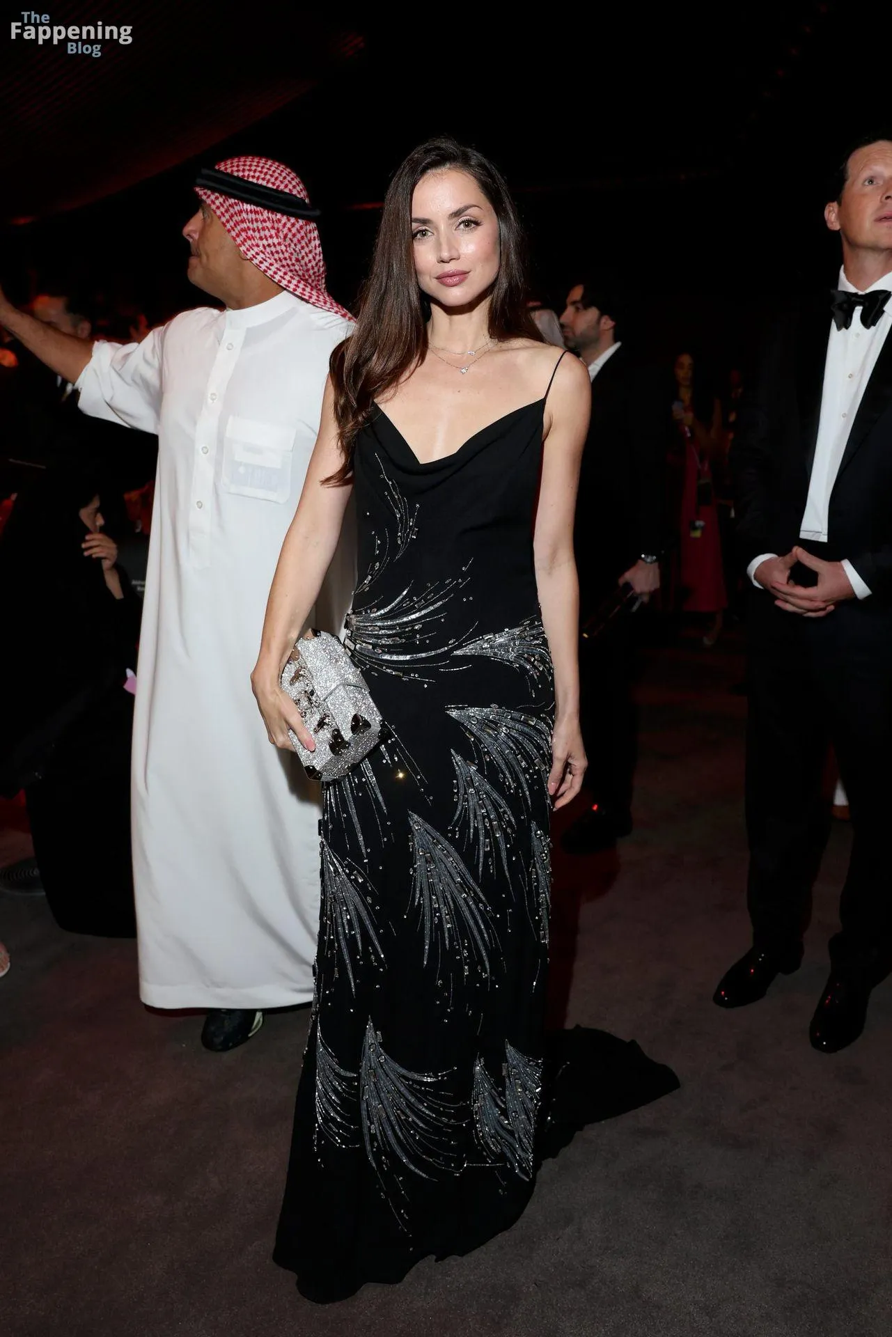Actress Ana de Armas stuns at the Red Sea Film Festival 2025 wearin’ a plunging black gown.