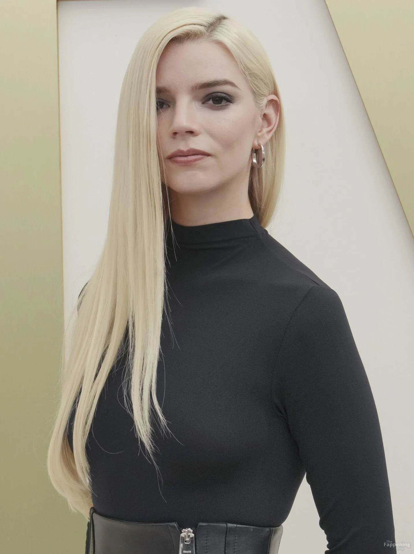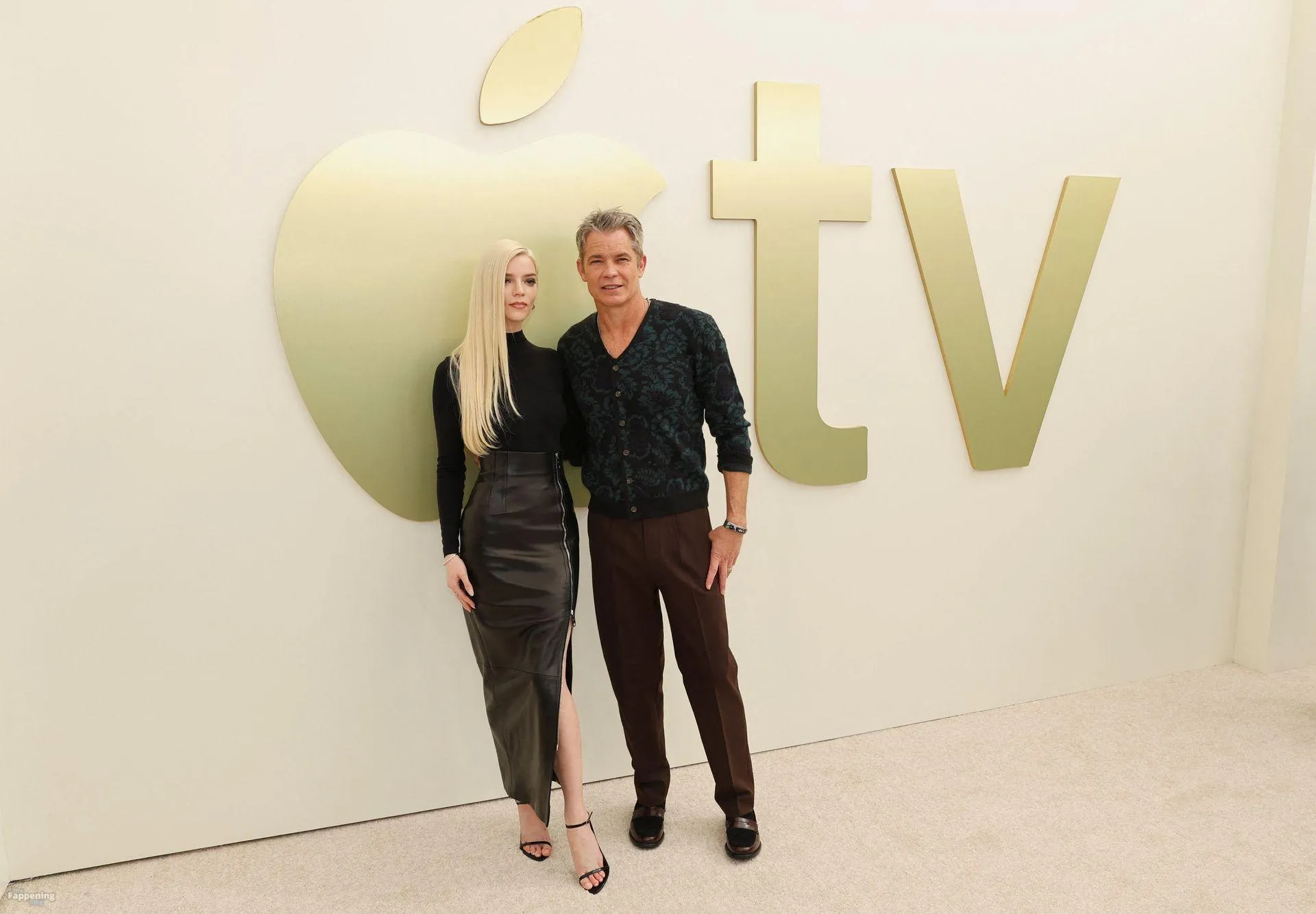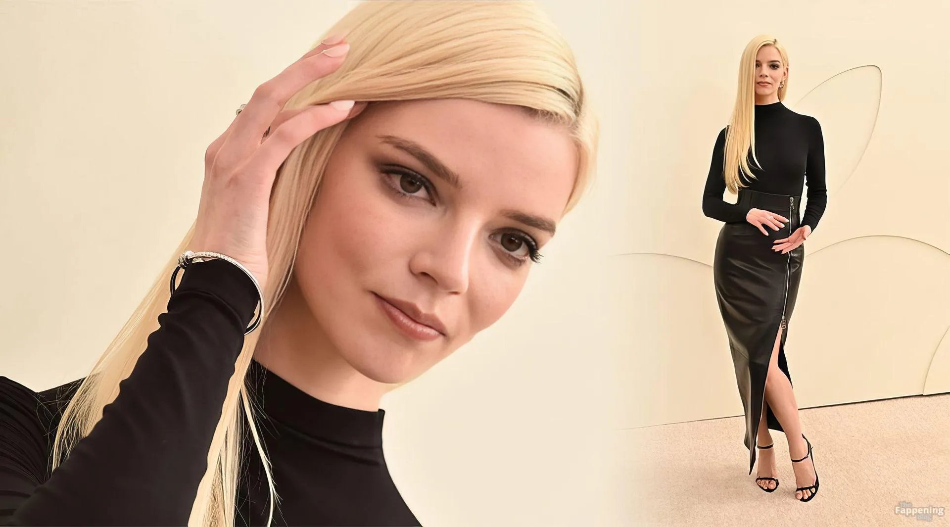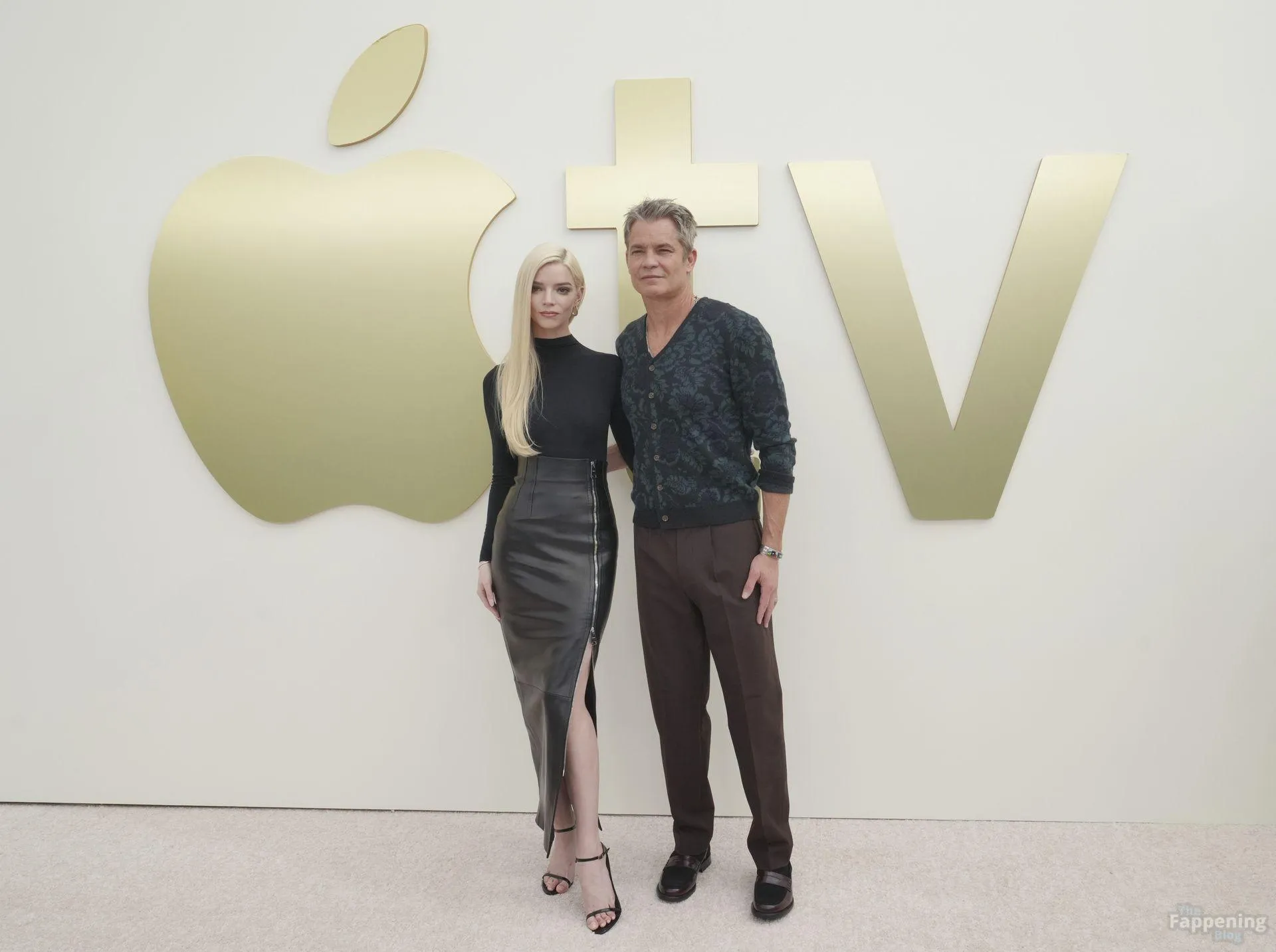 Anya Taylor-Joy attends the Apple TV Press Day held at Barker Hangar in Los Angeles. The actress stuns on the red carpet, wearin’ a black bodysuit and zipper leather skirt.