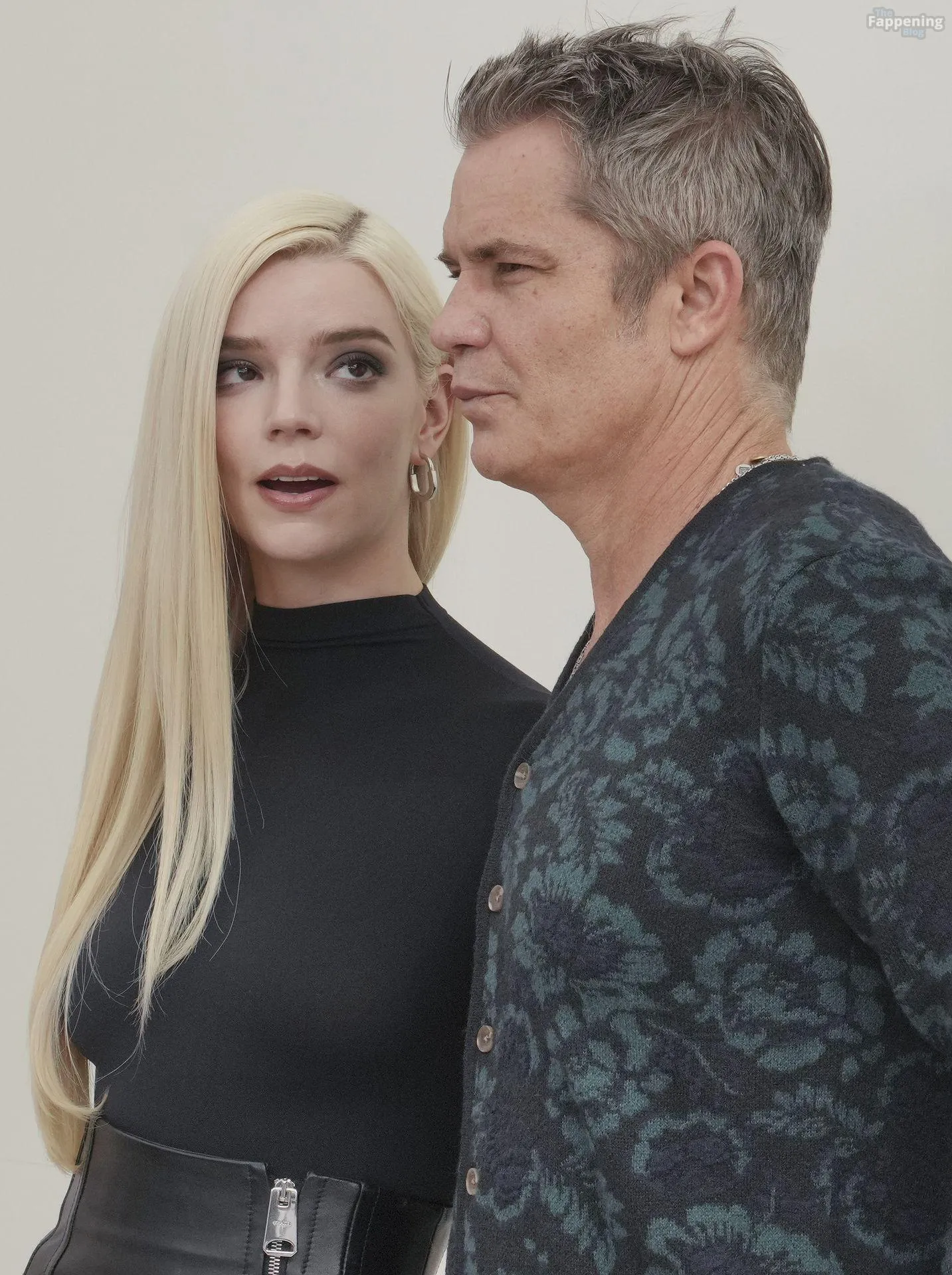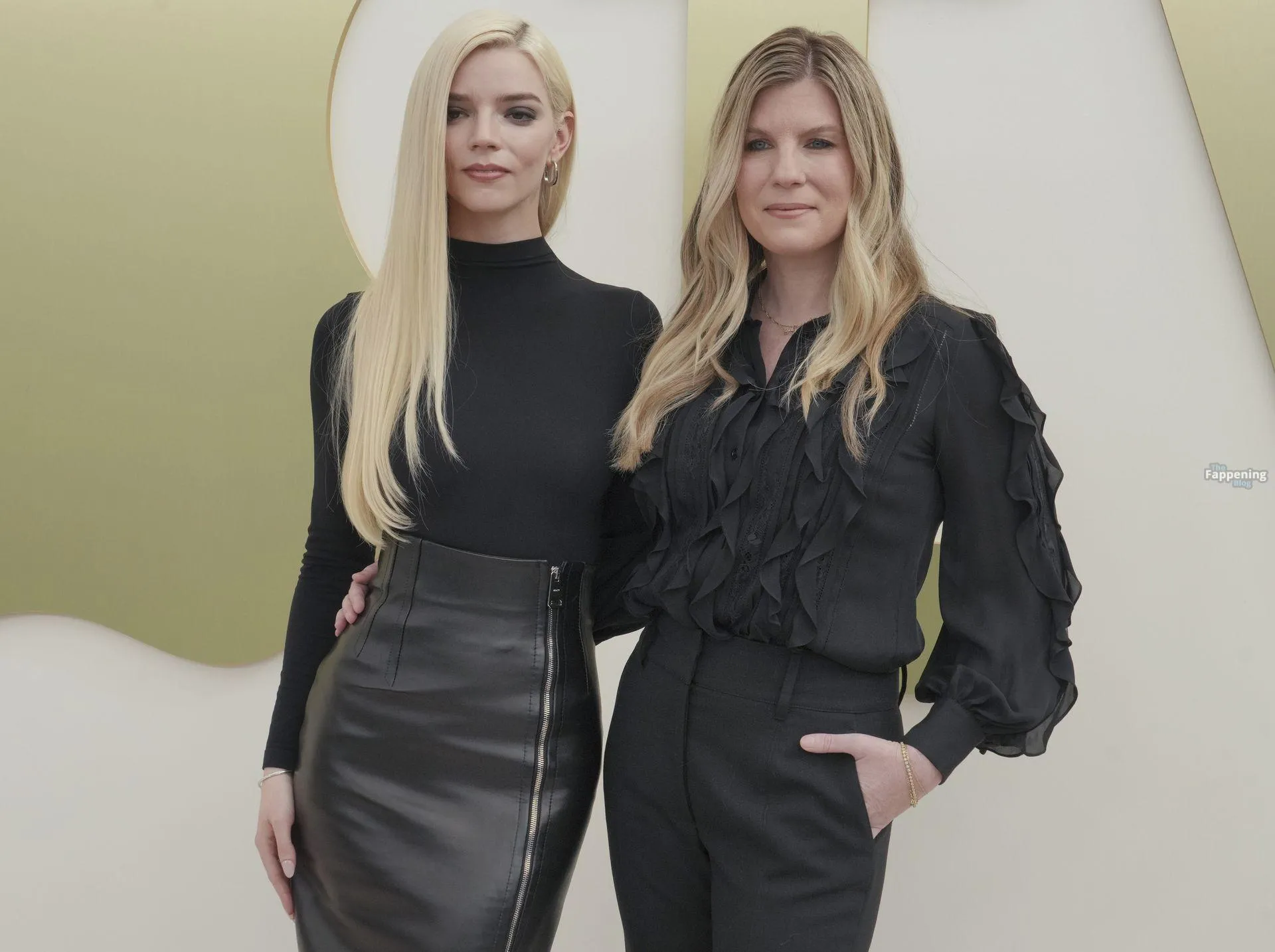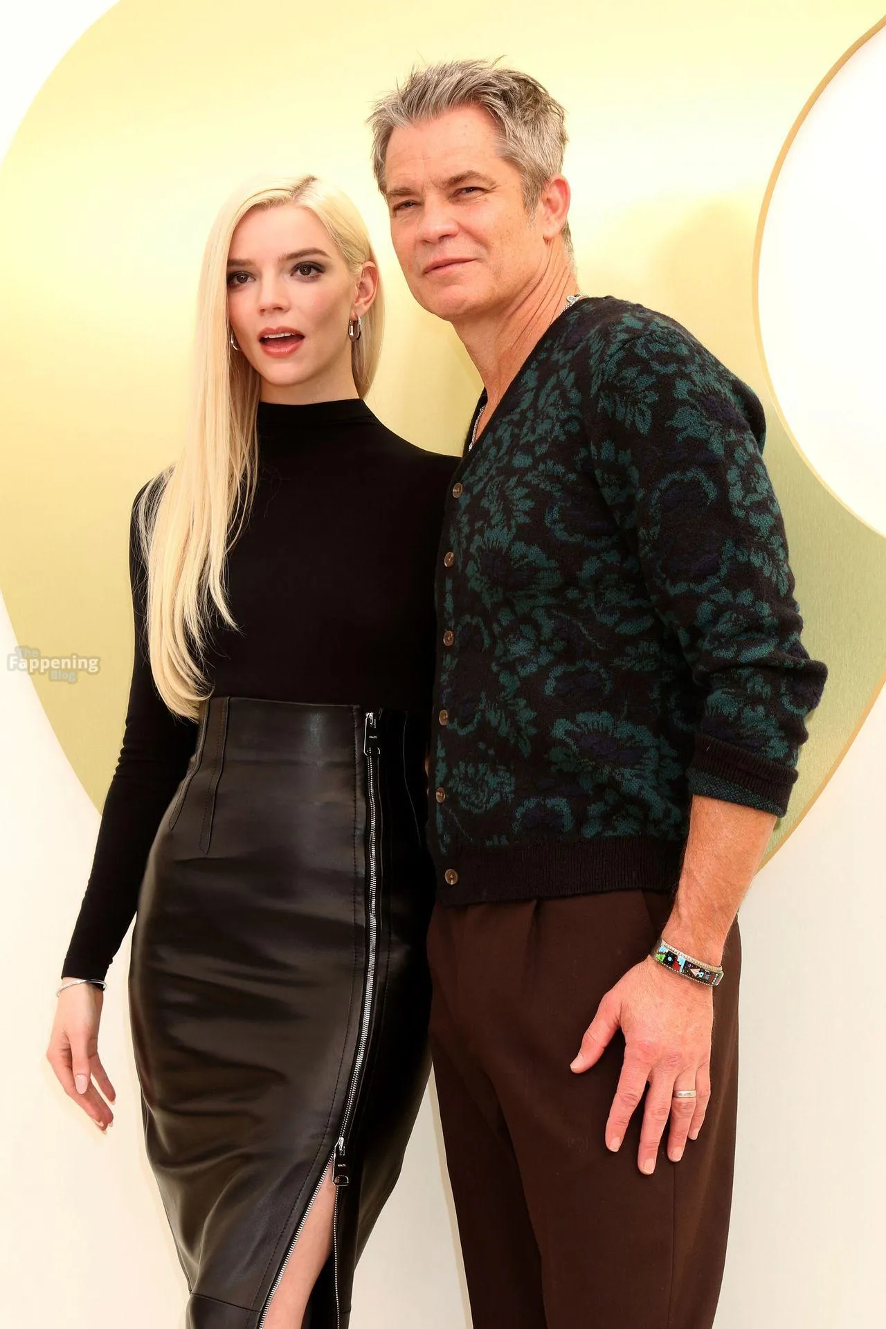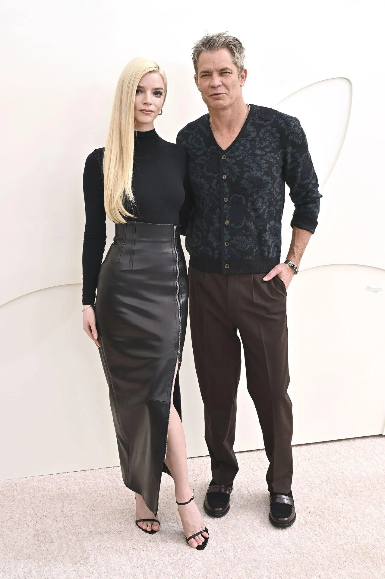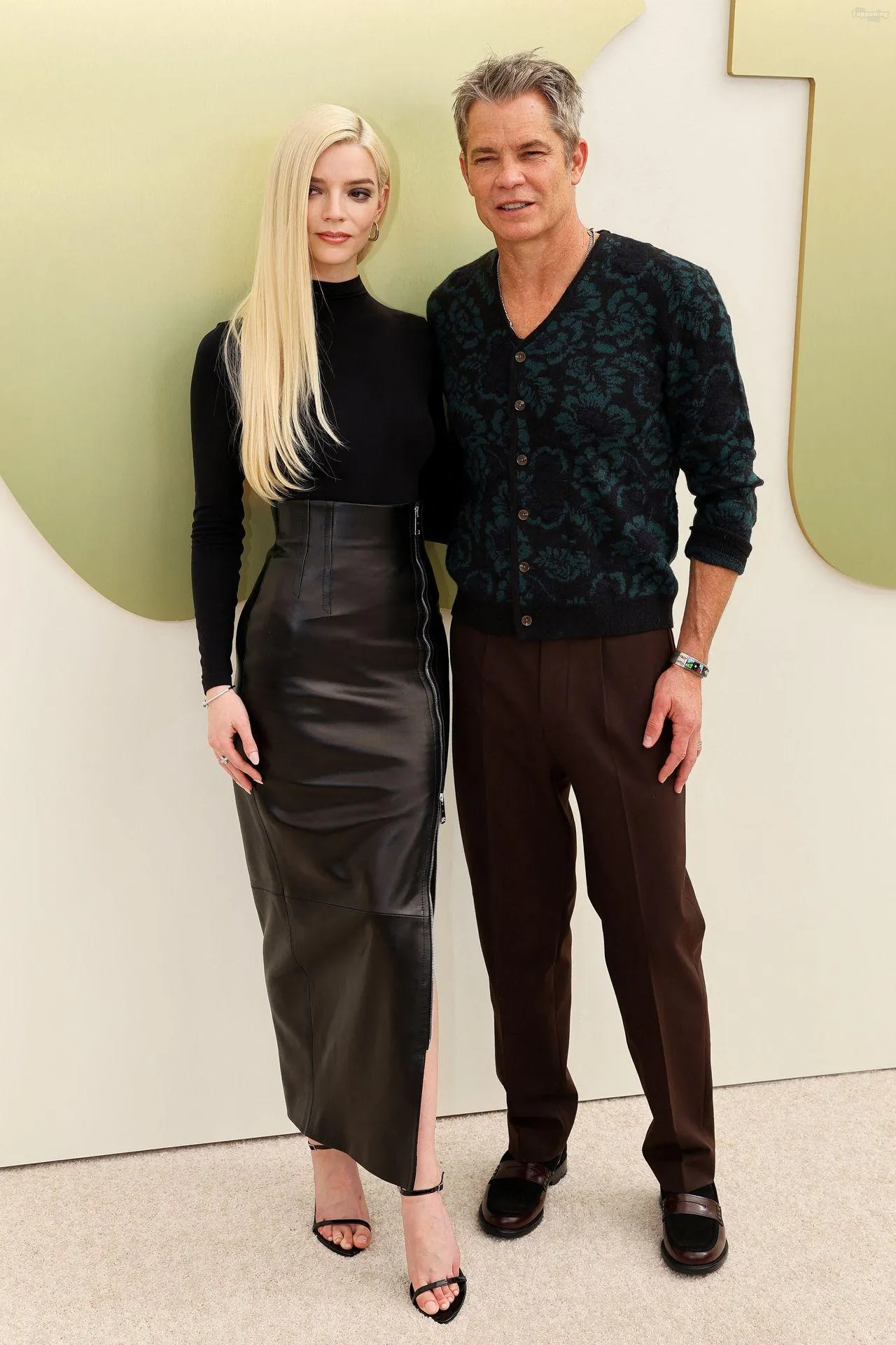 Anya Taylor-Joy attends the Apple TV Press Day held at Barker Hangar in Los Angeles. The actress stuns on the red carpet, wearin’ a black bodysuit and zipper leather skirt.
