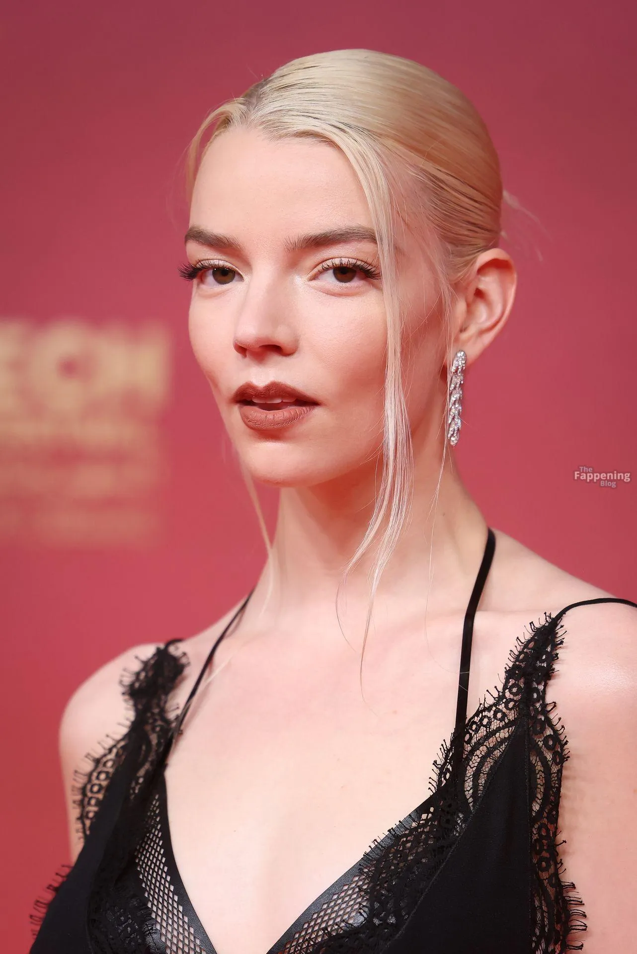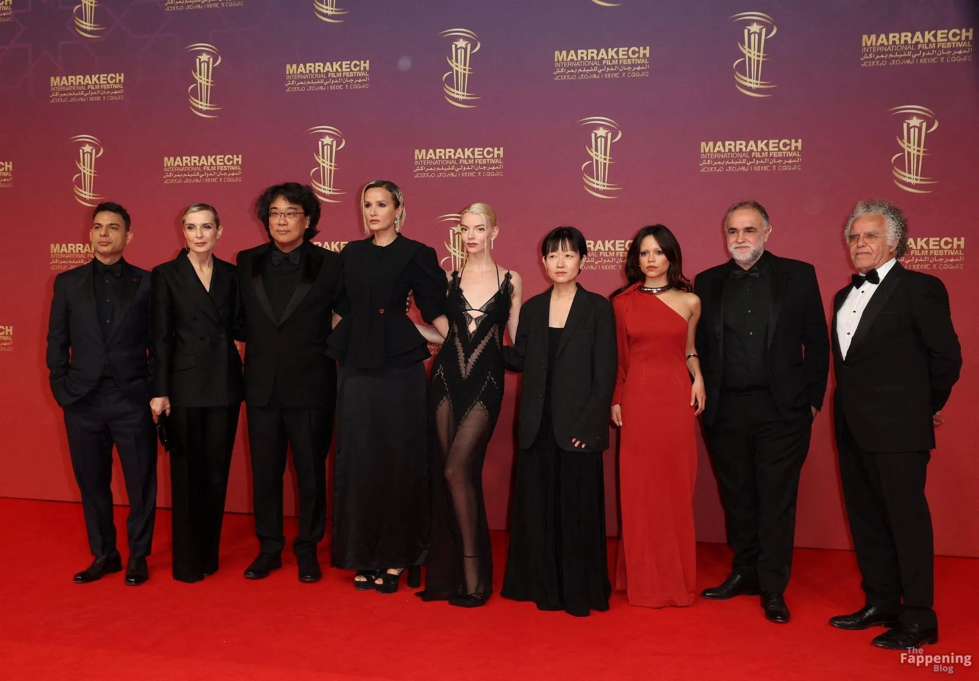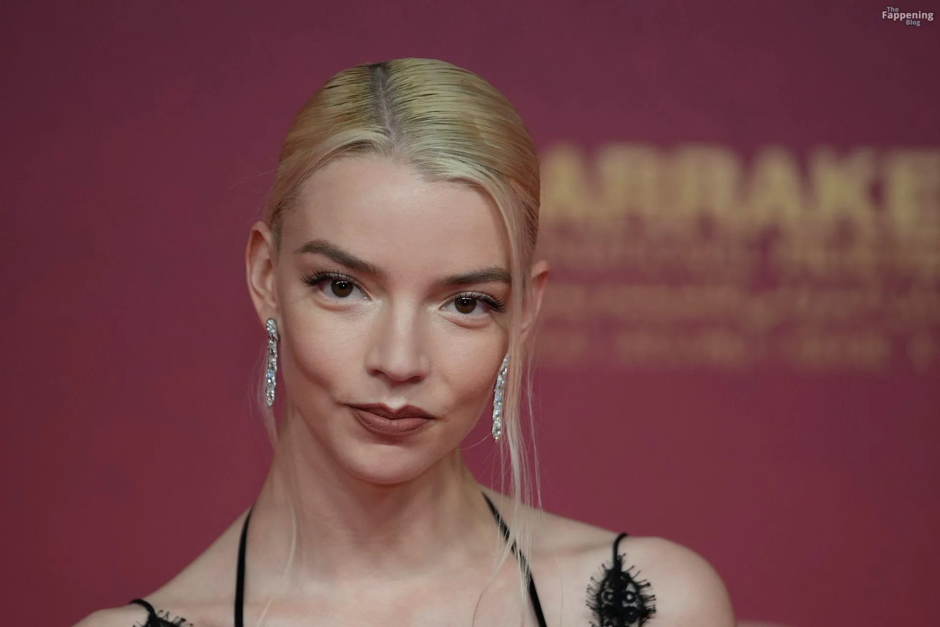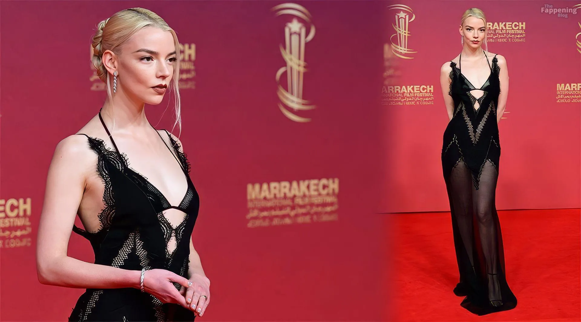 US actress Anya Taylor-Joy poses in a sheer lace dress showin’ her legs on the red carpet as she arrives for the closing ceremony of the 22nd Marrakesh Film Festival (FIFM) in Marrakesh.