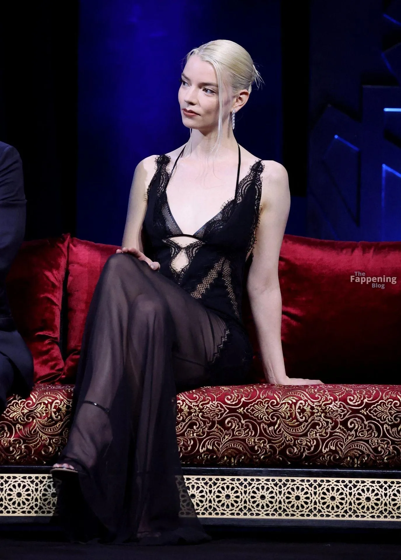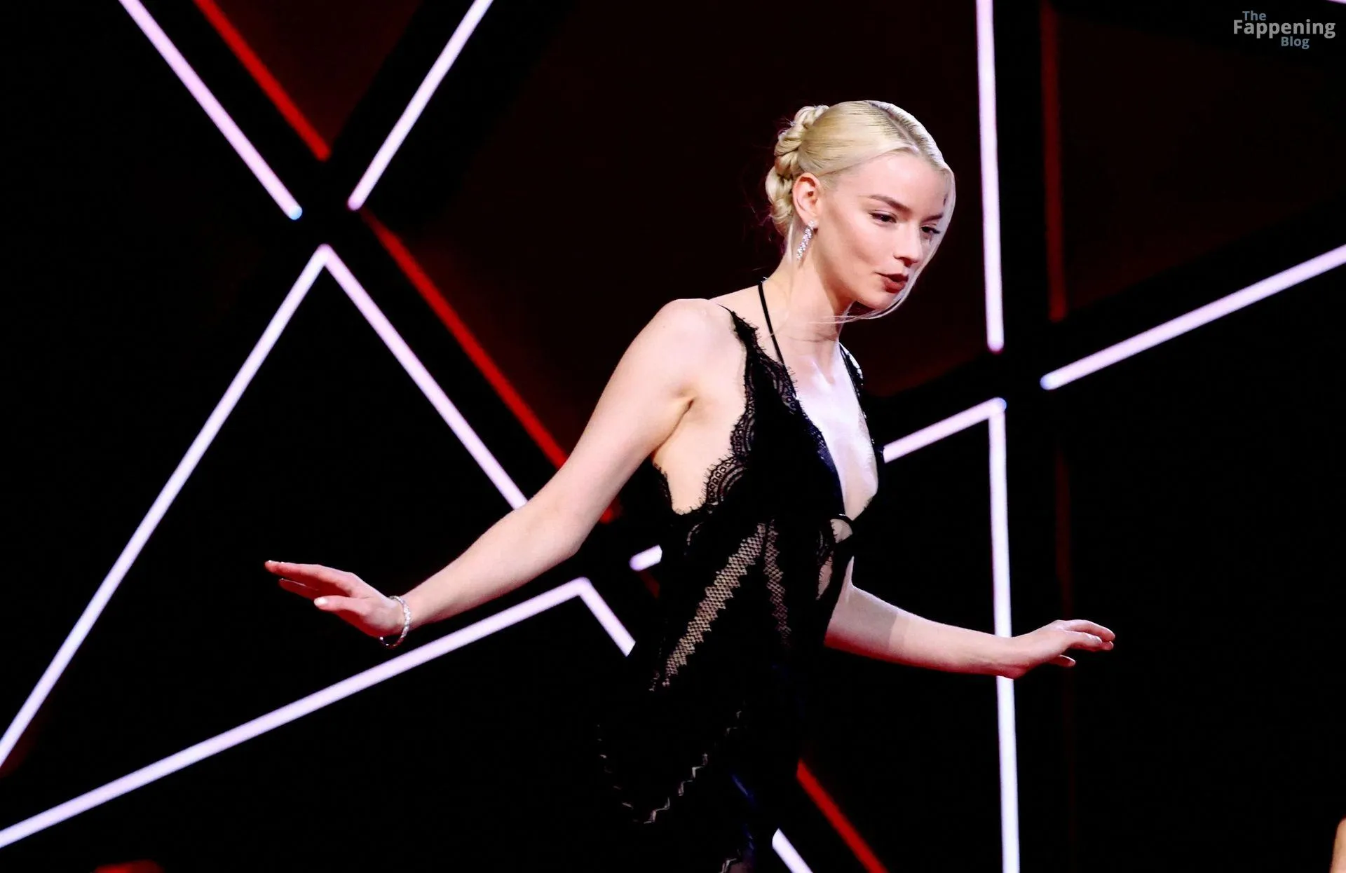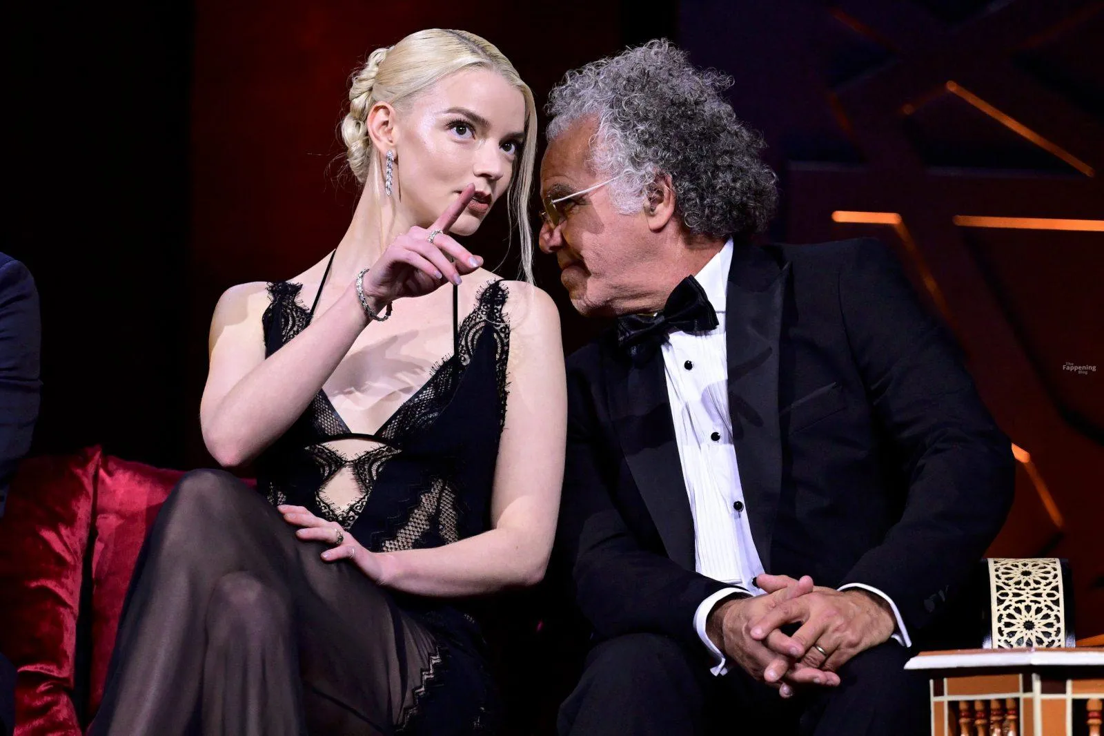 US actress Anya Taylor-Joy poses in a sheer lace dress showin’ her legs on the red carpet as she arrives for the closing ceremony of the 22nd Marrakesh Film Festival (FIFM) in Marrakesh.
