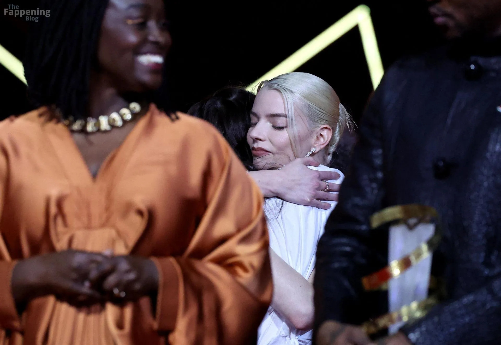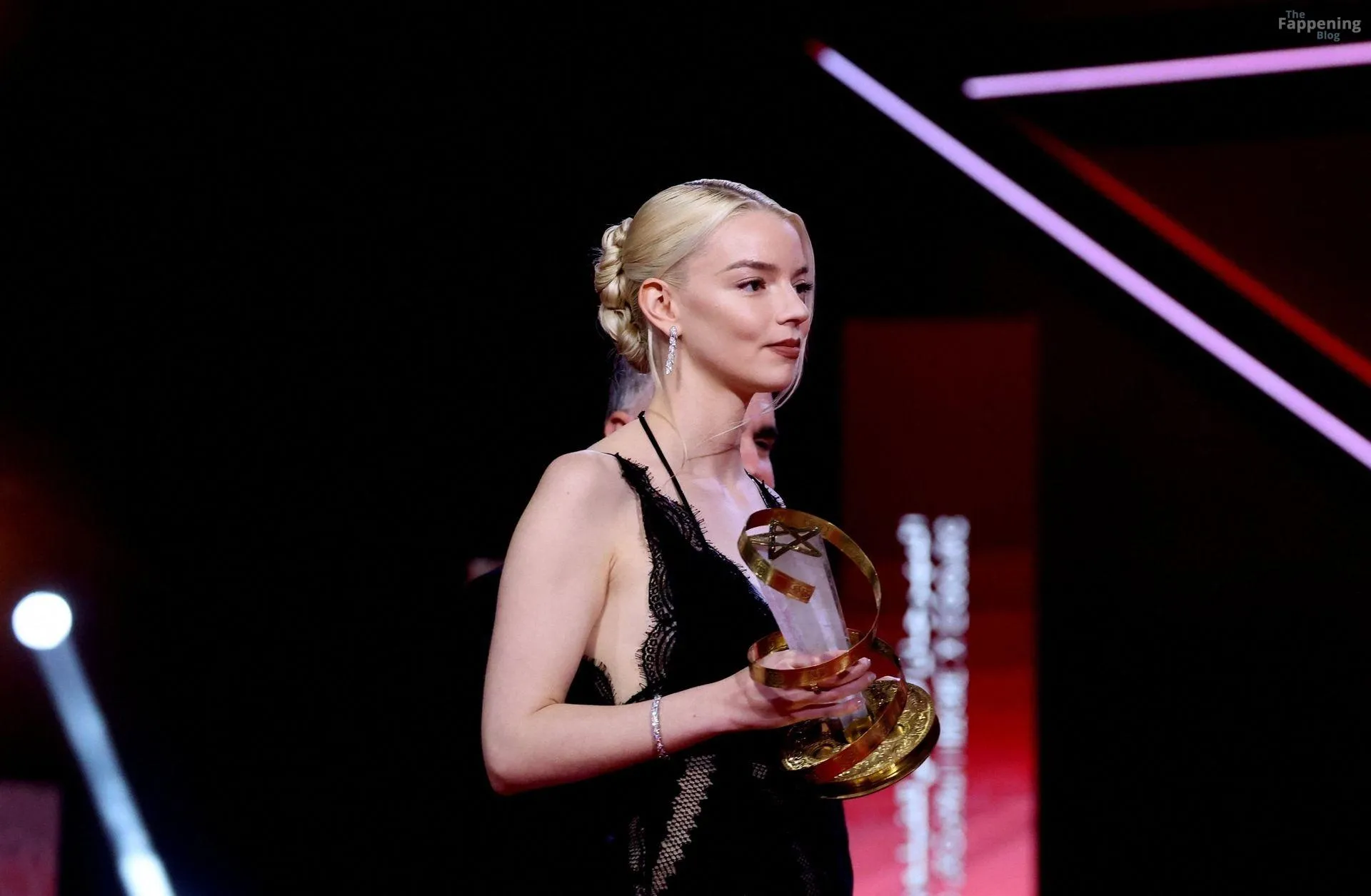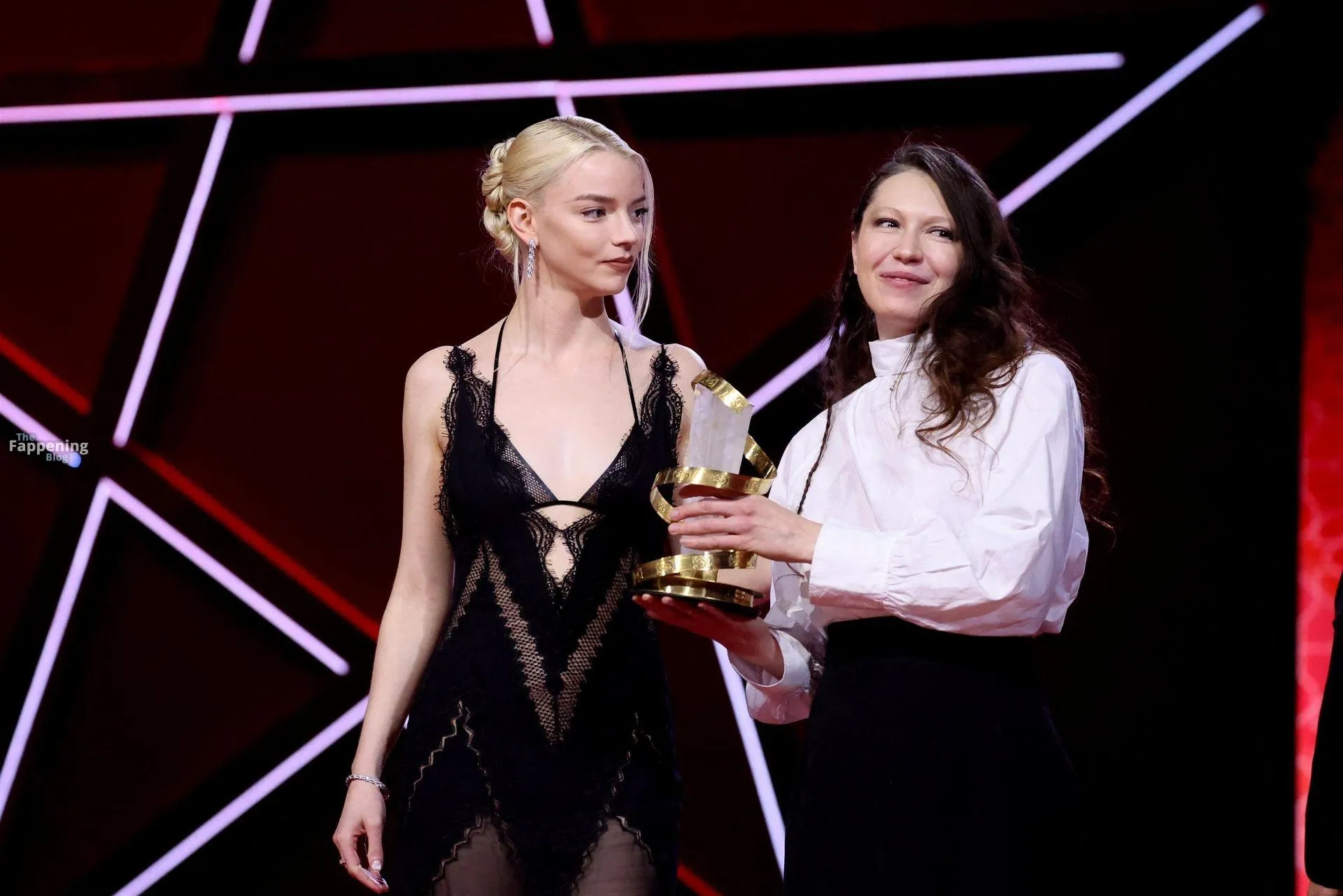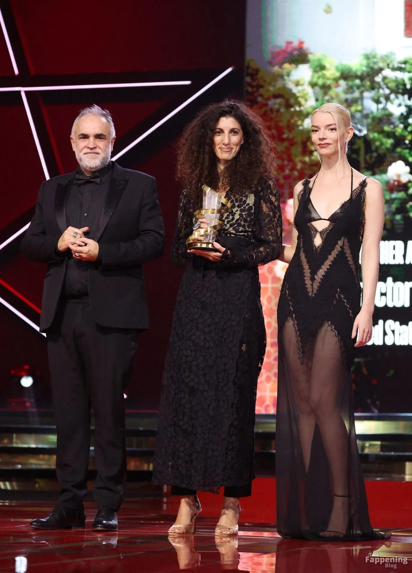 US actress Anya Taylor-Joy poses in a sheer lace dress showin’ her legs on the red carpet as she arrives for the closing ceremony of the 22nd Marrakesh Film Festival (FIFM) in Marrakesh.