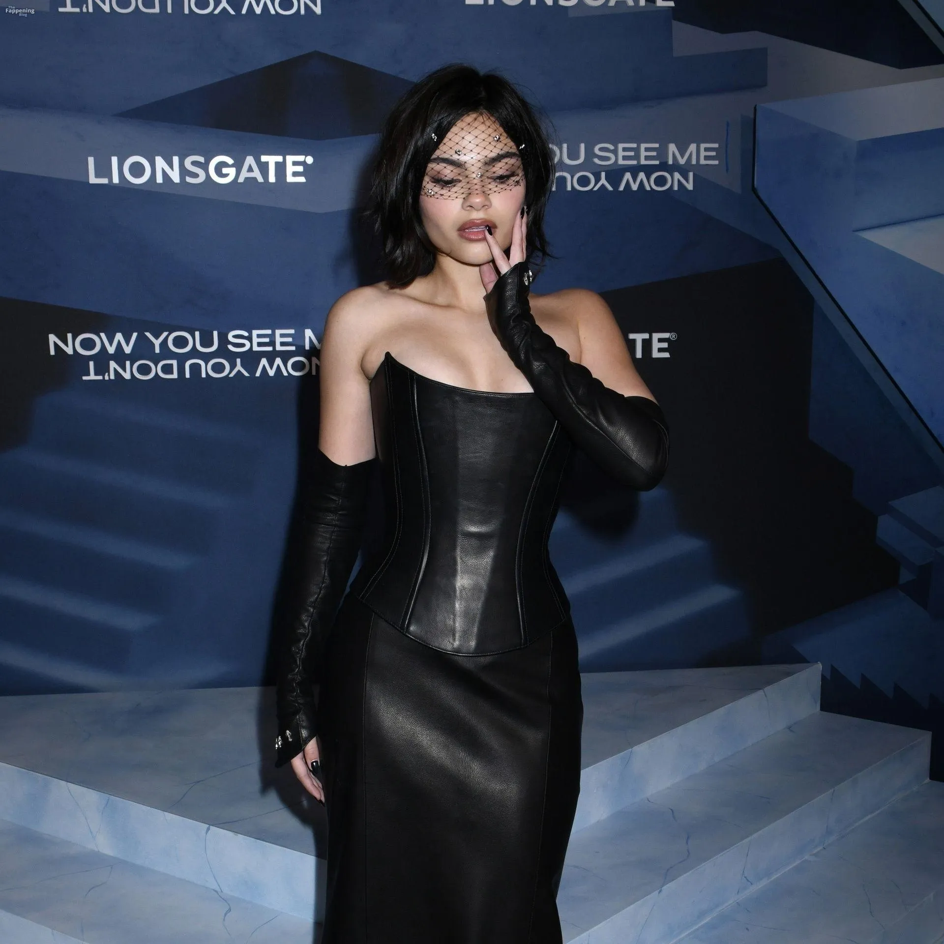 BustyAmerican actress Ariana Greenblatt stuns in a leather corset gown at the Now You See Me Now You Don’t premiereat The Lighthouse at Chelsea Piersin Manhattan, NYC.
