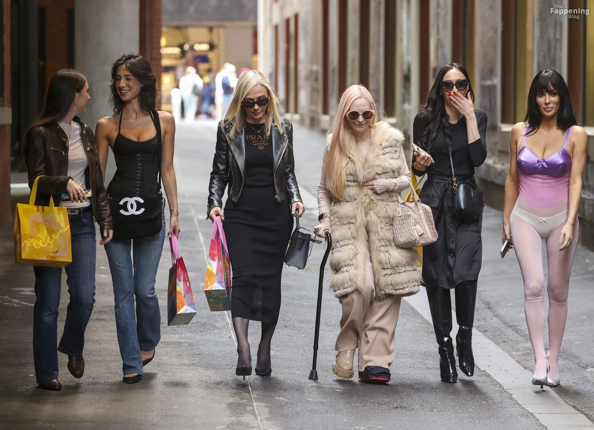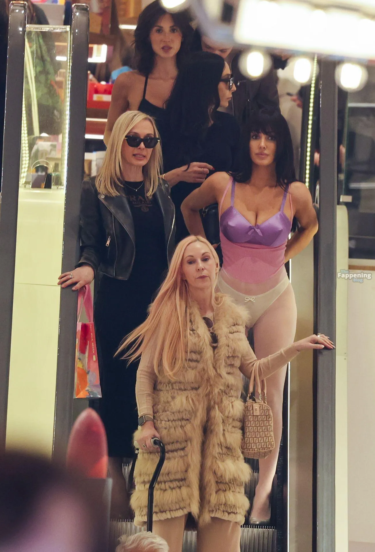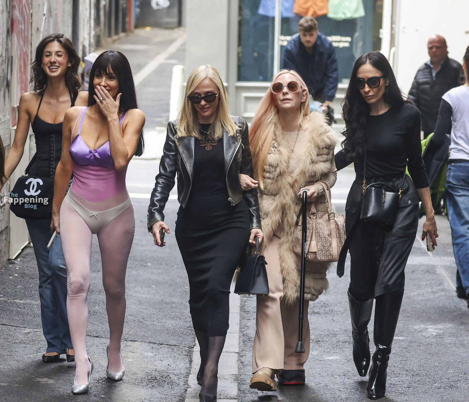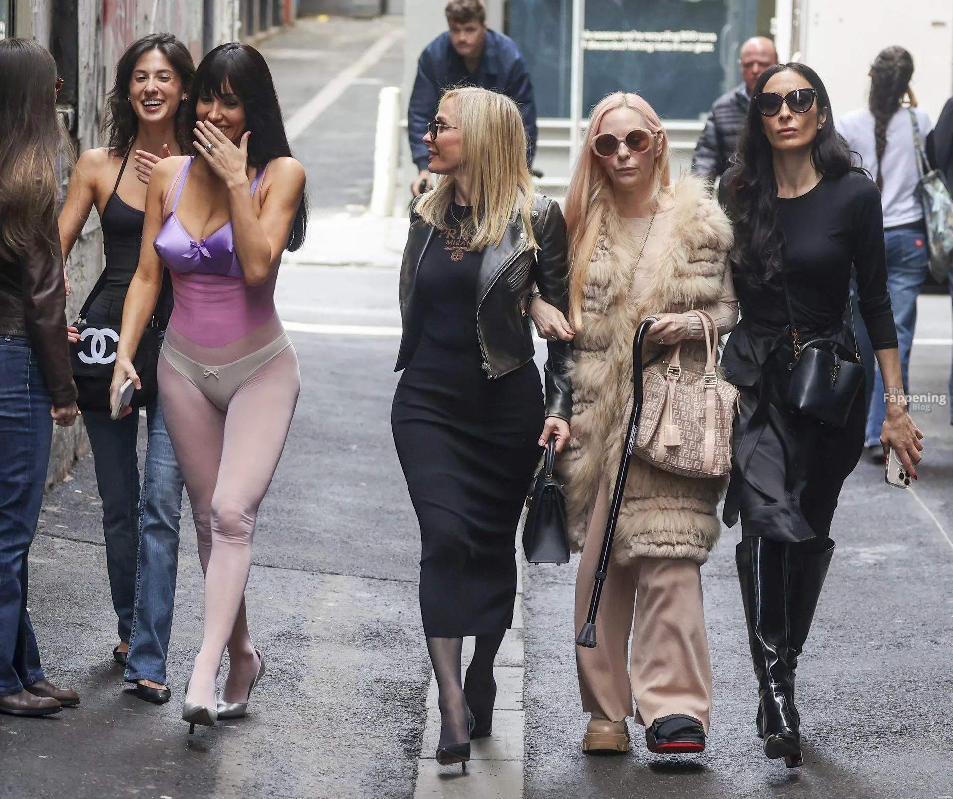 Bianca Censori was spotted out in Melbourne, Australia, on a family shopping trip, wearin’ a sheer purple bodysuit that showed off her goods. She paired it with a metallic purple bra and white underwear, walkin’ with her mom Alexandra, sister Angelina, and a few relatives. They hit up Mecca for a beauty haul and strolled the CBD laneways, lookin’ relaxed despite the rain.