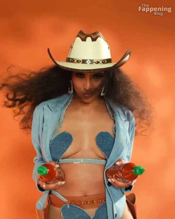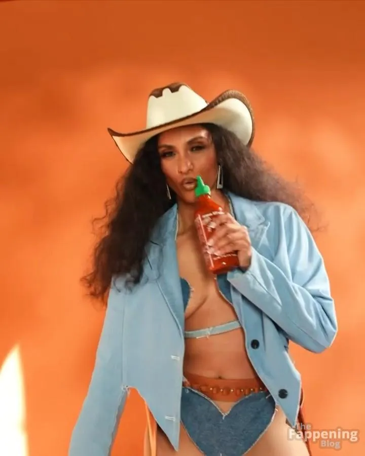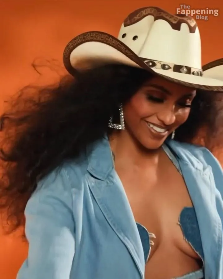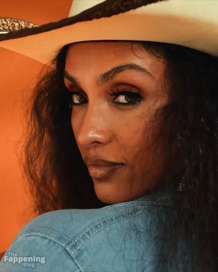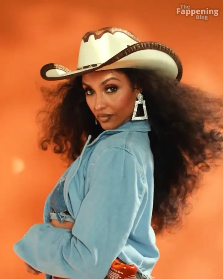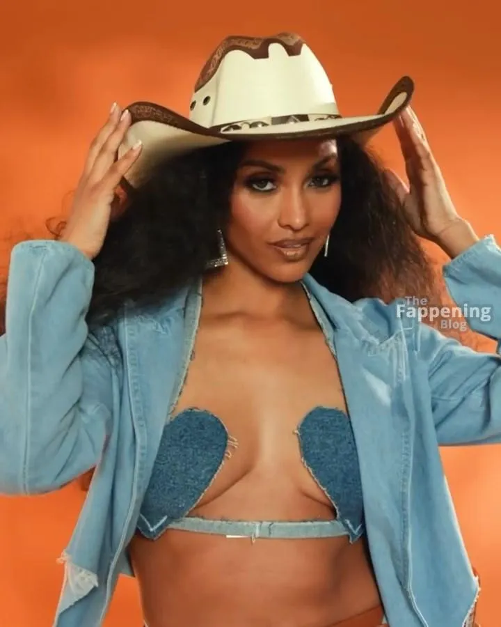 You’ve got to see Brittney Elena’s sexy cowgirl look – it’s so fun and creative! The actress and TV host is fully embracing the Western theme with an oversized denim jacket, a matching bra, and those sky‑high boots. She adds playful touches like a cowboy hat and heart‑shaped denim details.