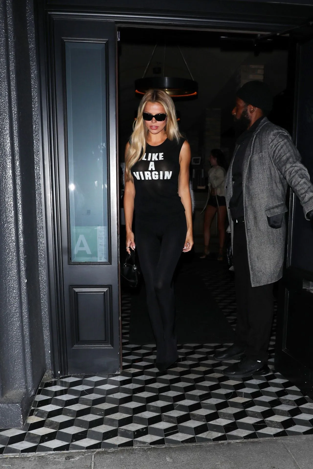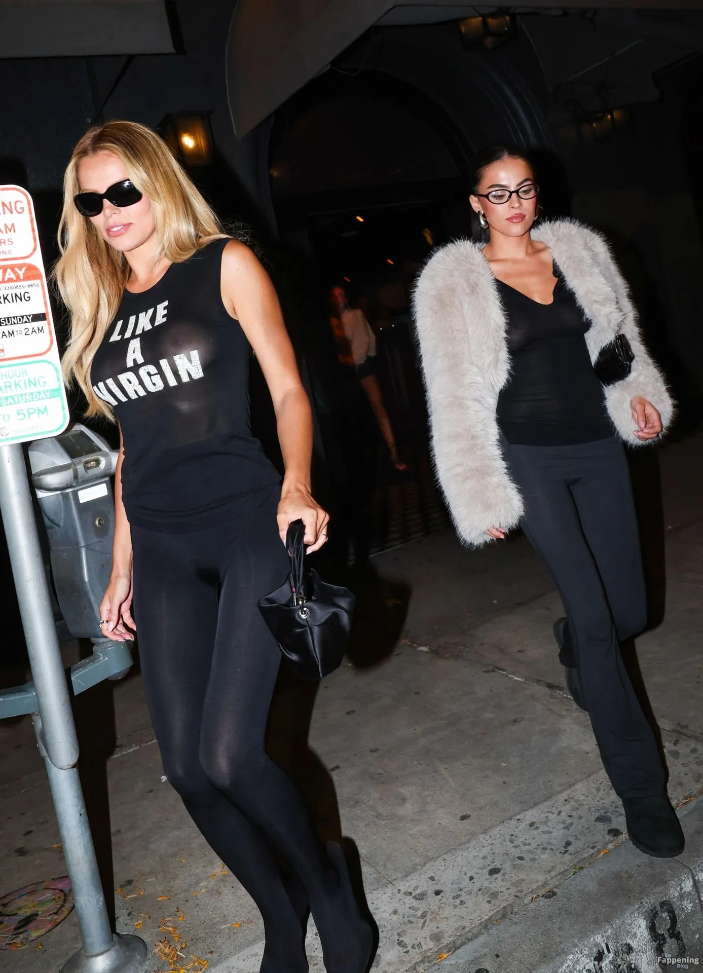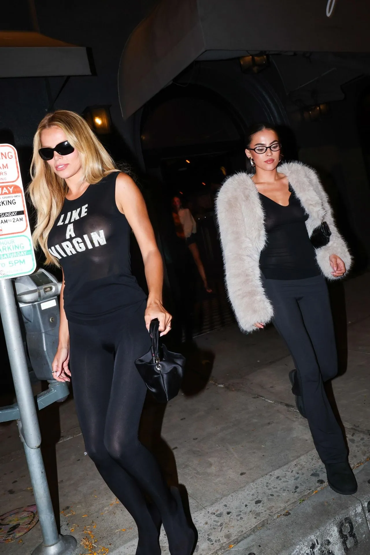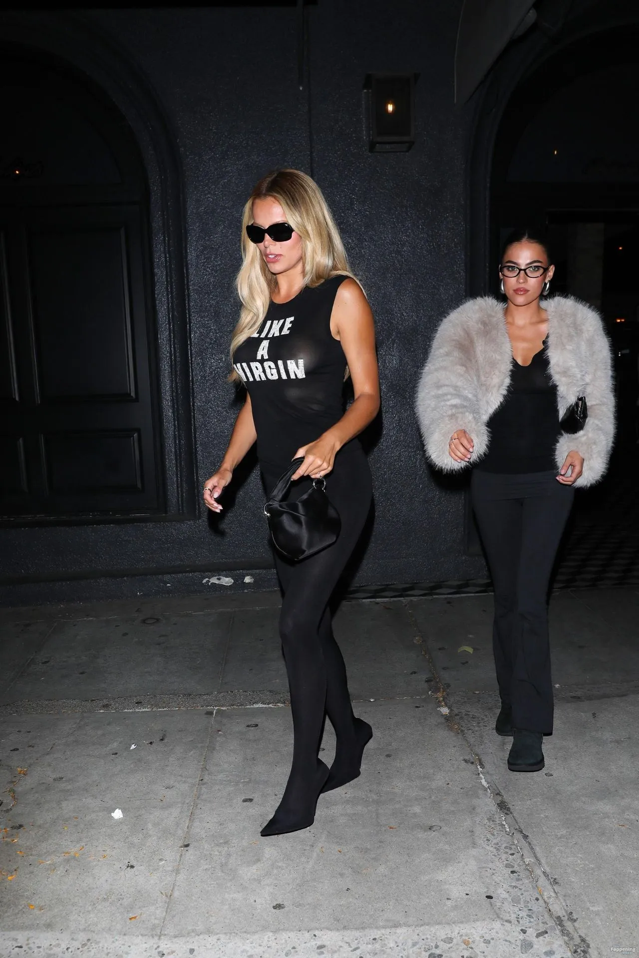 Model Brooks Nader (29) leaves little to the imagination wearing a see-through top that reads ‘Like a Virgin’ as she’s seen exiting Craig’s restaurant after having dinner in West Hollywood.