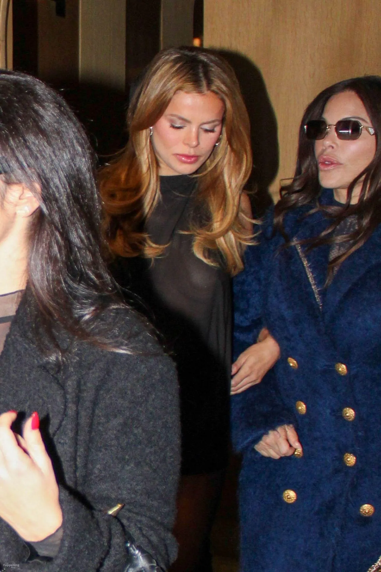 Model Brooks Nader steps out to dinner together with her sisters for dinner at Alba in West Hollywood. Brooks put on a racy display as she stepped out in a see-through top exposing her bare tits.
