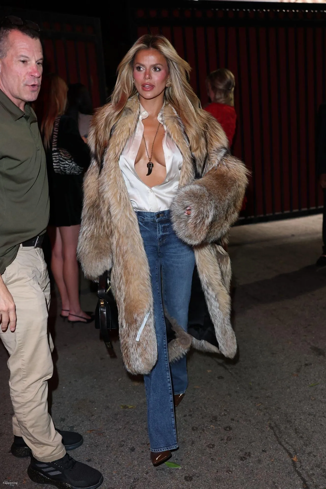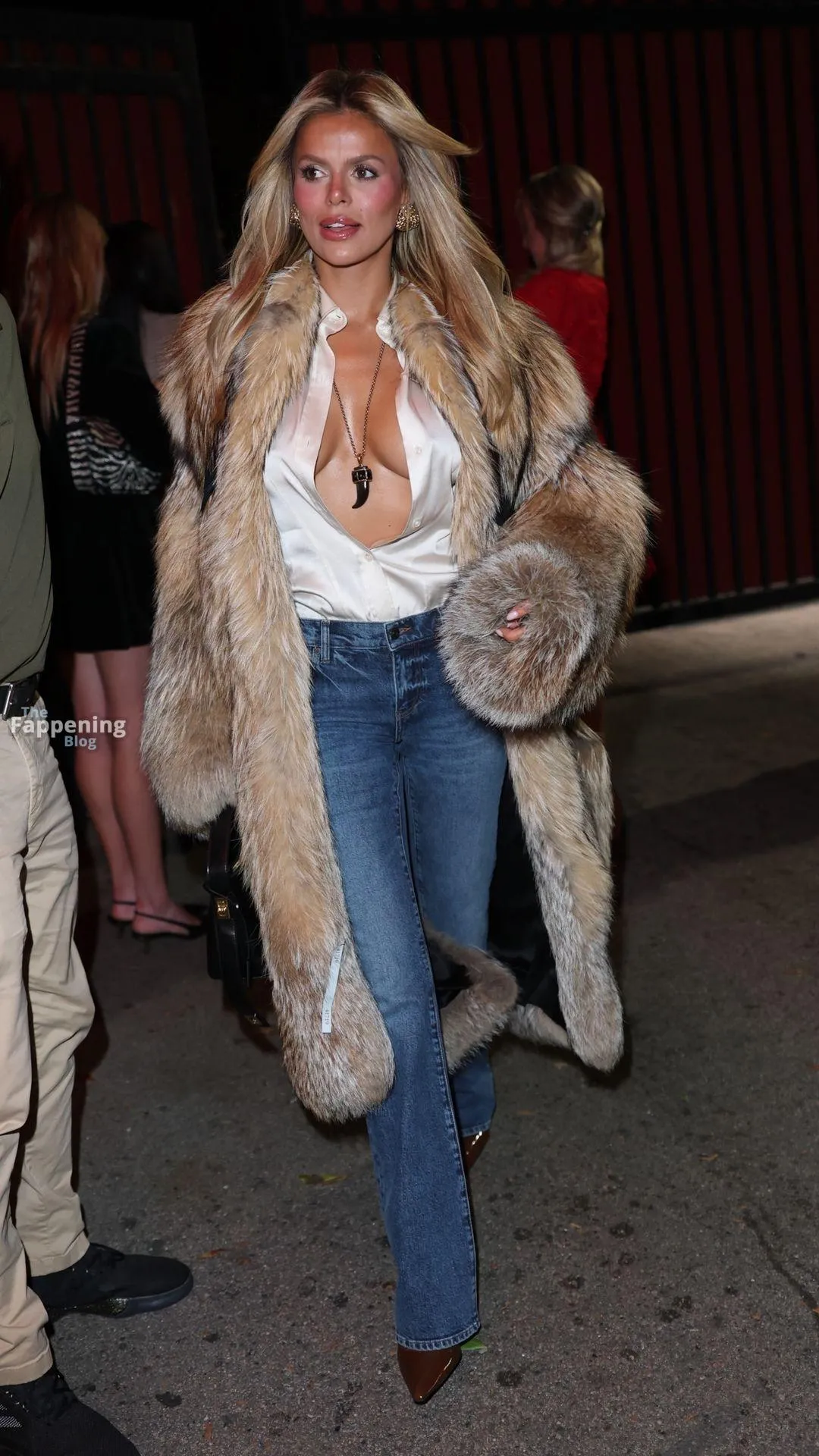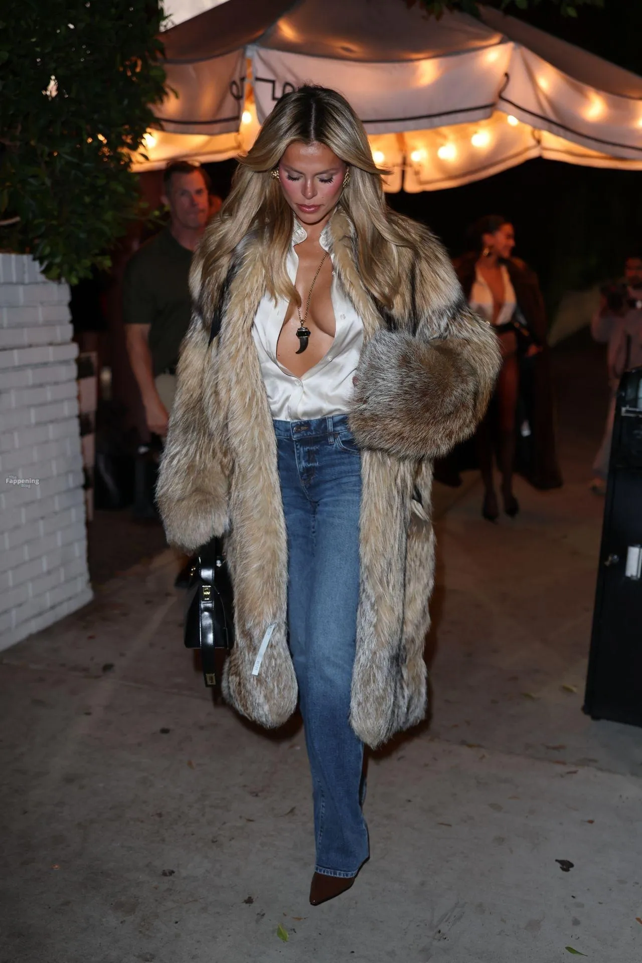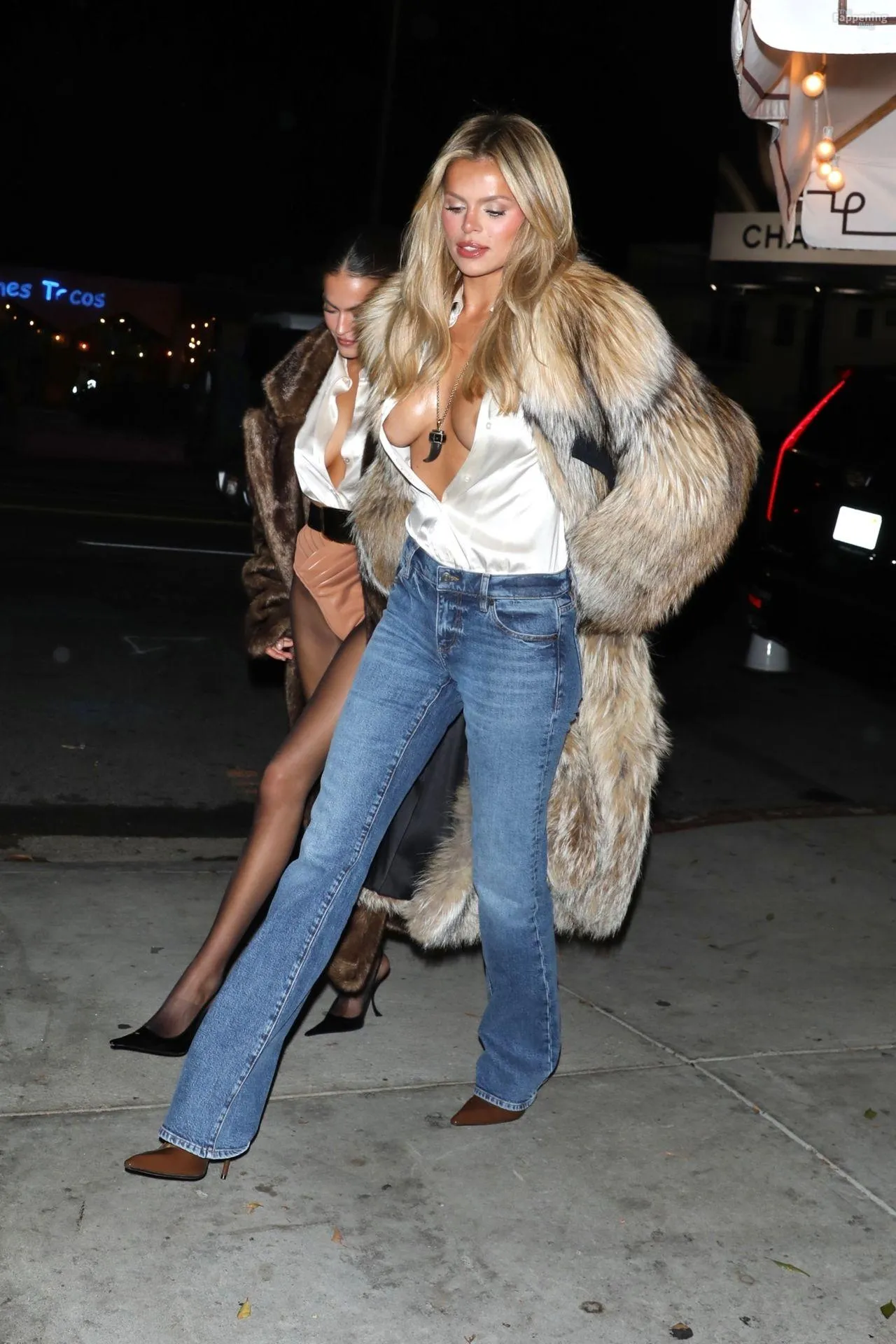 The American model was out in Hollywood, rockin’ a faux fur coat, that risky satin blouse, and high-waisted jeans. She looked stunnin’ all night, but a quick move nearly turned it into a full wardrobe malfunction.