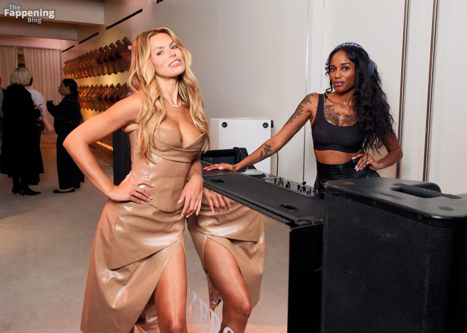 Model and reality TV star Brooks Nader displays her goods, wearin’ a tight dress at the Shapewear event.