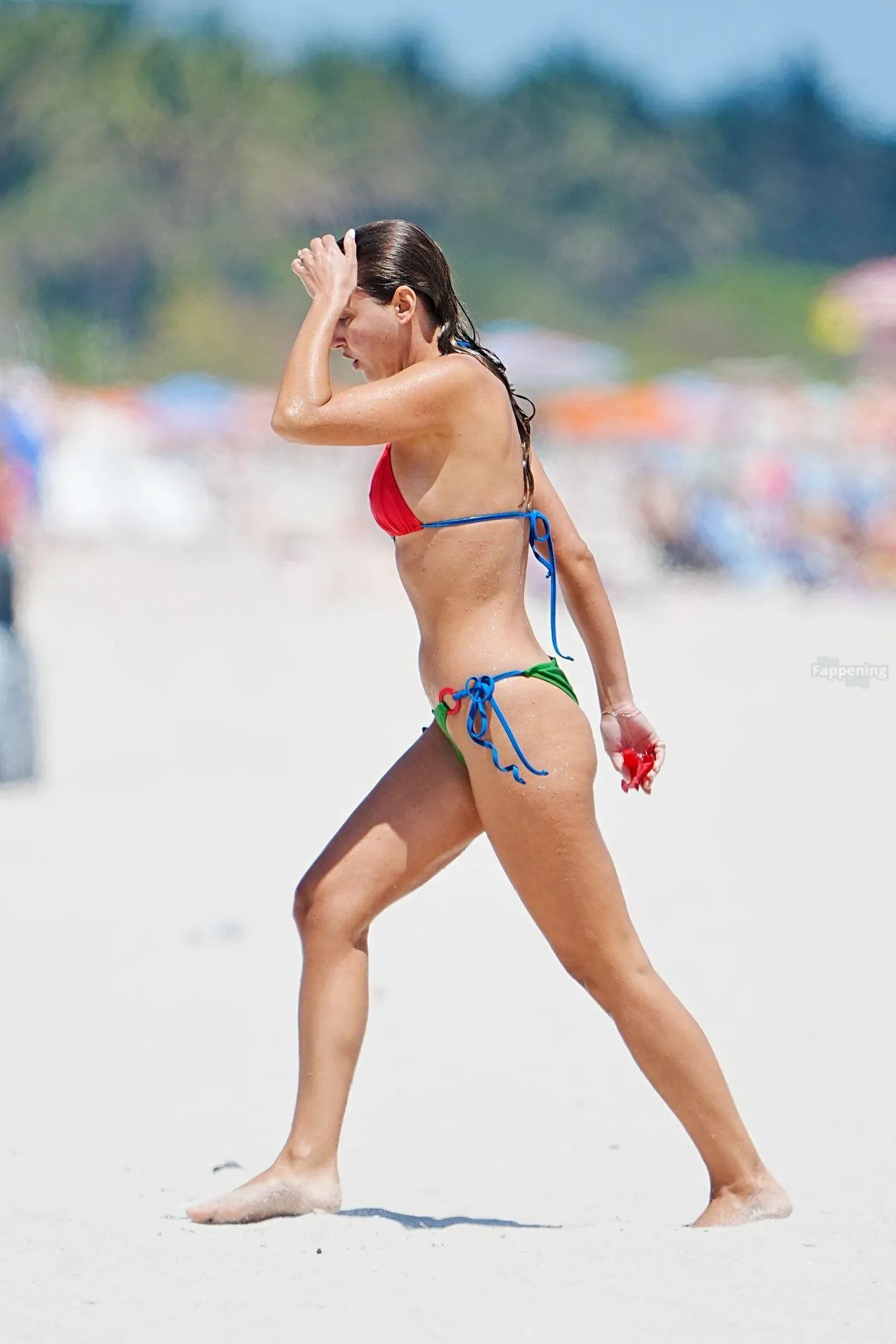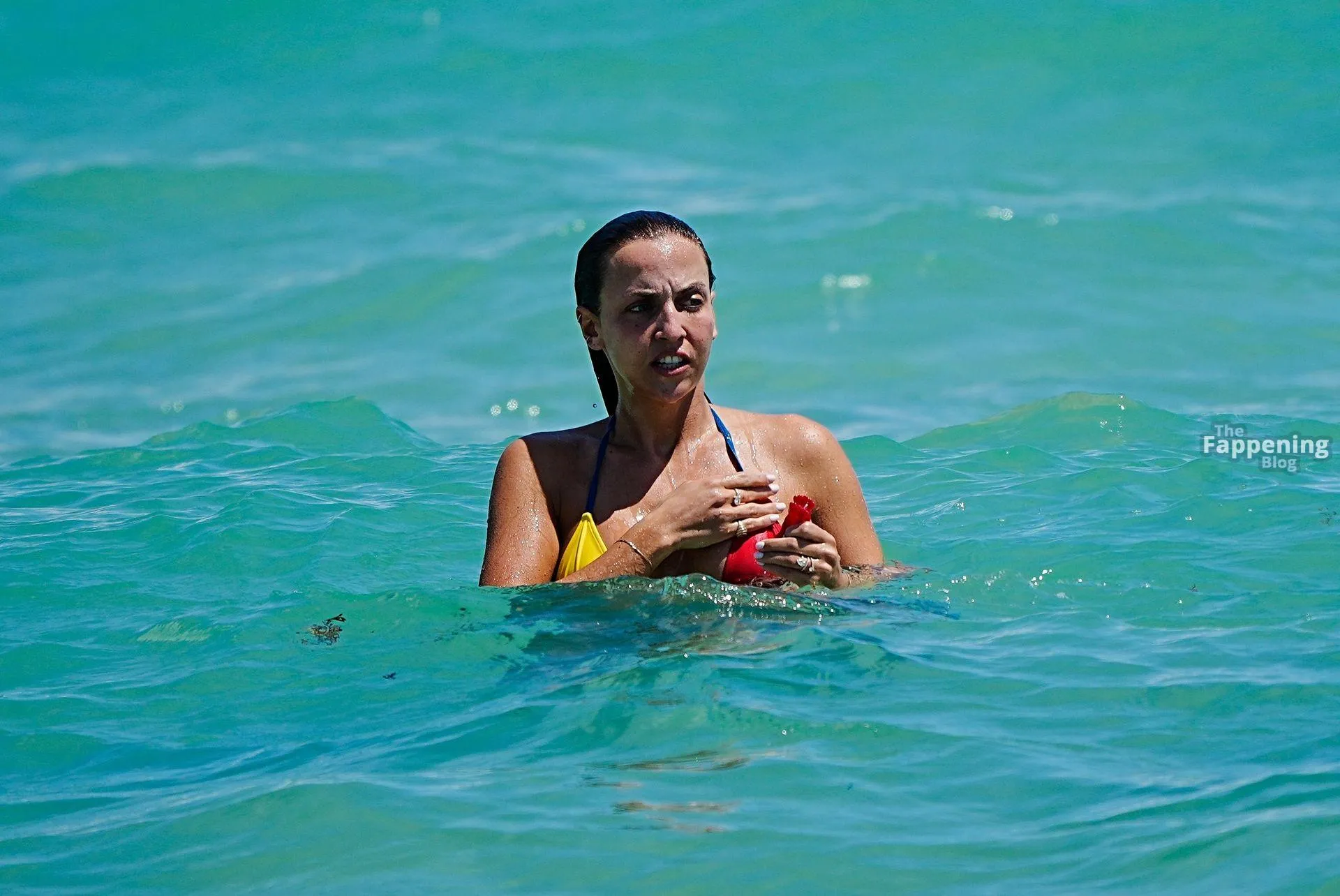 Carla Ginola was spotted soaking up the sun during a luxury holiday at a five-star hotel beach in Miami. The 31-year-old influencer and daughter of footballer David Ginola showed off her incredible figure in a tiny red, yellow, and green string bikini as she took a dip in the ocean.