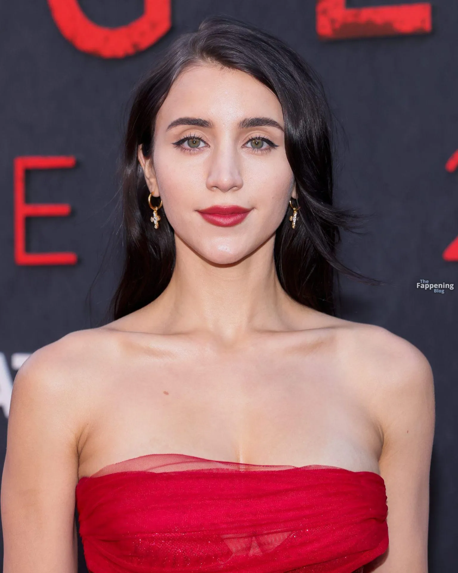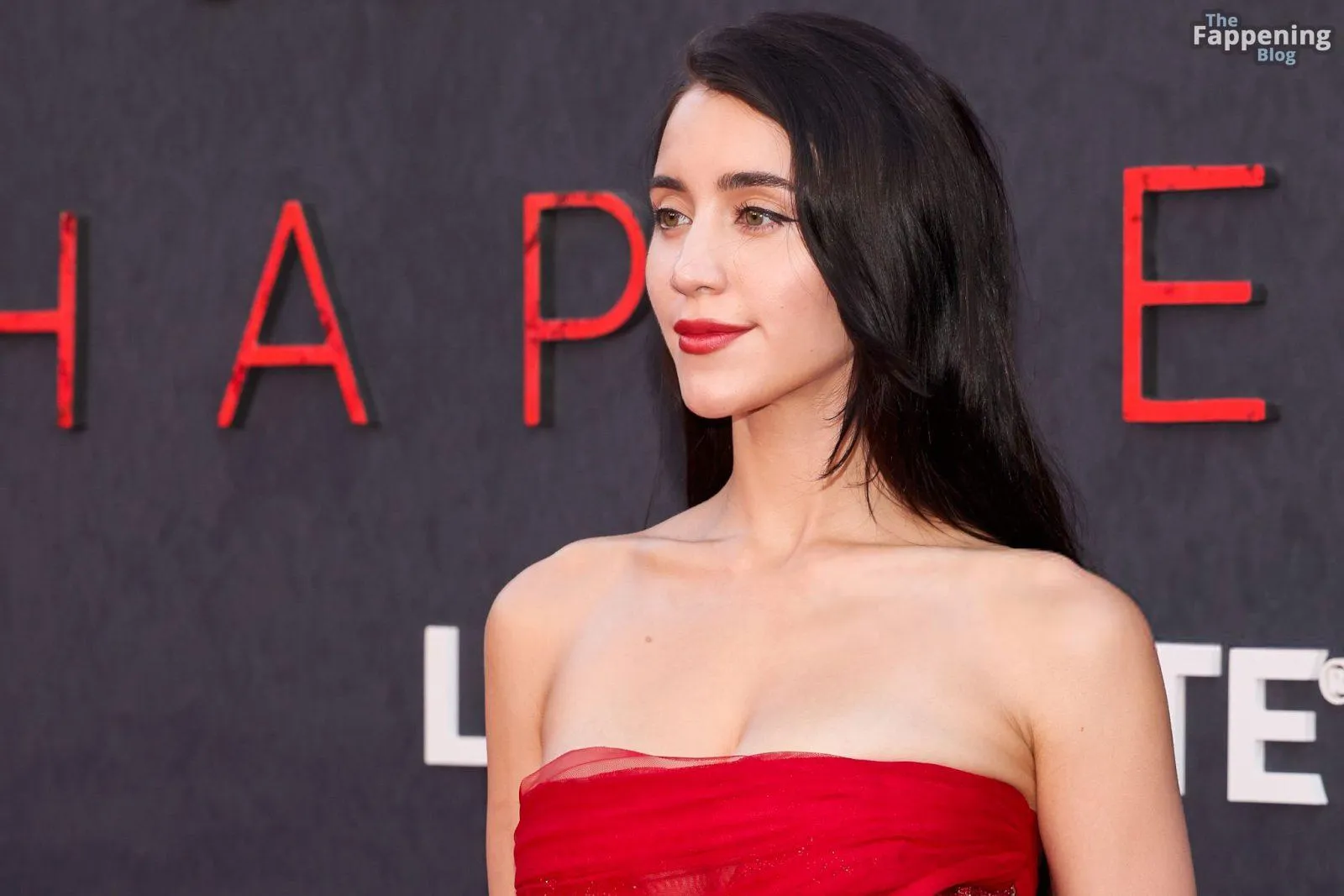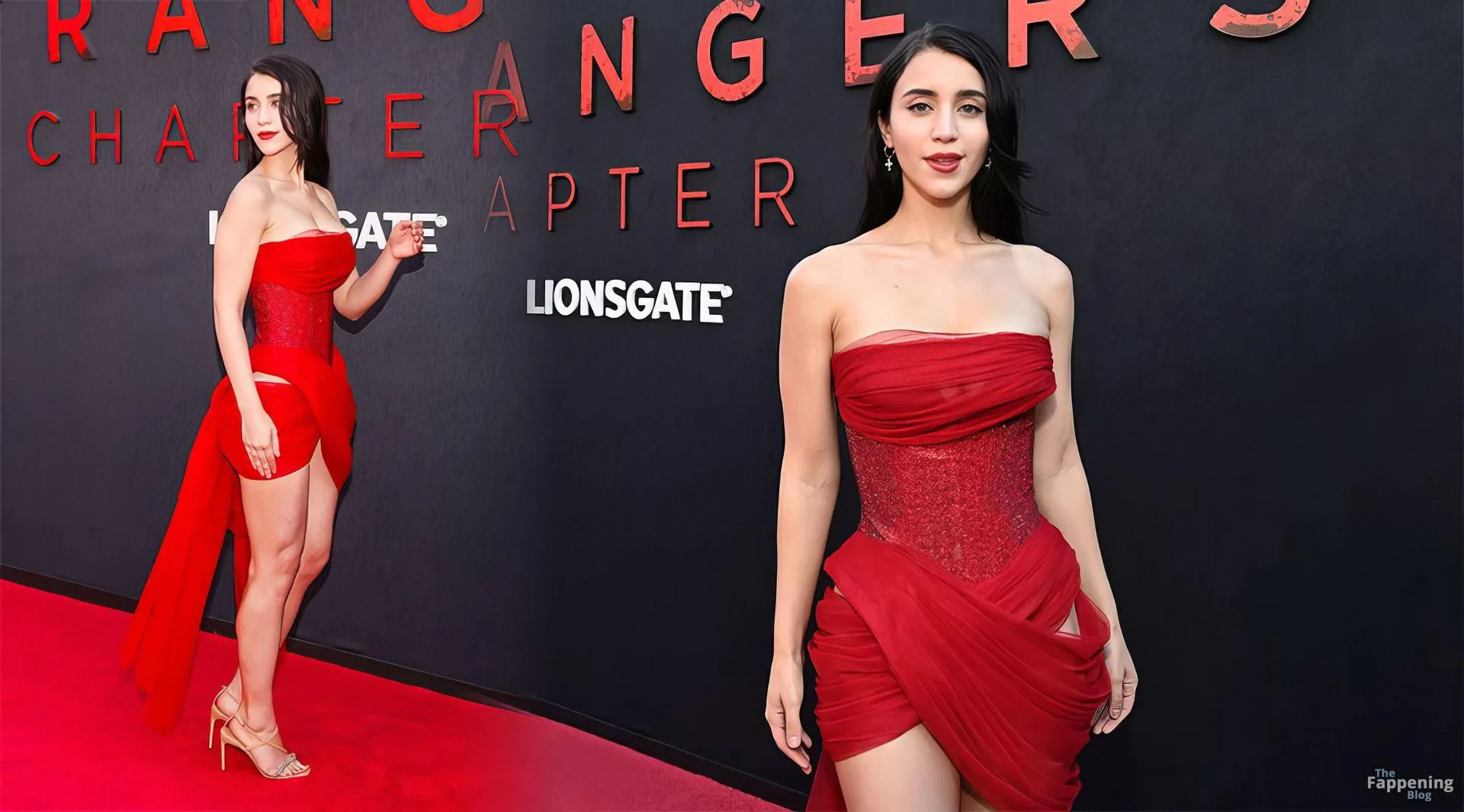 Caylee Cowan showed off her cleavage and legs in a strapless red corset gown at “The Strangers – Chapter 2” premiere, ownin’ the LA red carpet.