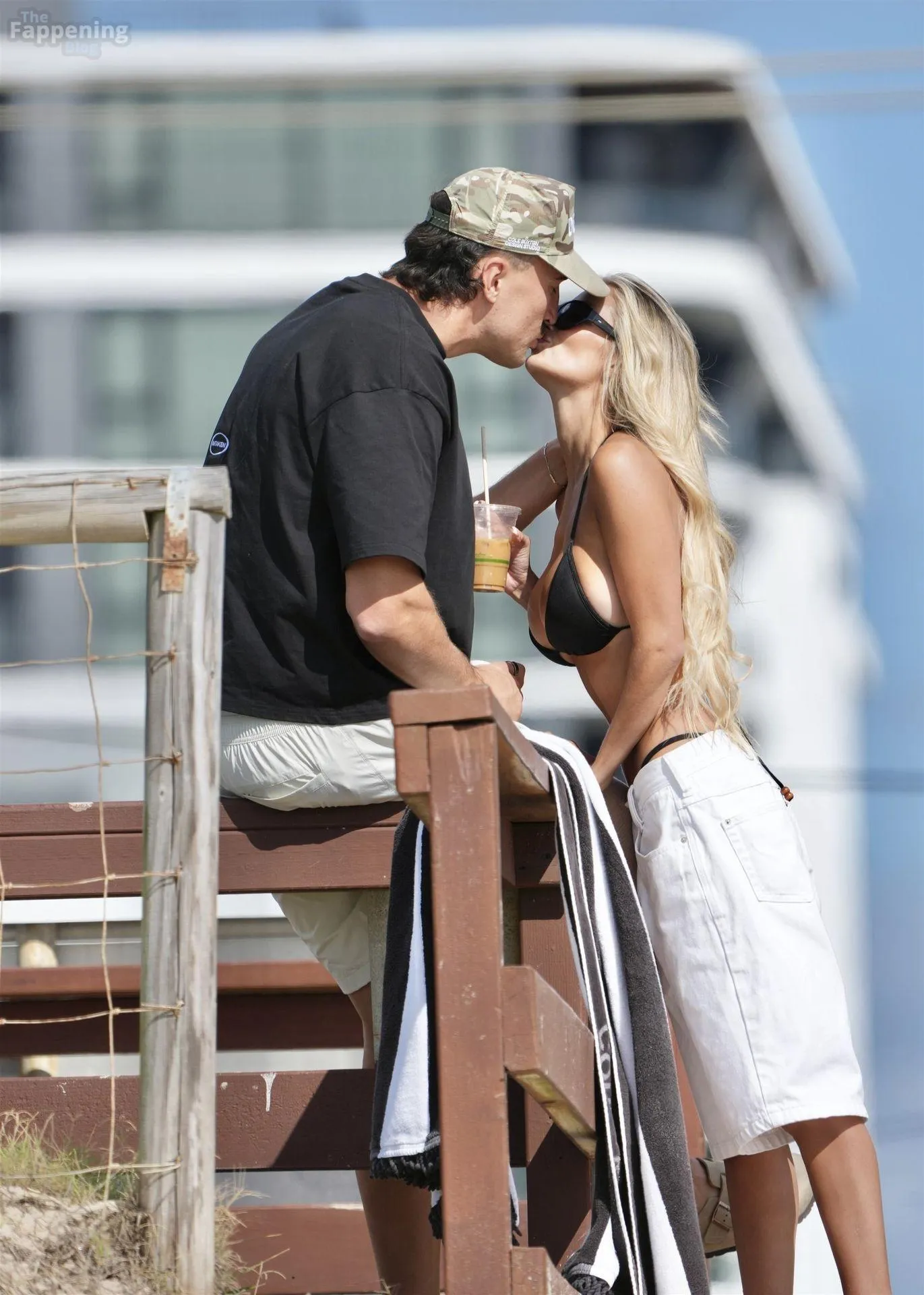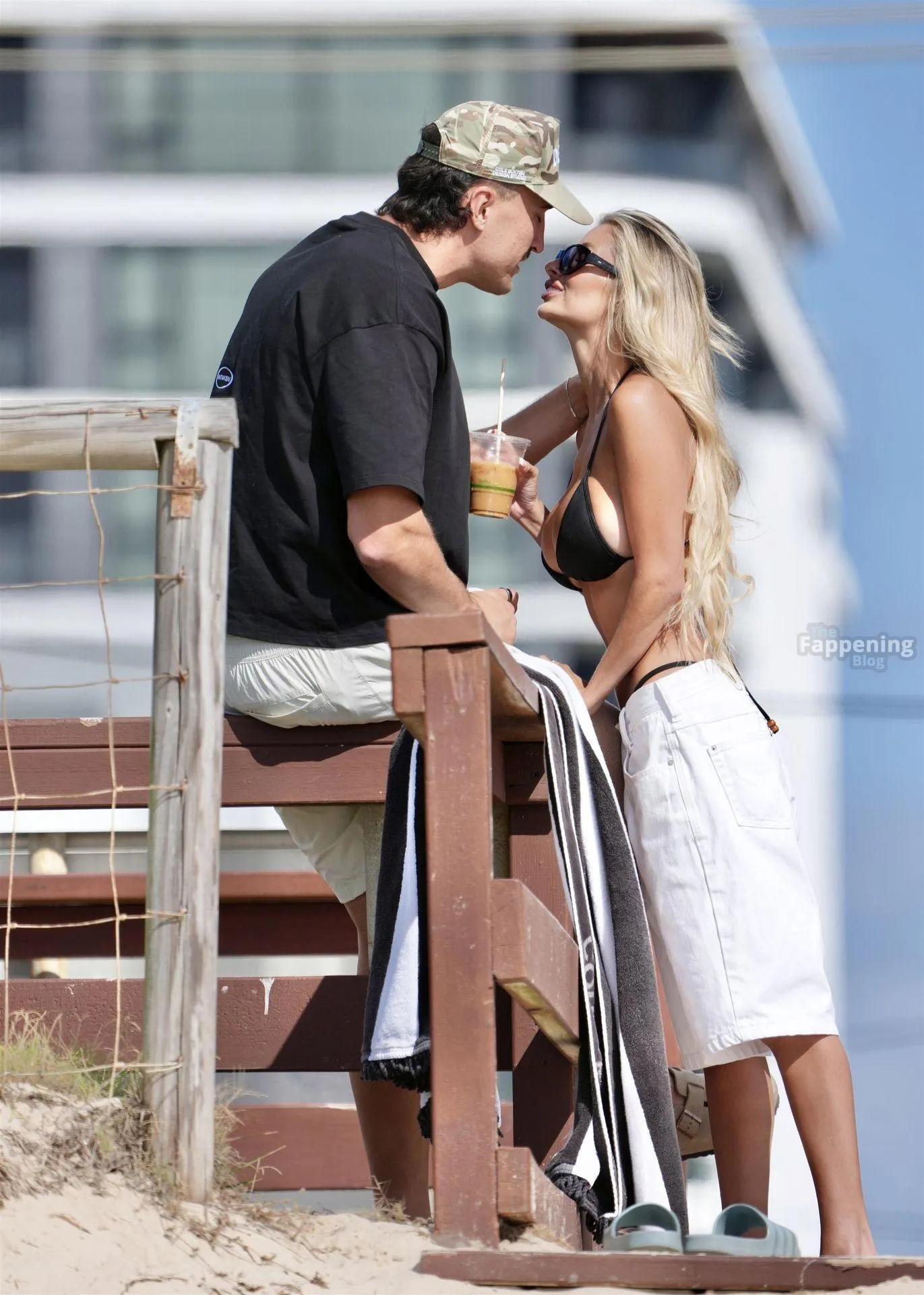 AFL WAG Chelsea Becirevic and Ivan Soldo are seen on the Gold Coast. Chelsea shows off her sexy body in a black string bikini.