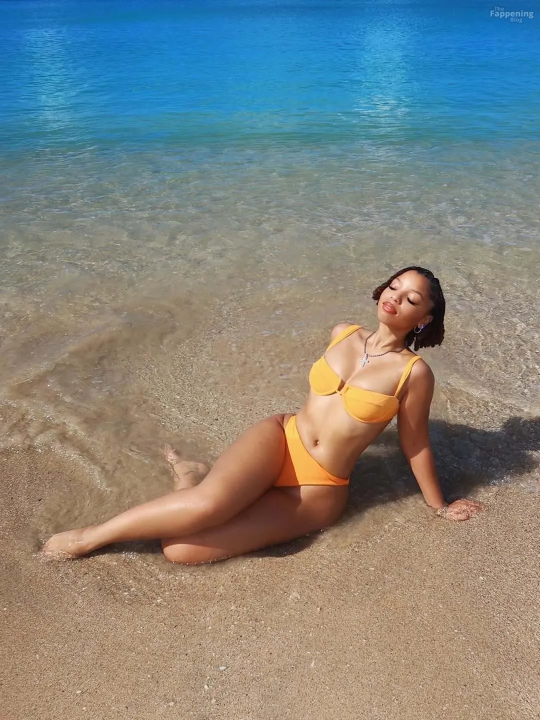 Chloe Bailey enjoys her beach day in a sexy orange bikini showin’ off her juicy booty.