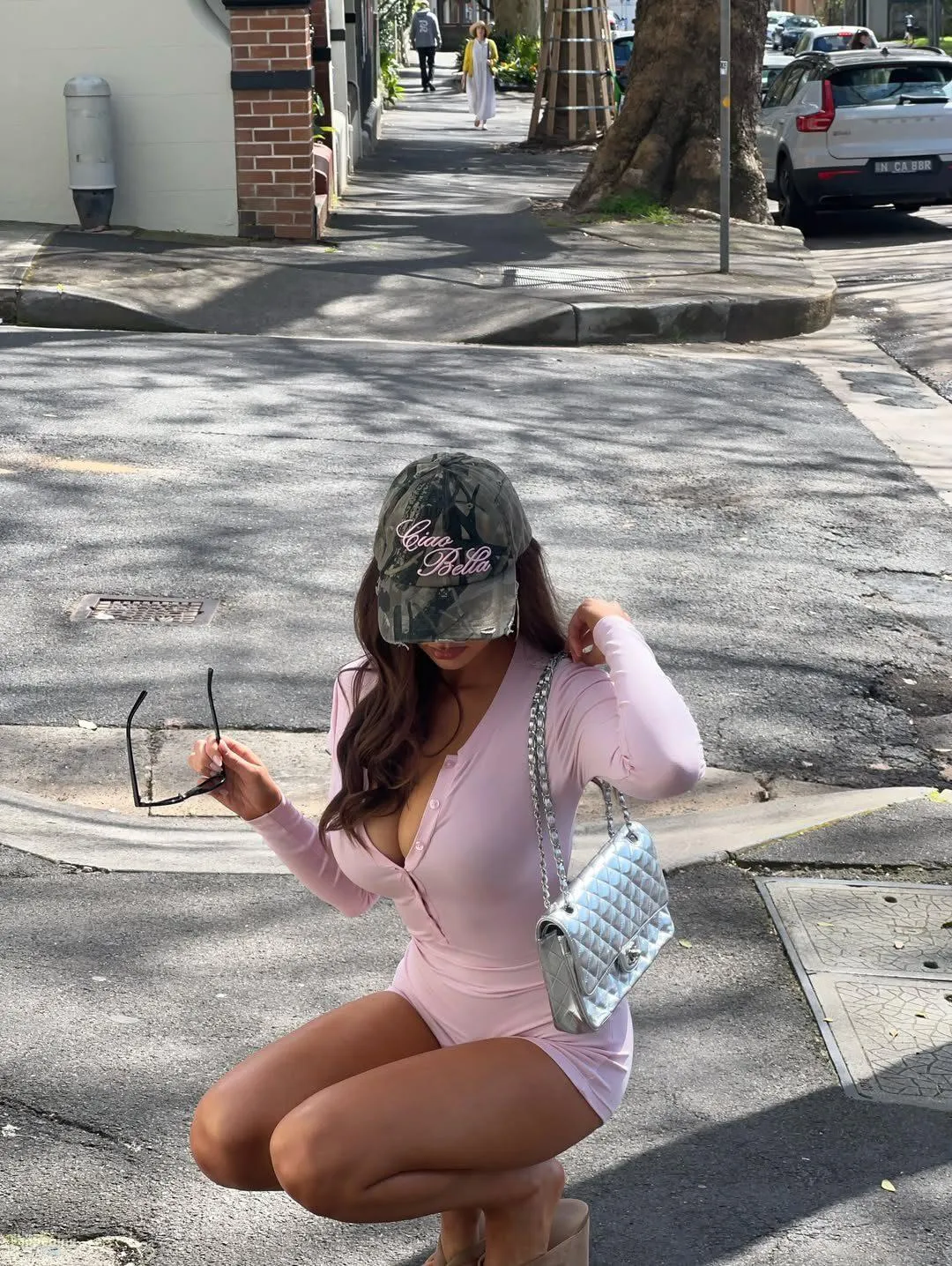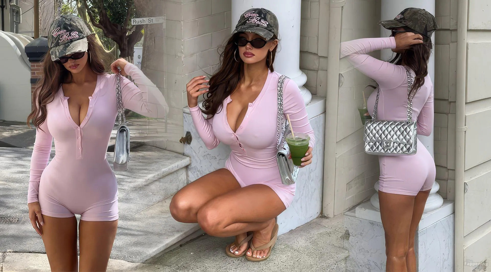 Aussie TikTok star Ella Cervetto poses on Rush Street, rockin’ a pink bodysuit and shows off her sexy tits, booty, and legs.