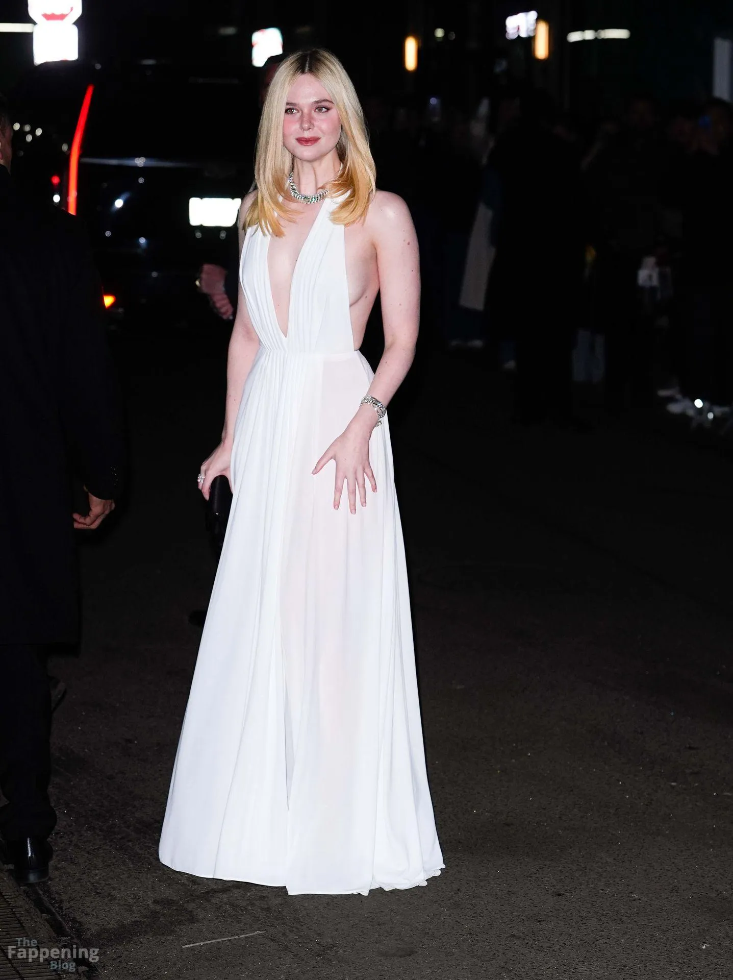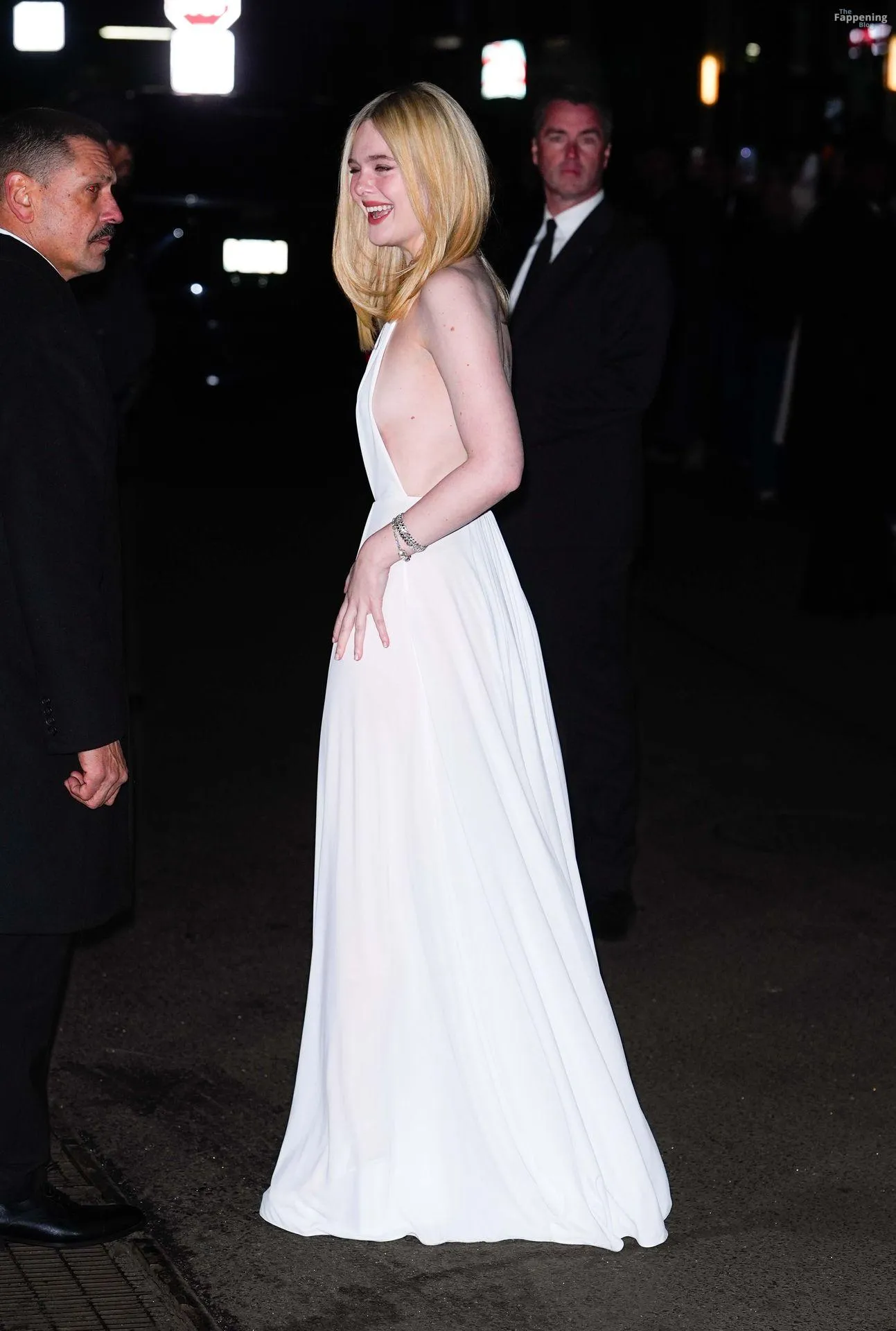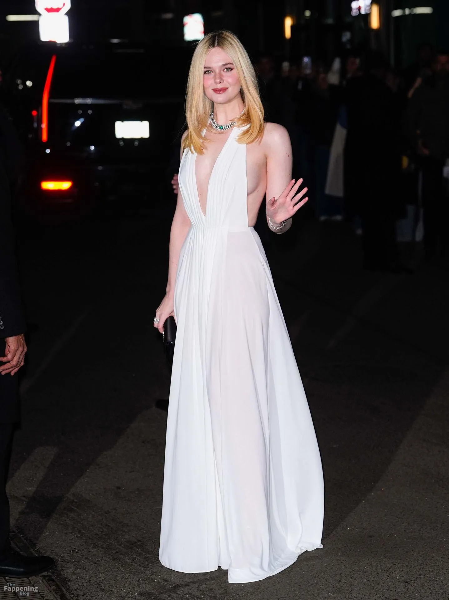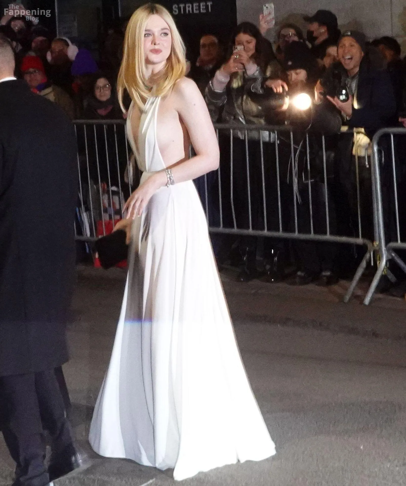 Elle Fanning went braless at the Gotham Awards – plunging neckline, bare back, and a flash of sideboob on the red carpet. Then she hit Wall Street lookin’ like a goddess in a floaty white halter dress.