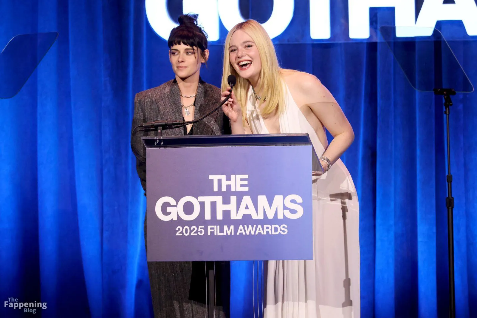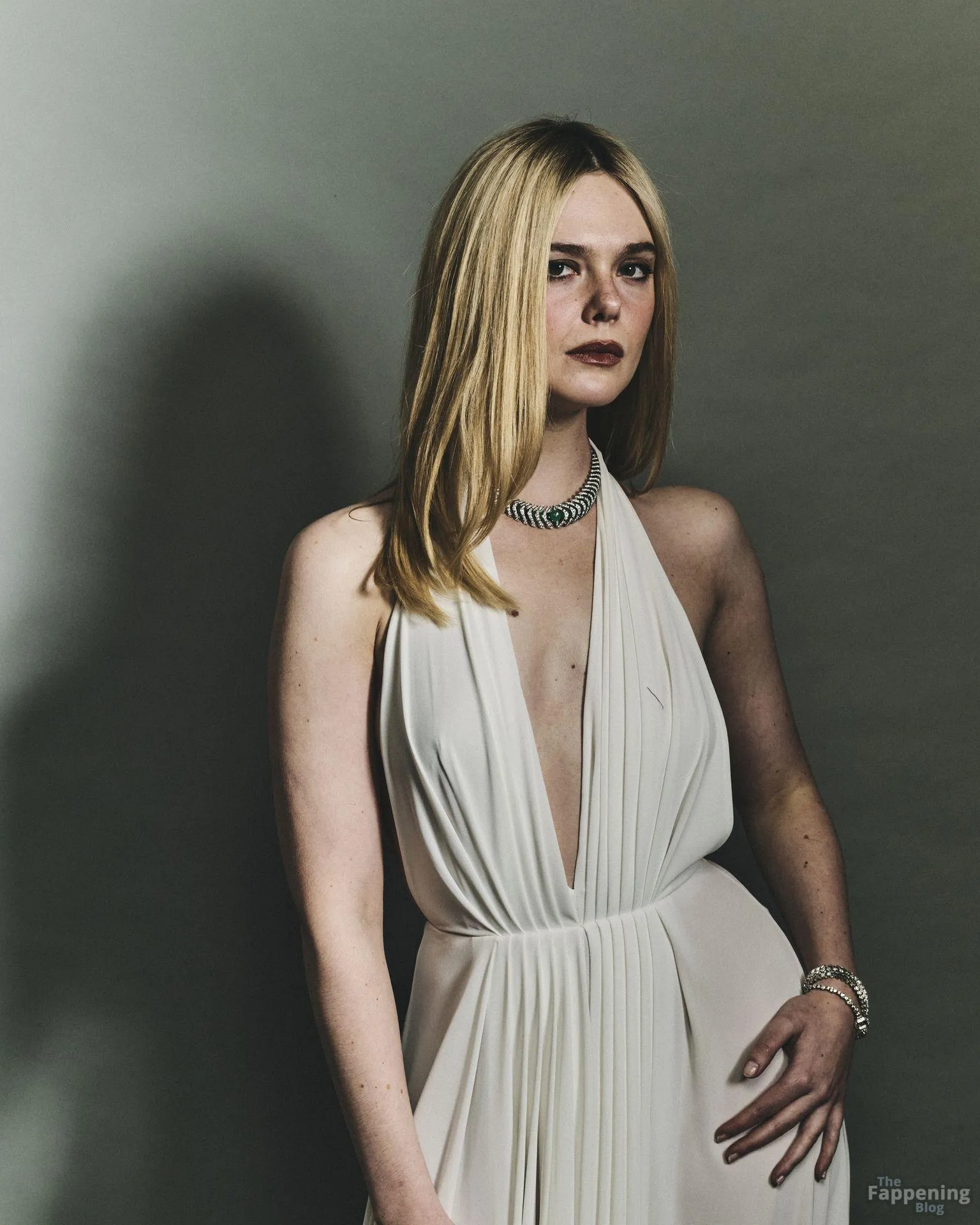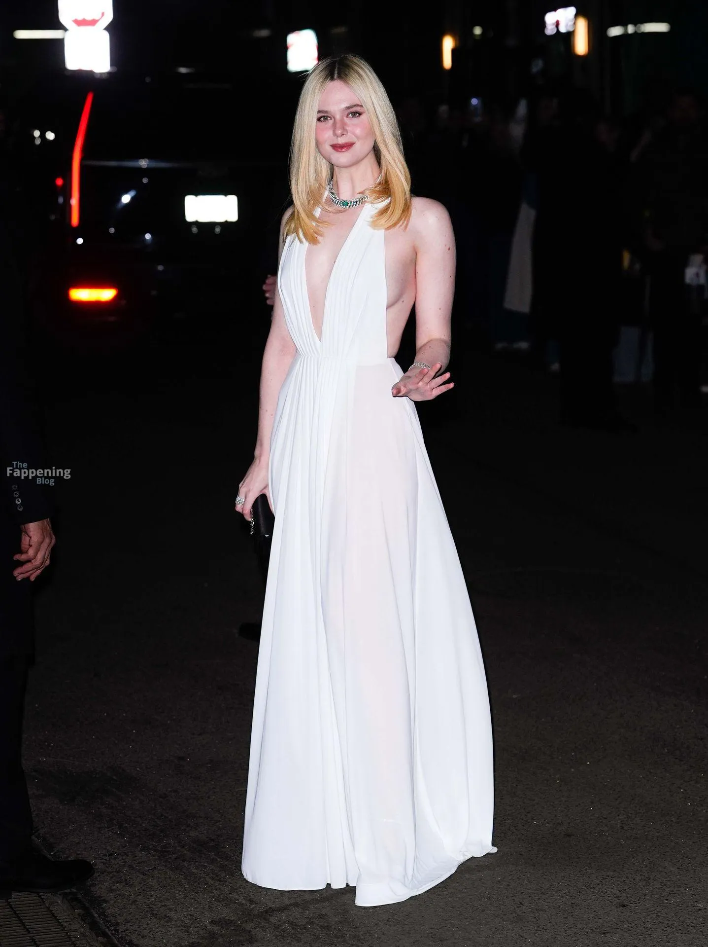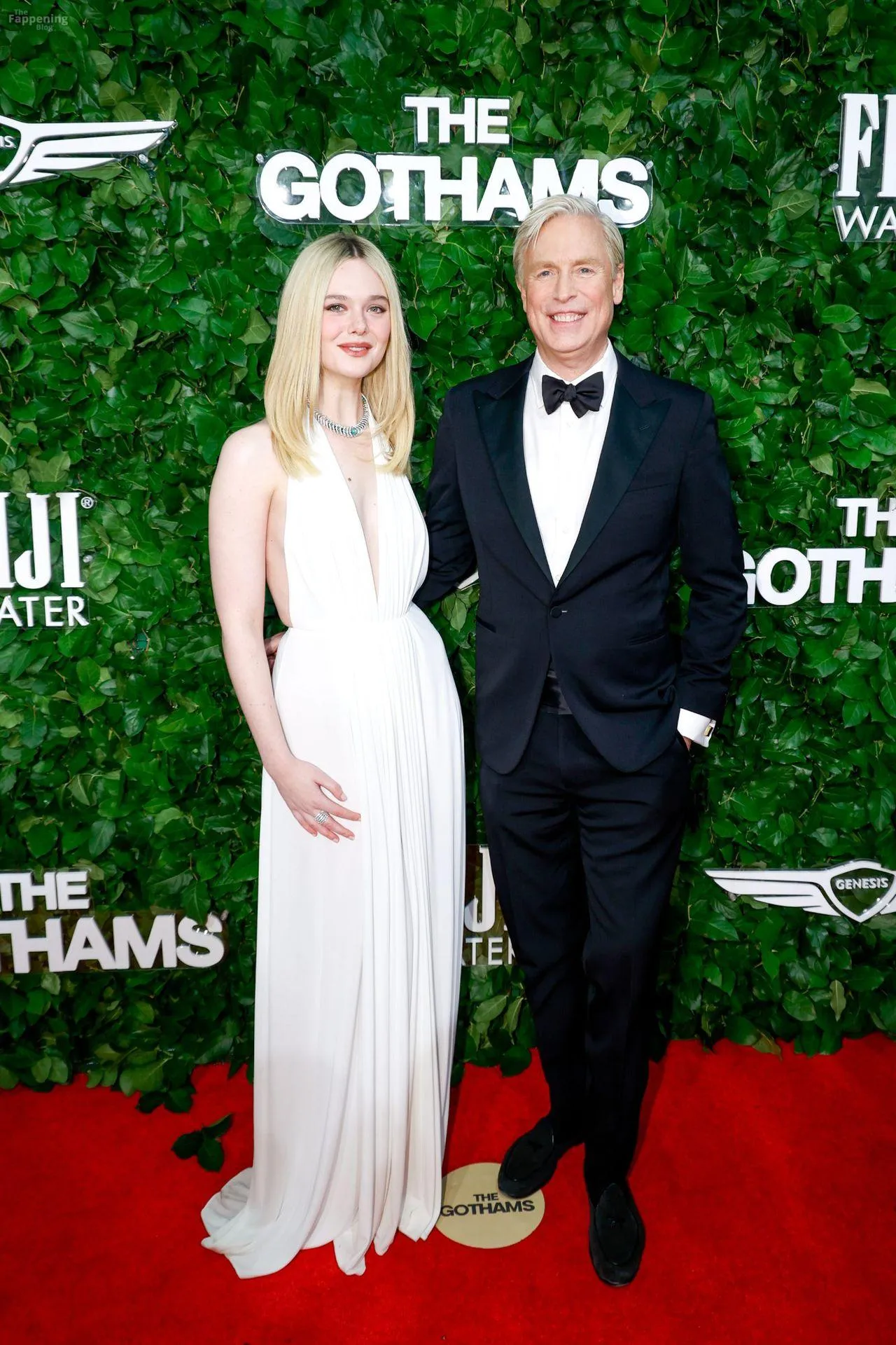 Elle Fanning went braless at the Gotham Awards – plunging neckline, bare back, and a flash of sideboob on the red carpet. Then she hit Wall Street lookin’ like a goddess in a floaty white halter dress.