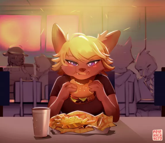 "Yes u can sit here, just don't touch my food" My recent art for Mila, my fursona~ [art by me : @peyekacang77 on IG/Twitter]