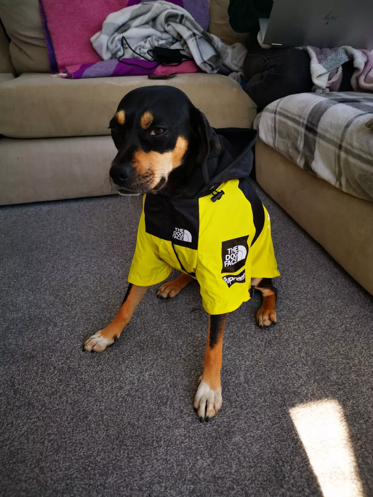 "I got my puppy a coat to protect her from the rain. She is not impressed." nudes