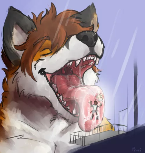 (OC is me) Made a roughly colored vore drawing. Any thoughts or critiques?