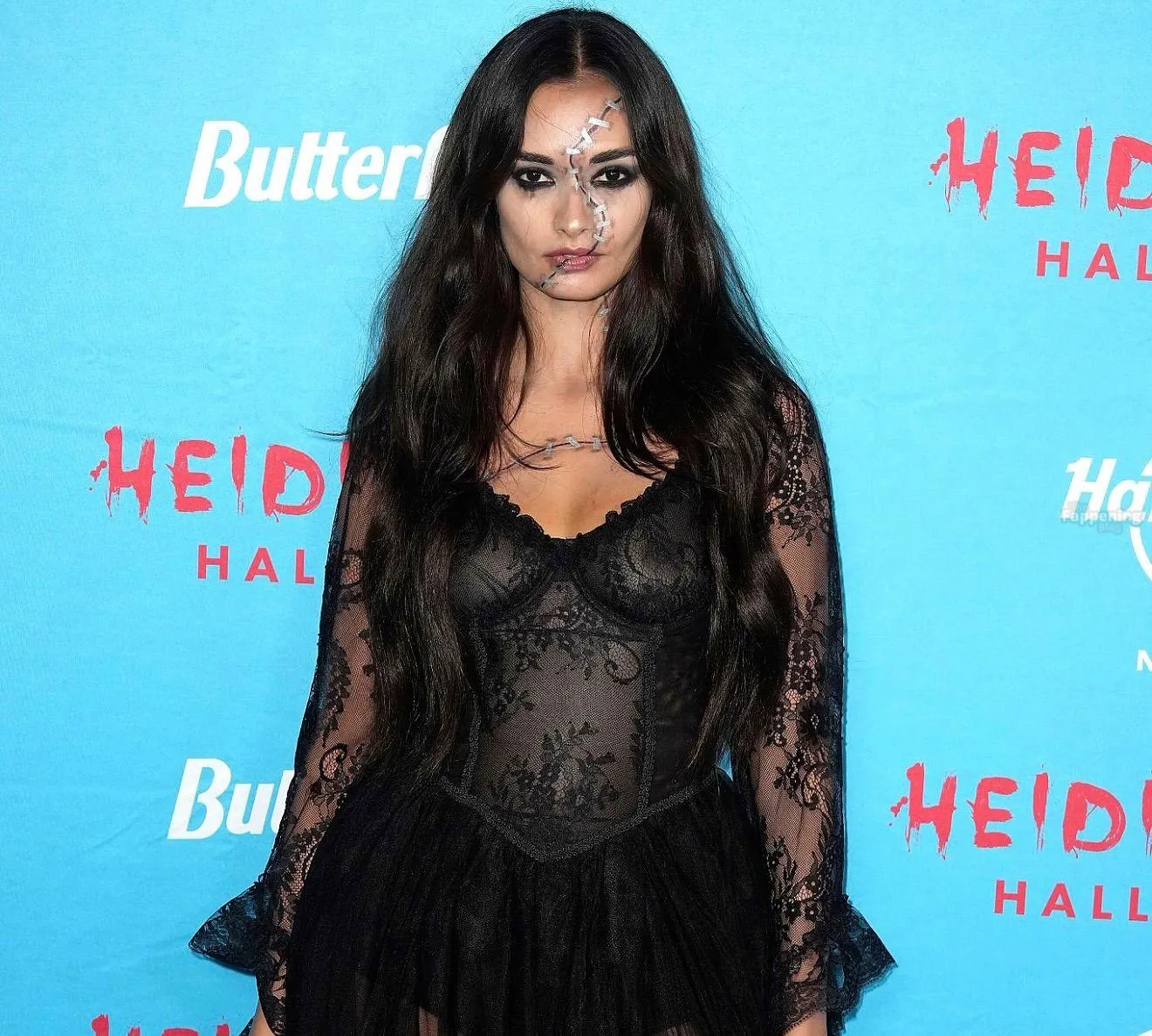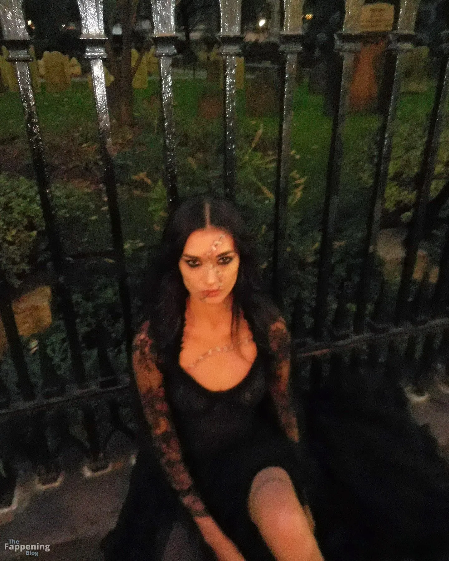 Brazilian model Gizele Oliveira was at Heidi Klum’s 24th annual Halloween party in New York City. She cosplayed Dolores, inspired by Monica Bellucci’s character from “Irreversible”, in a sheer black lace dress that left little to the imagination. No lingerie underneath, she wasn’t shy about flashin’ her nude tits in the revealing outfit.