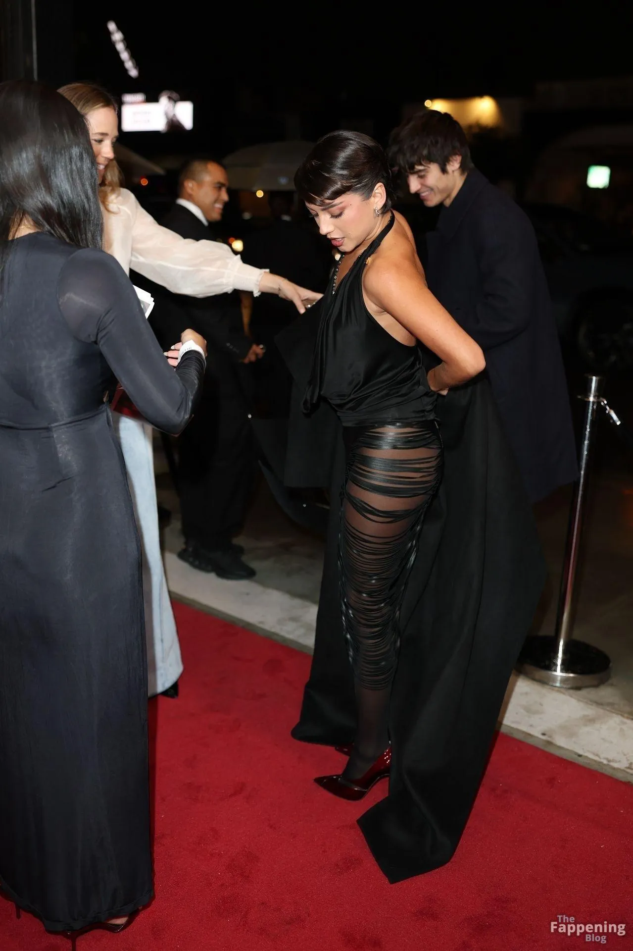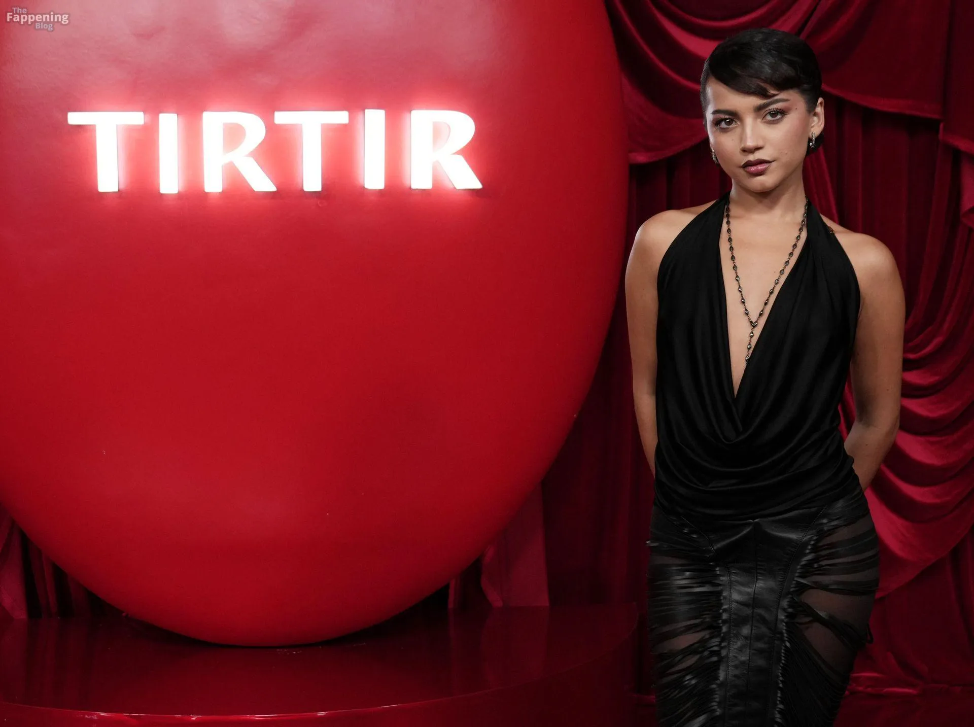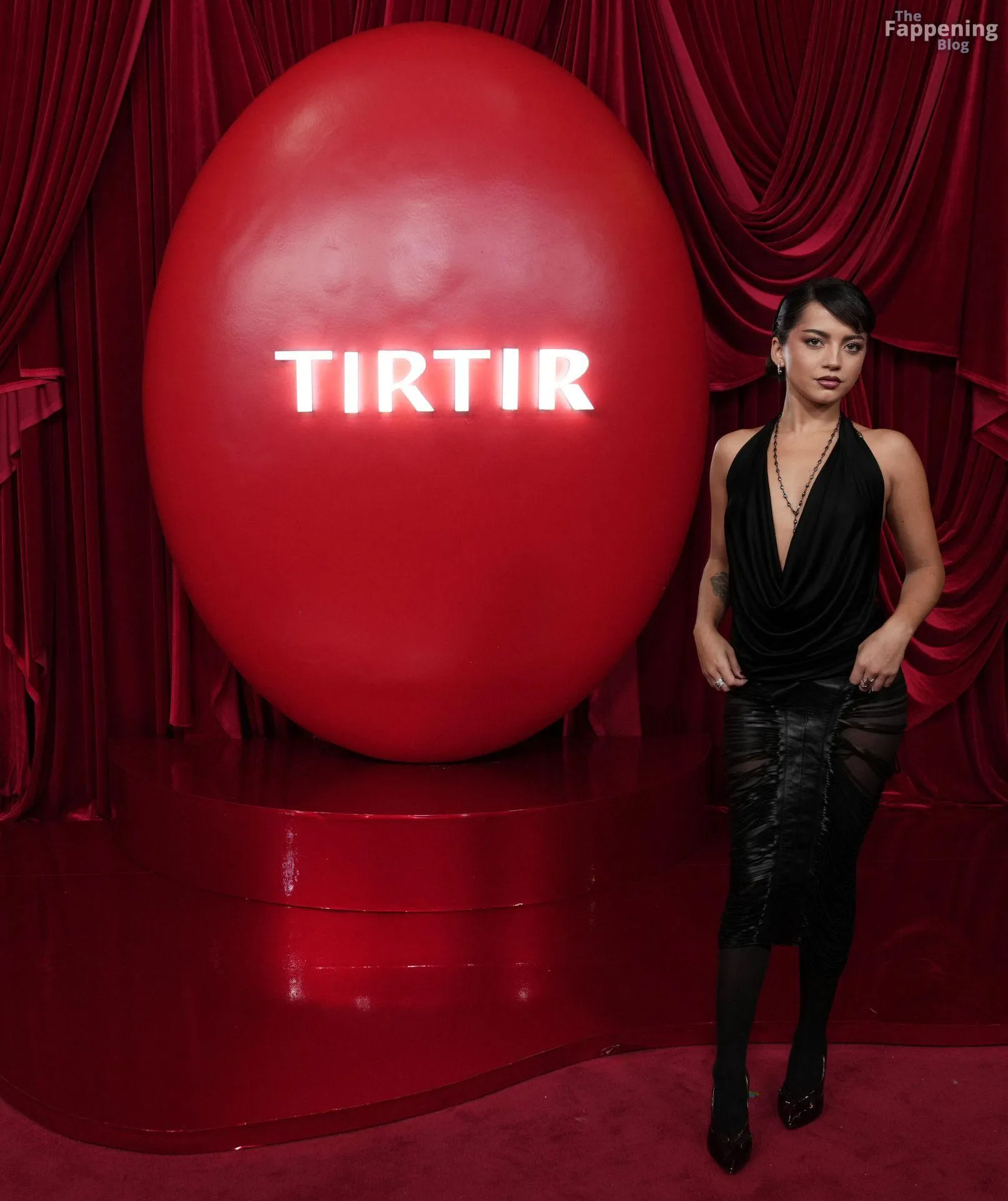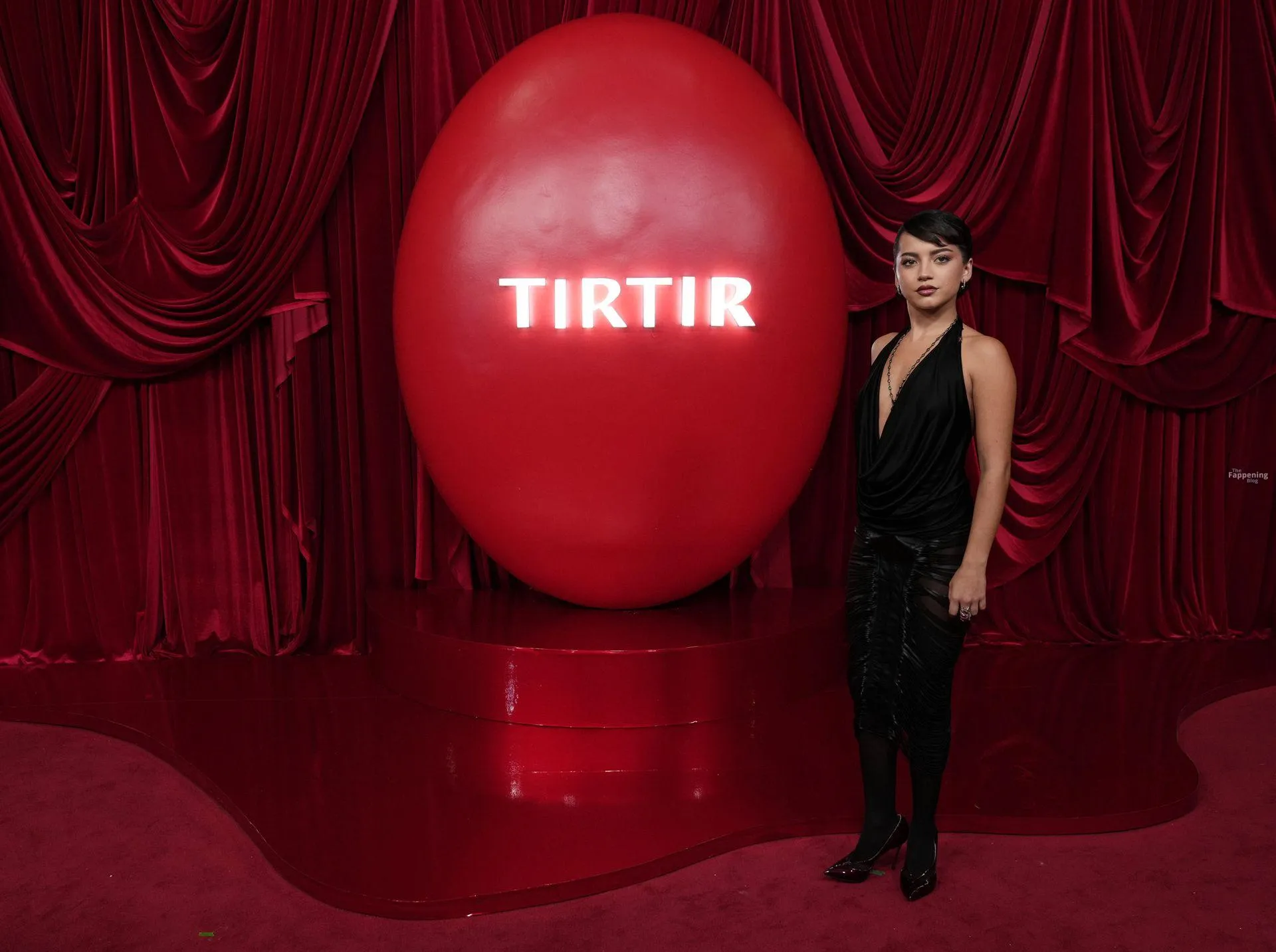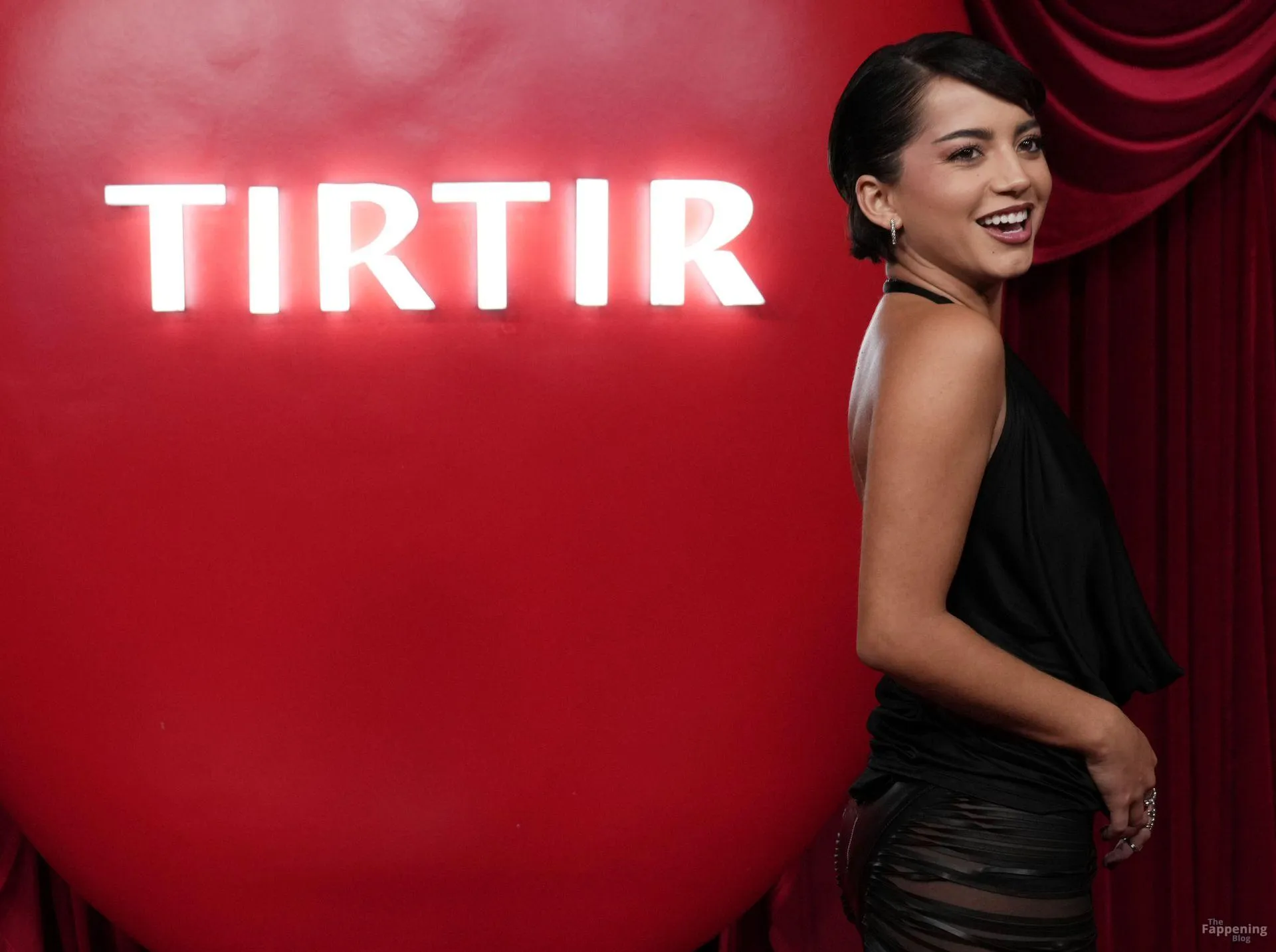 Actress and singer Isabela Merced is pictured in a see-through dress at TirTir’s Radiate in Red Pop-Up event at 8175 Melrose Ave in Los Angeles, flashing her ass in that sheer skirt.