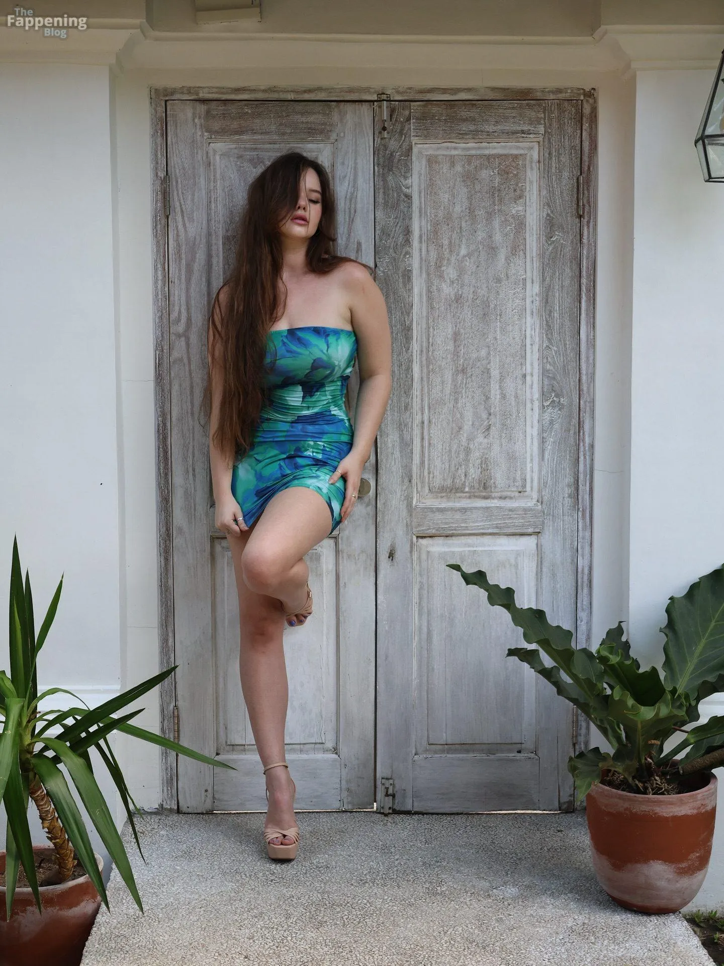 Isabella Ardley was pictured in a strapless tropical mini dress, showin’ off her sexy figure and long legs in various poses.