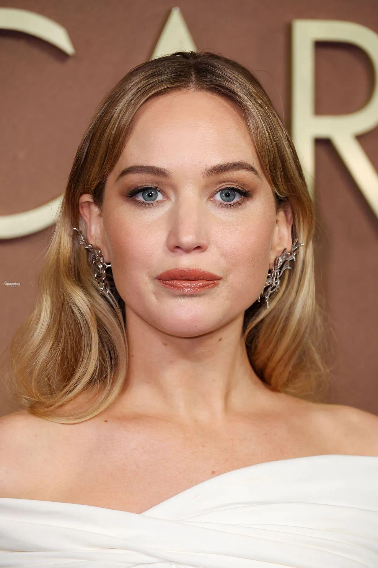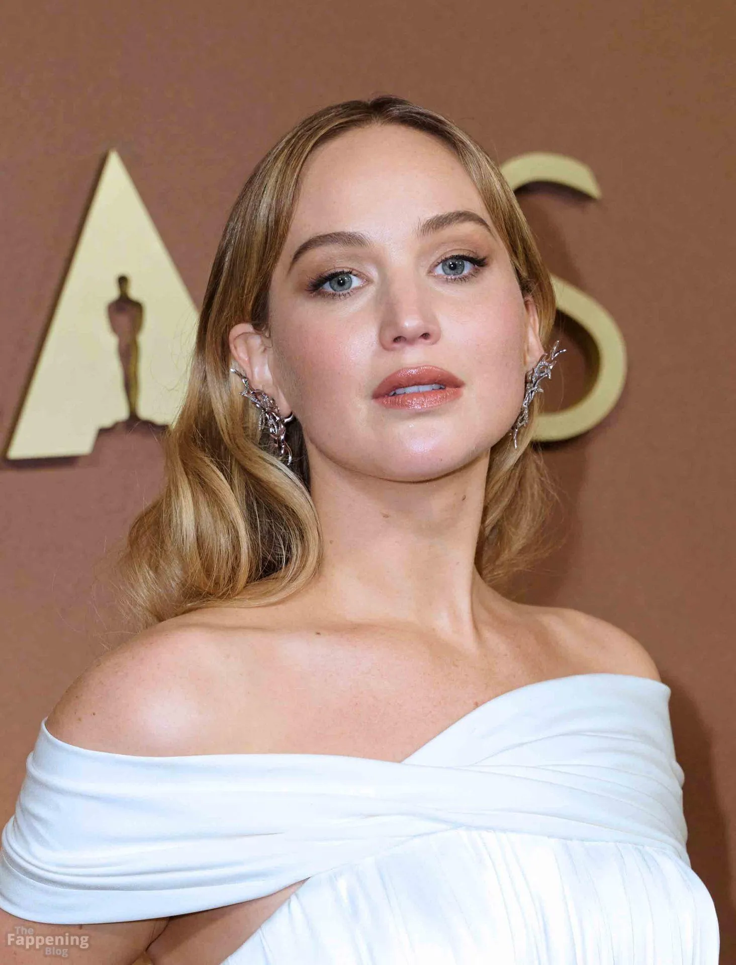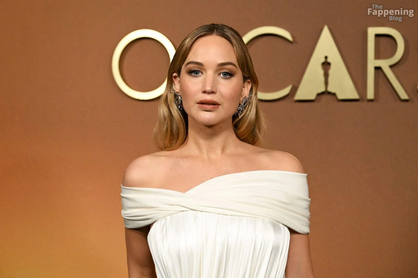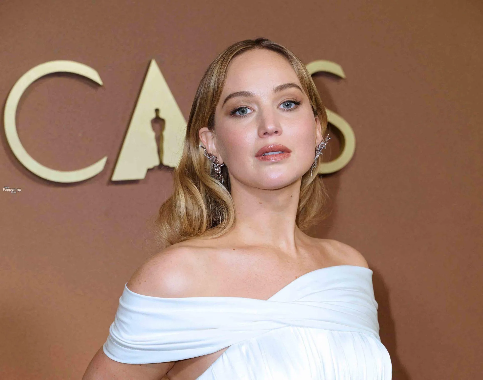 Jennifer Lawrence Looks Sexy at the 16th Governors Awards (33 Photos) Jennifer Lawrence stuns in a white off-shoulder gown with a thigh-high slit at the 16th Governors Awards at Ovation Hollywood in Los Angeles.
