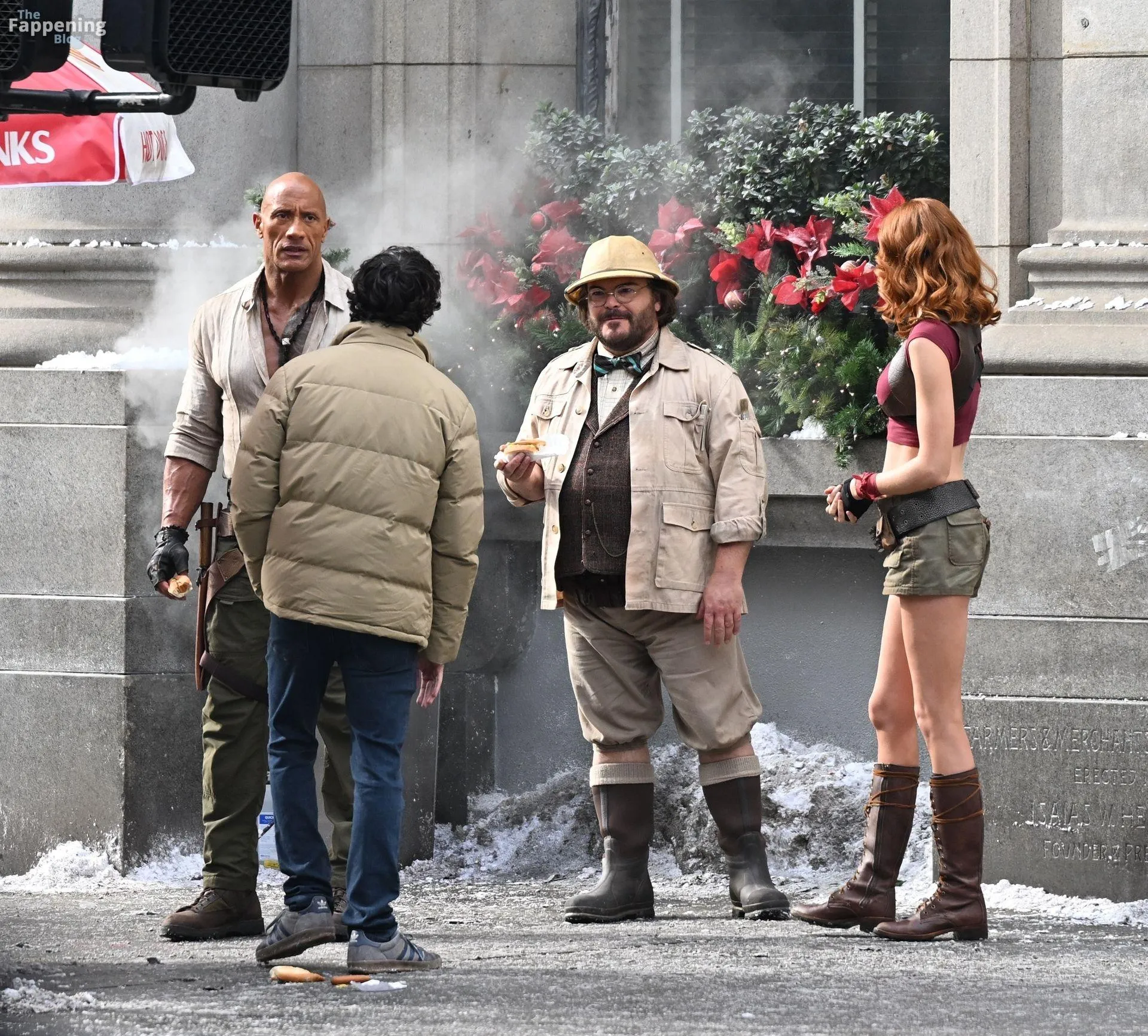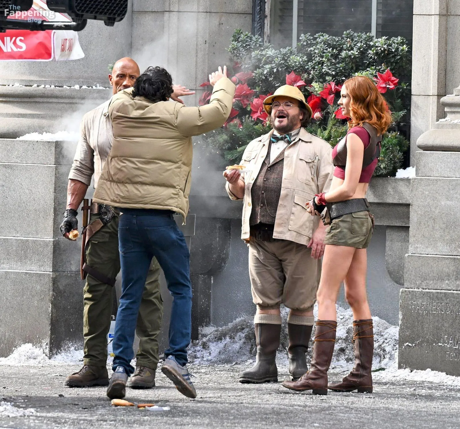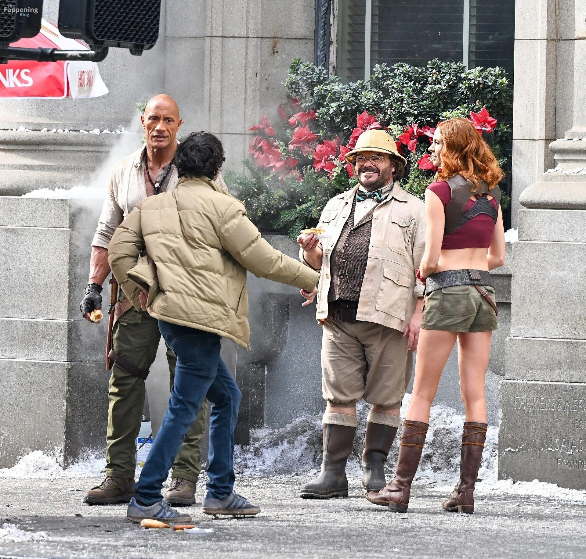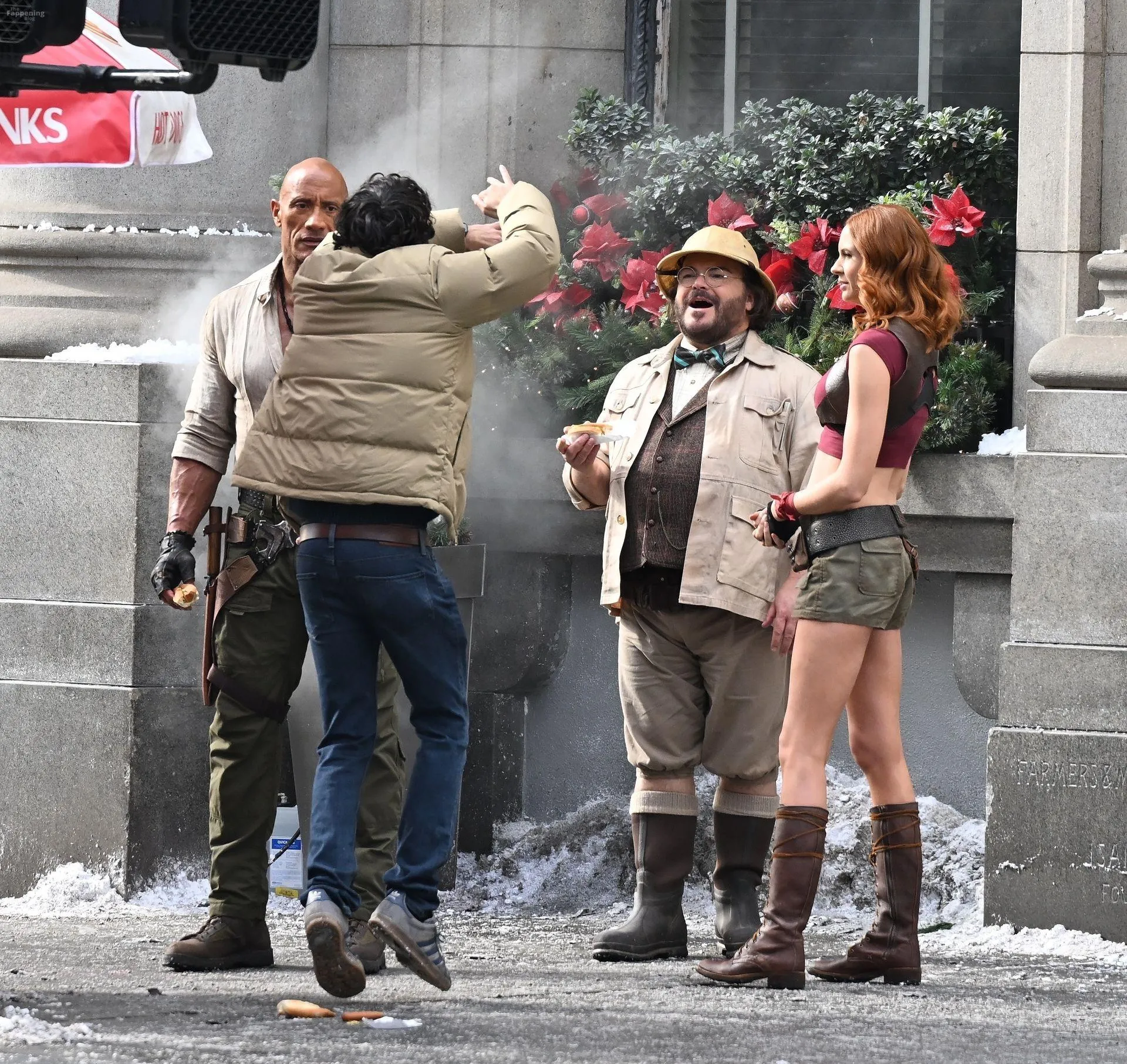 Dwayne Johnson, Jack Black, Karen Gillan, and Kevin Hart were spotted shooting new scenes in Los Angeles for the next Jumanji flick.