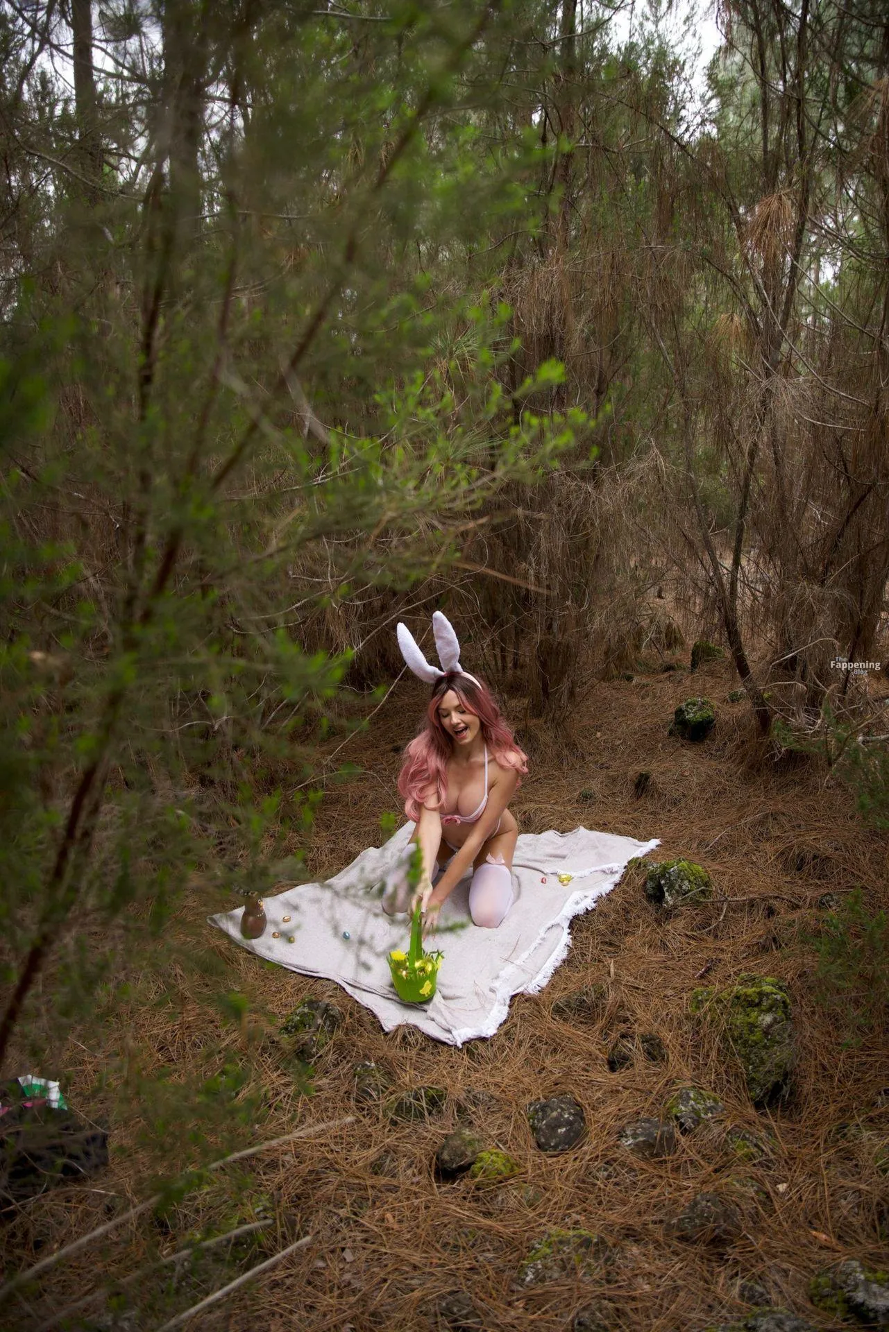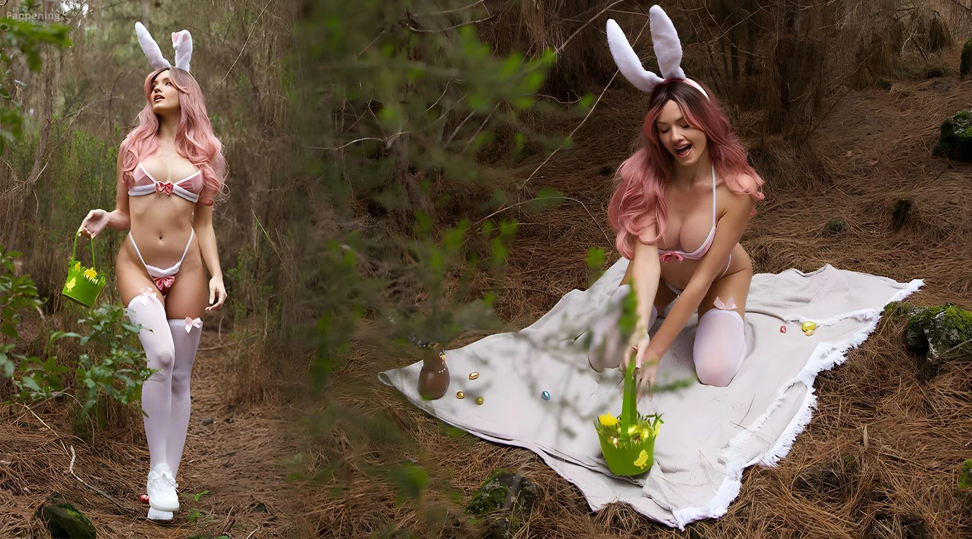 Belgian model Katy Hollick goes wild as a sexy Easter bunny in the forest. Check out her sexy tits and ass and see all the photos.