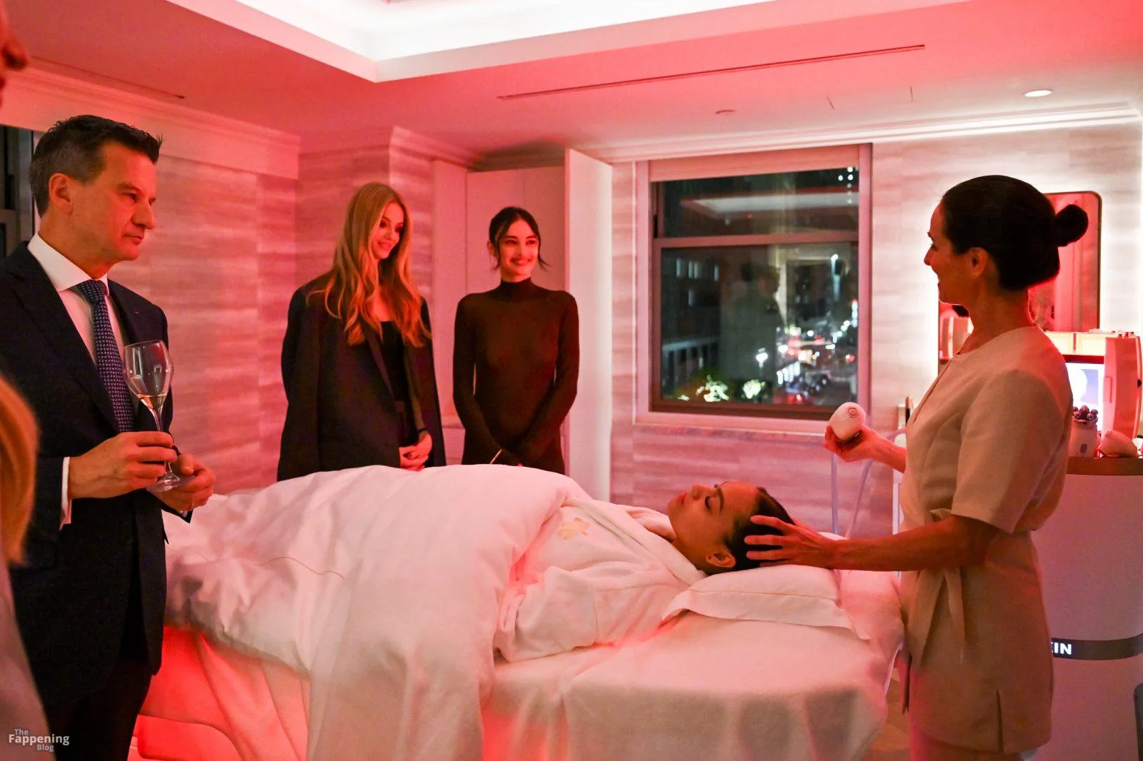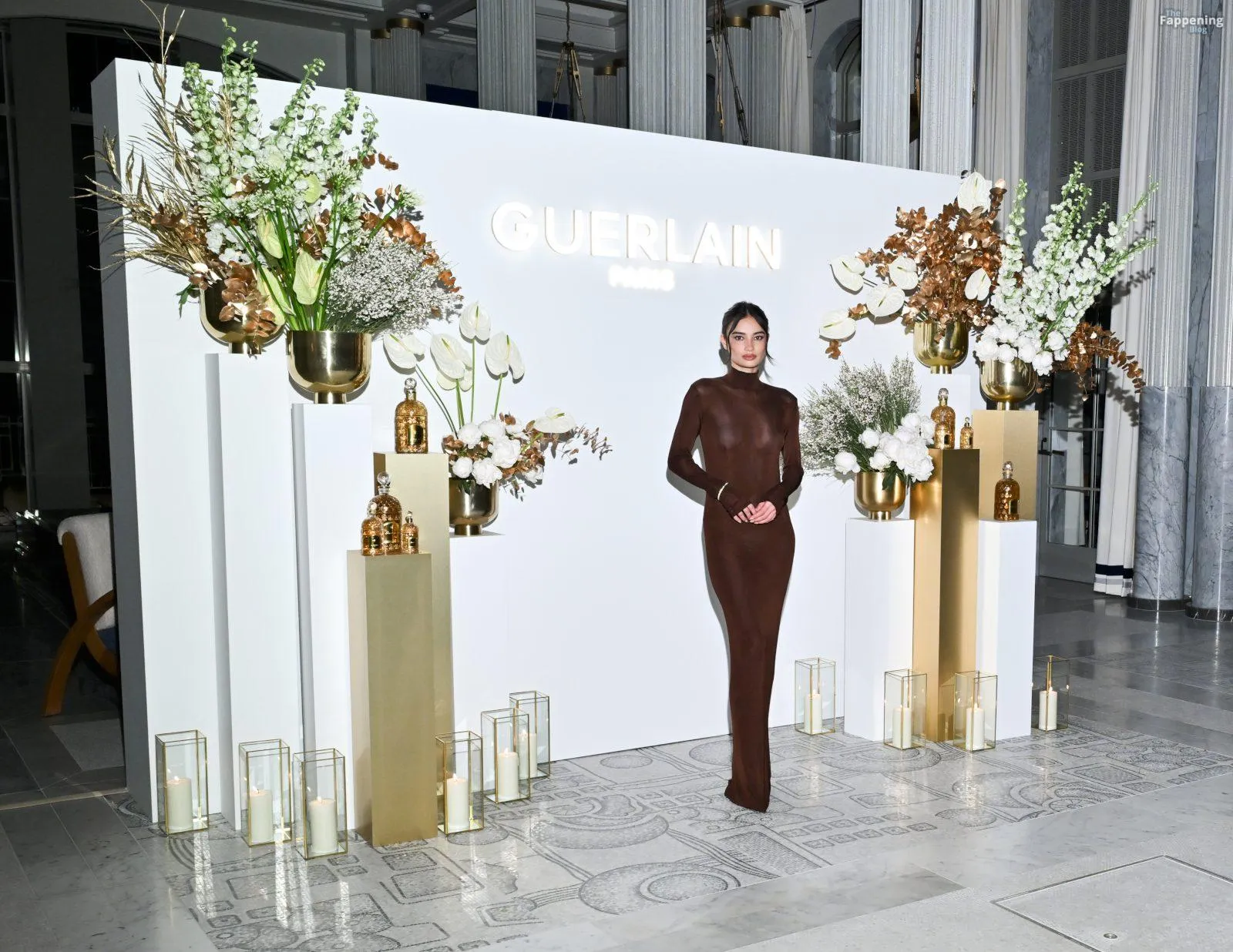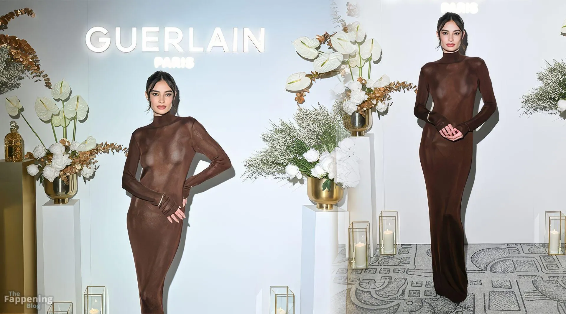 Filipino-American model Kelsey Merritt stuns at Guerlain’s NYC opening with a sheer brown dress.