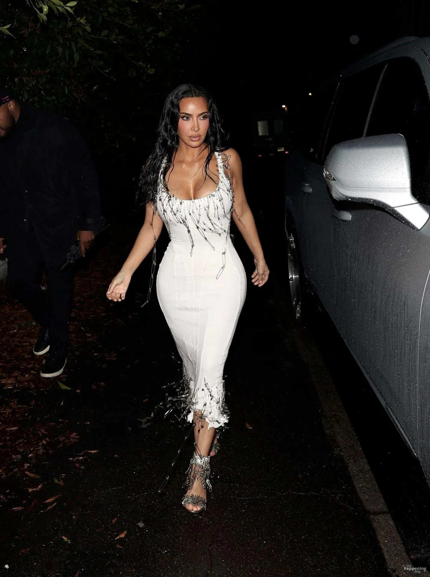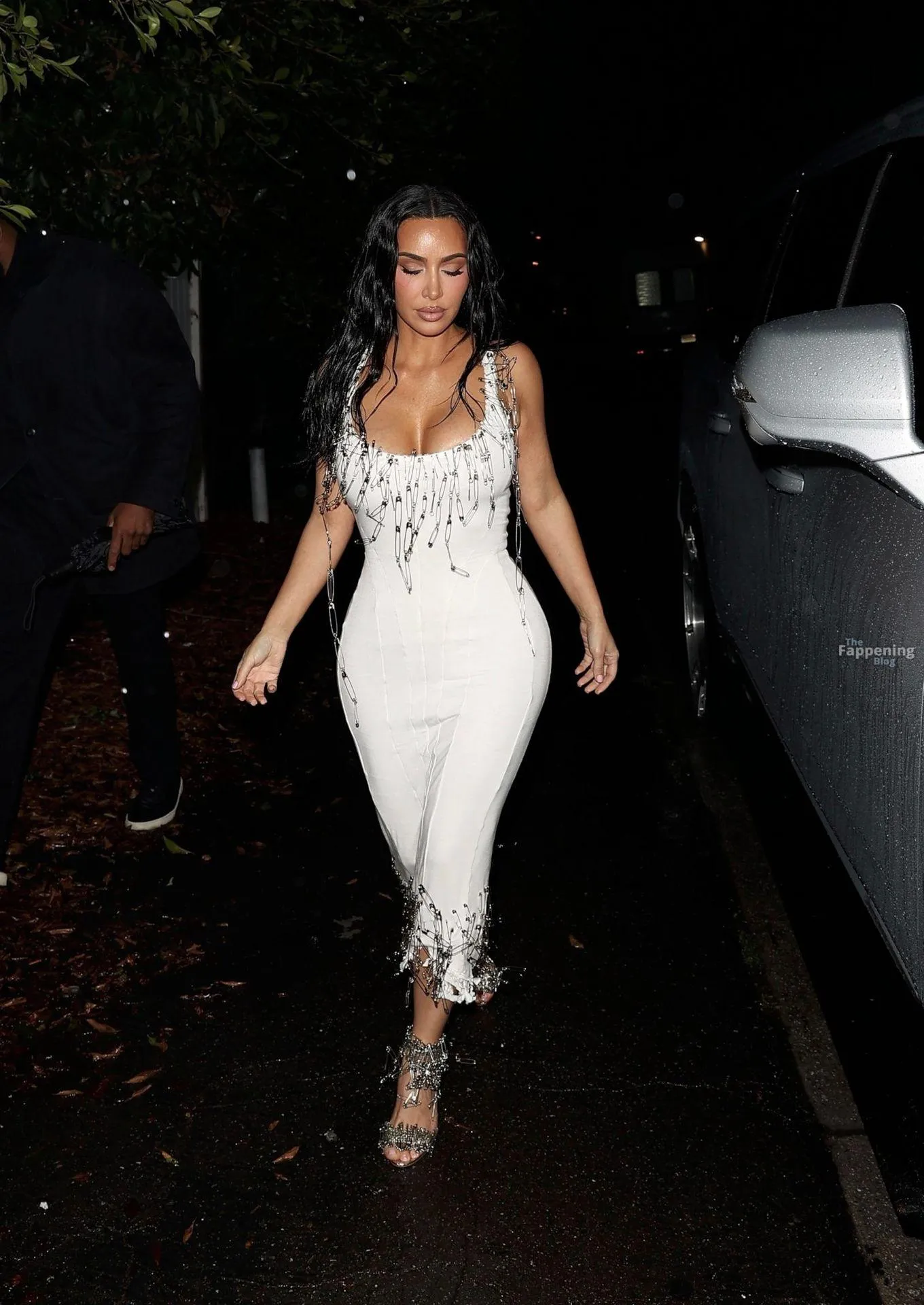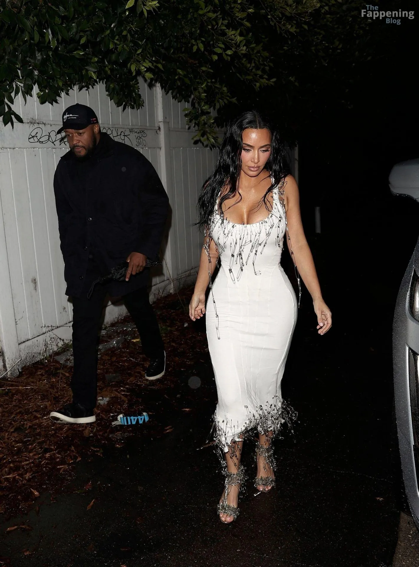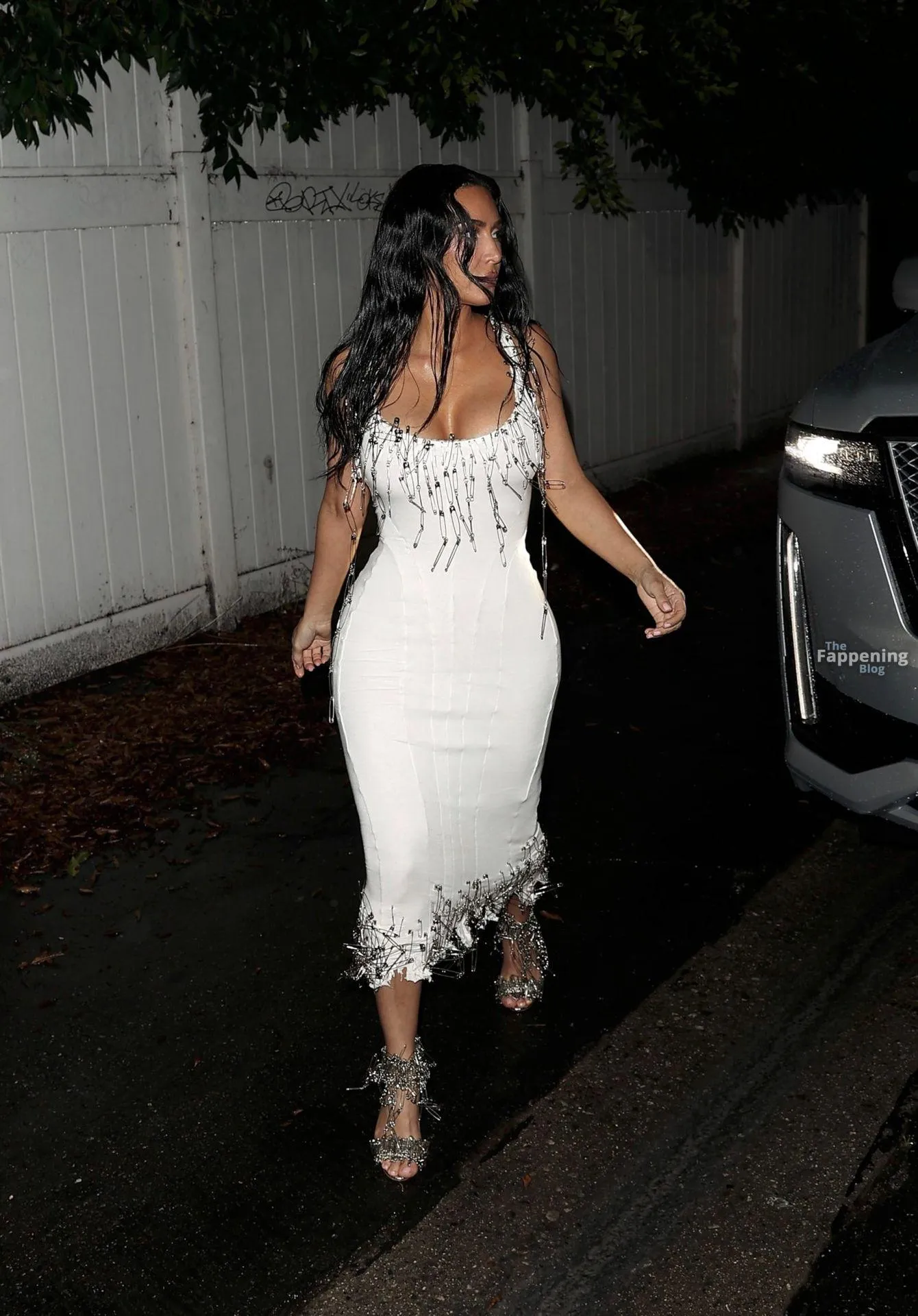 Reality TV star Kim Kardashian was seen in a white dress at Petra Collins’ LA bash.