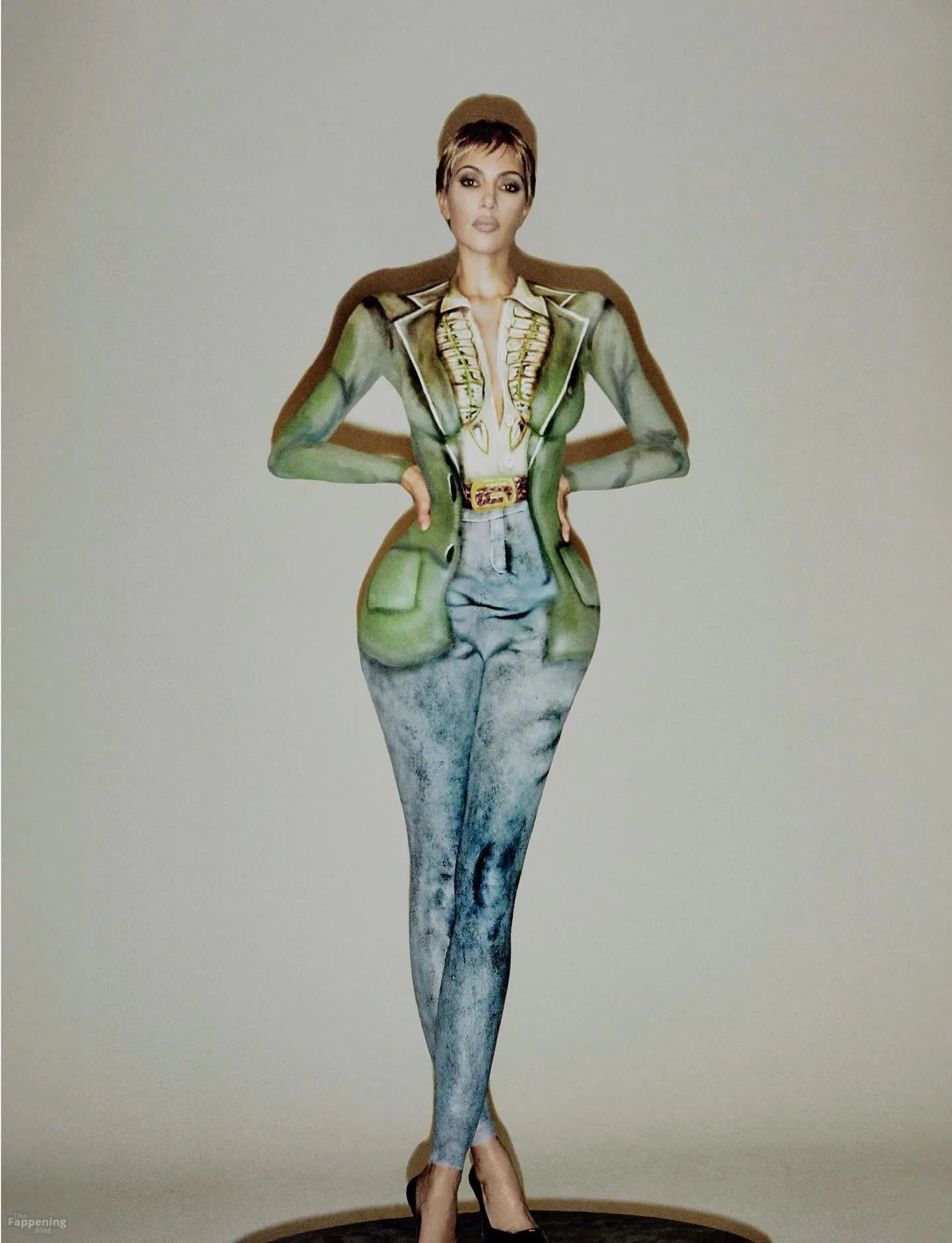Kim Kardashian recently dropped a wild nude shoot for Re-Edition magazine’s November 2025 issue. She’s all painted up and bare – just her boobs on full view. The social media queen stripped down and posed naked, with only body paint slathered on. You won’t catch her pussy in these shots, but her boobs pop through that thin layer like they’re meant to be seen.