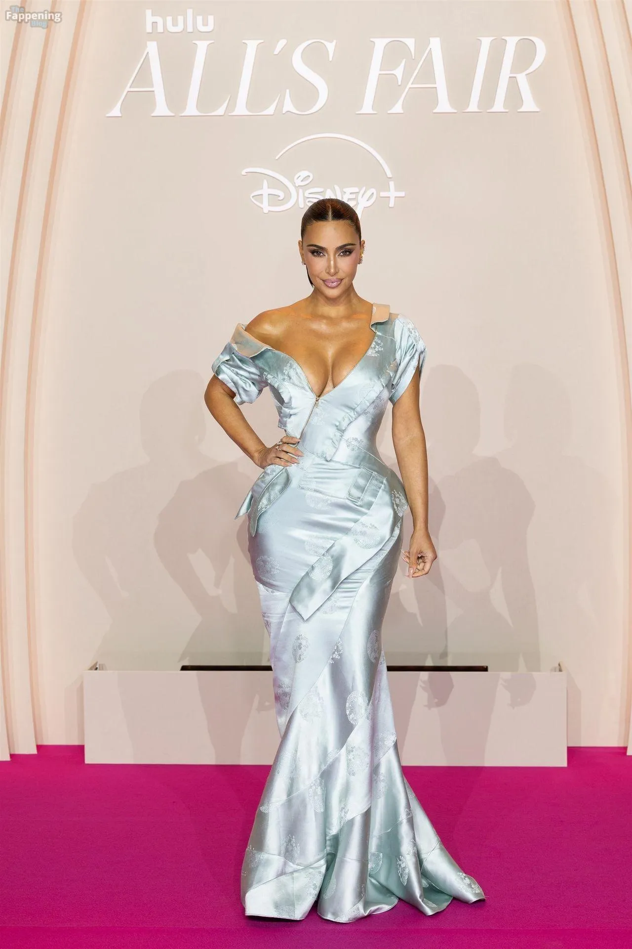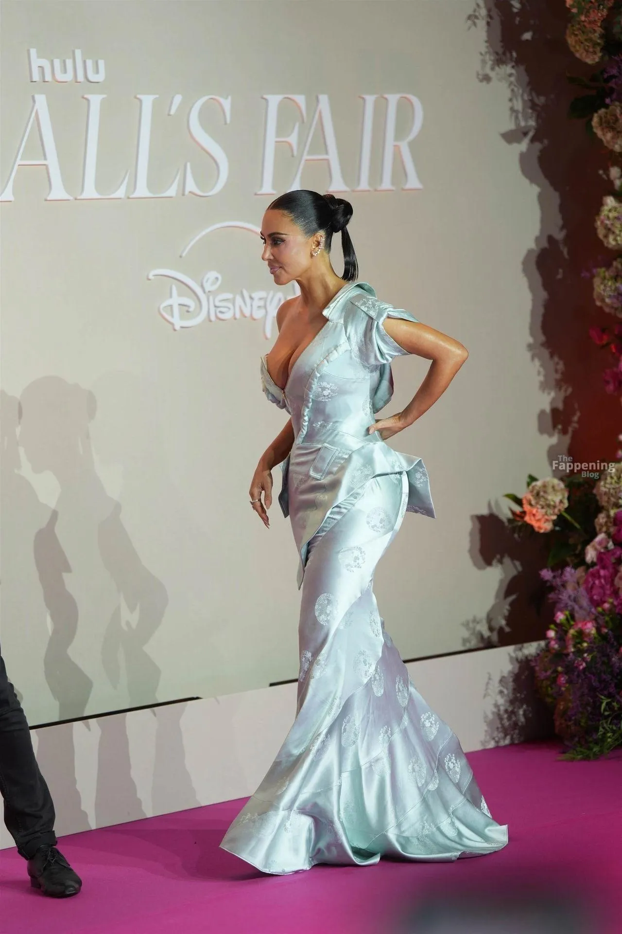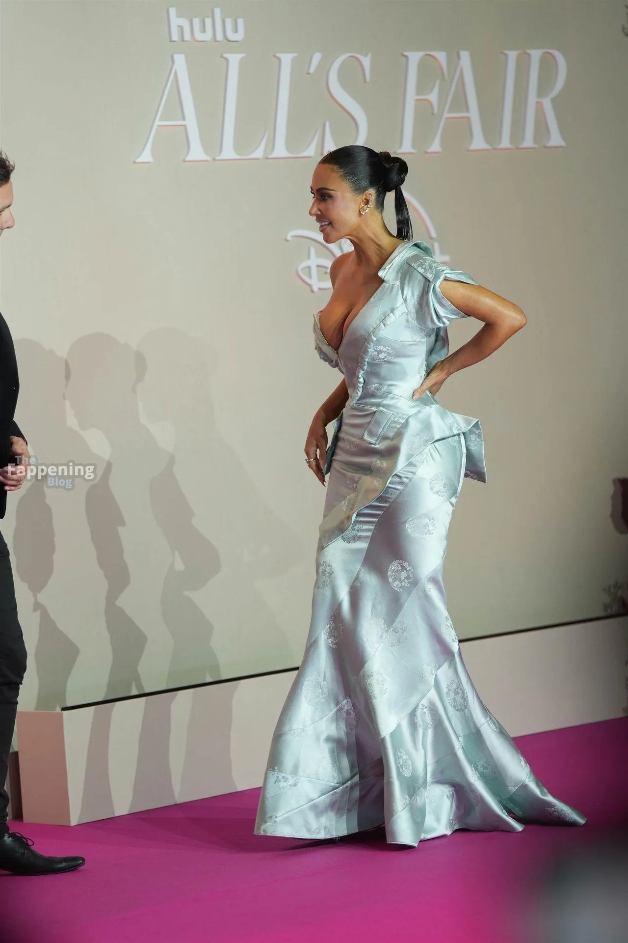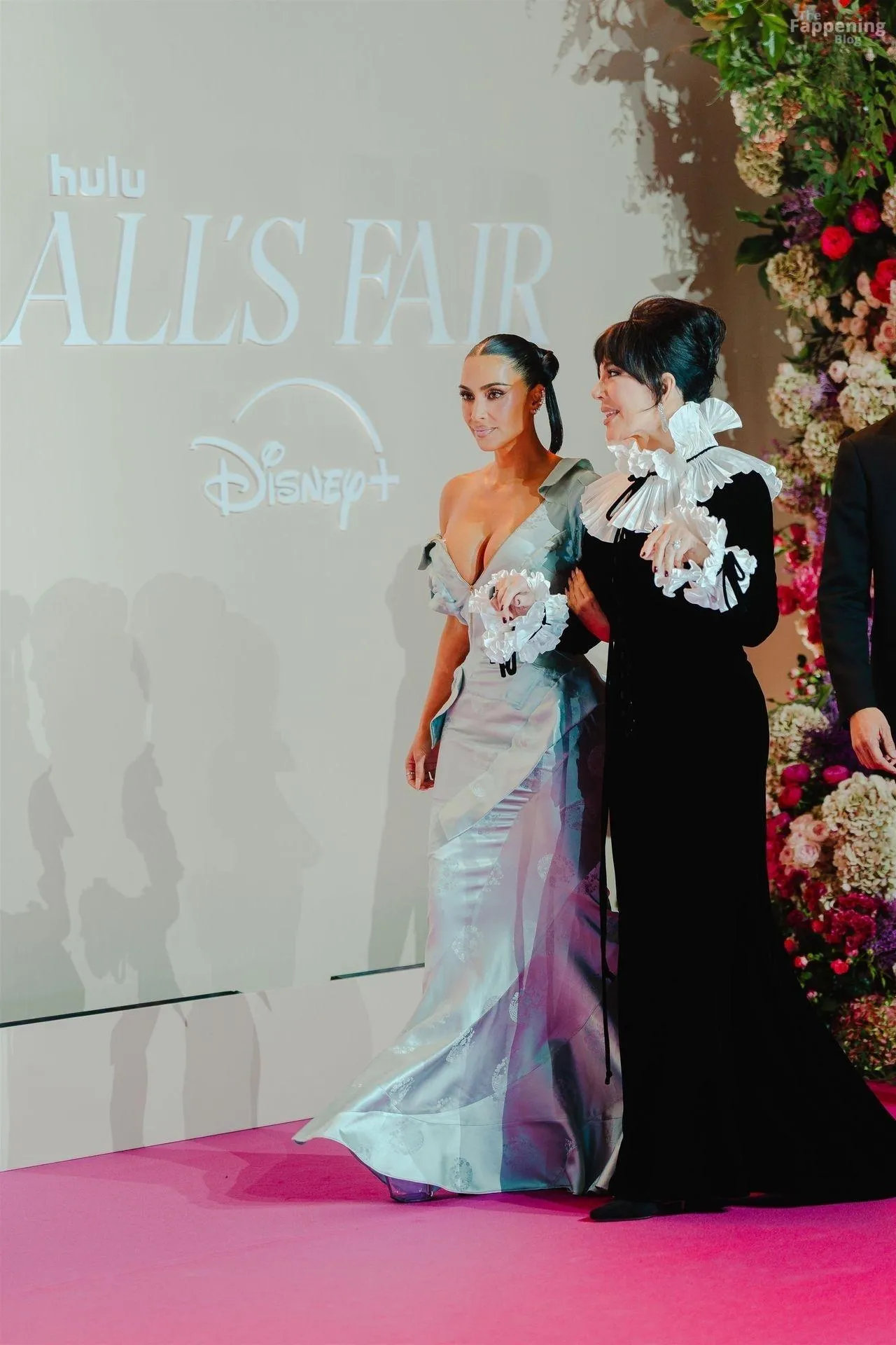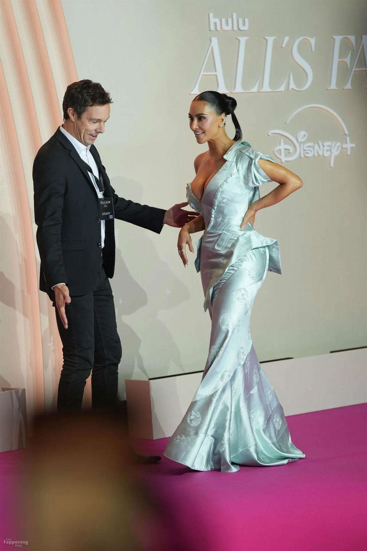 Kim Kardashian showed up at the “All’s Fair” Disney+ Premiere at Maison de La Chimie in Paris, rockin’ a vintage Dior gown from John Galliano’s spring 2000 collection that had her massive boobs nearly spillin’ out.