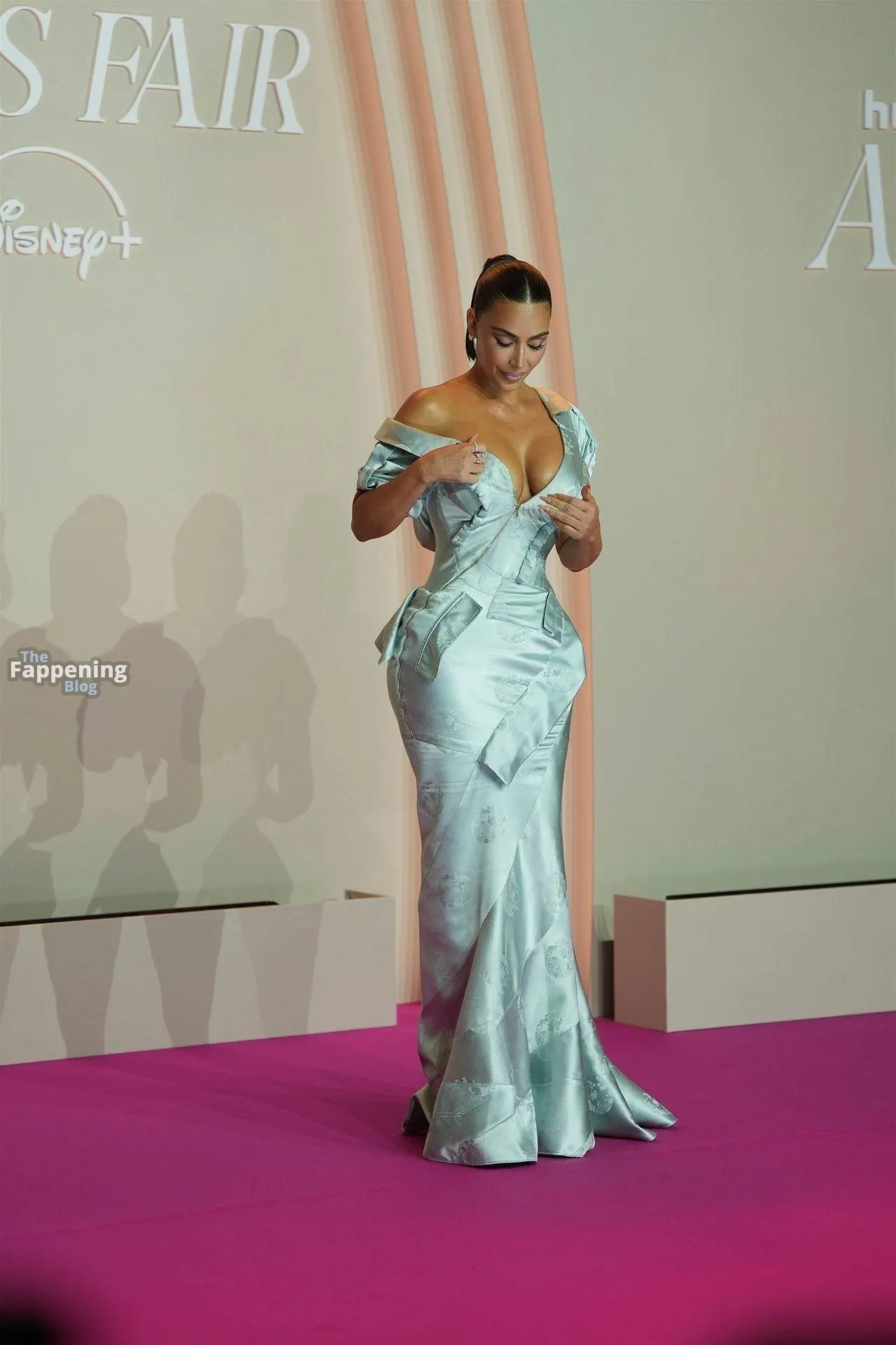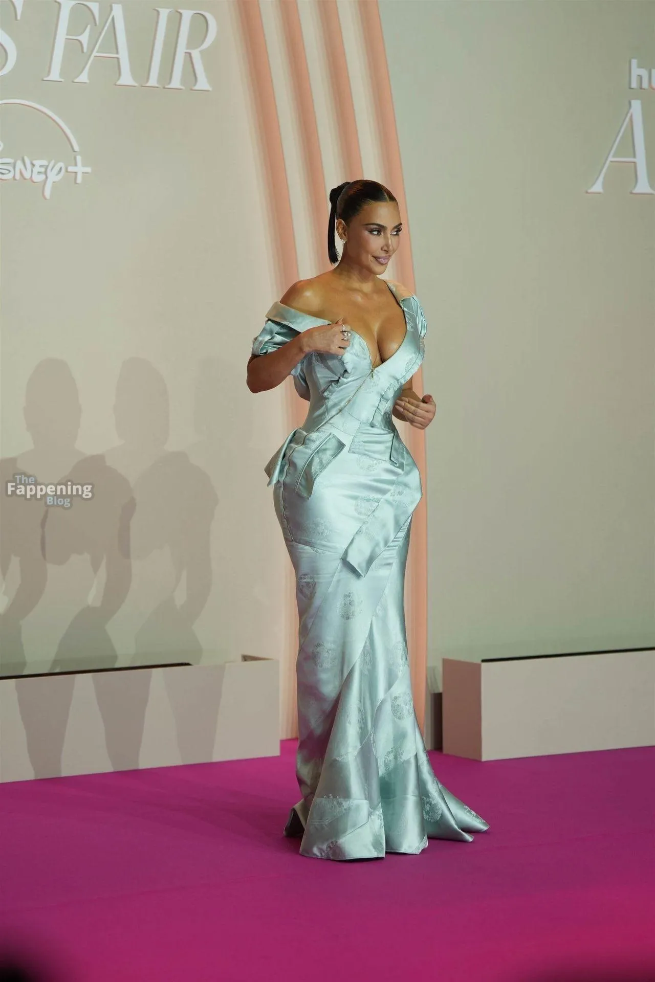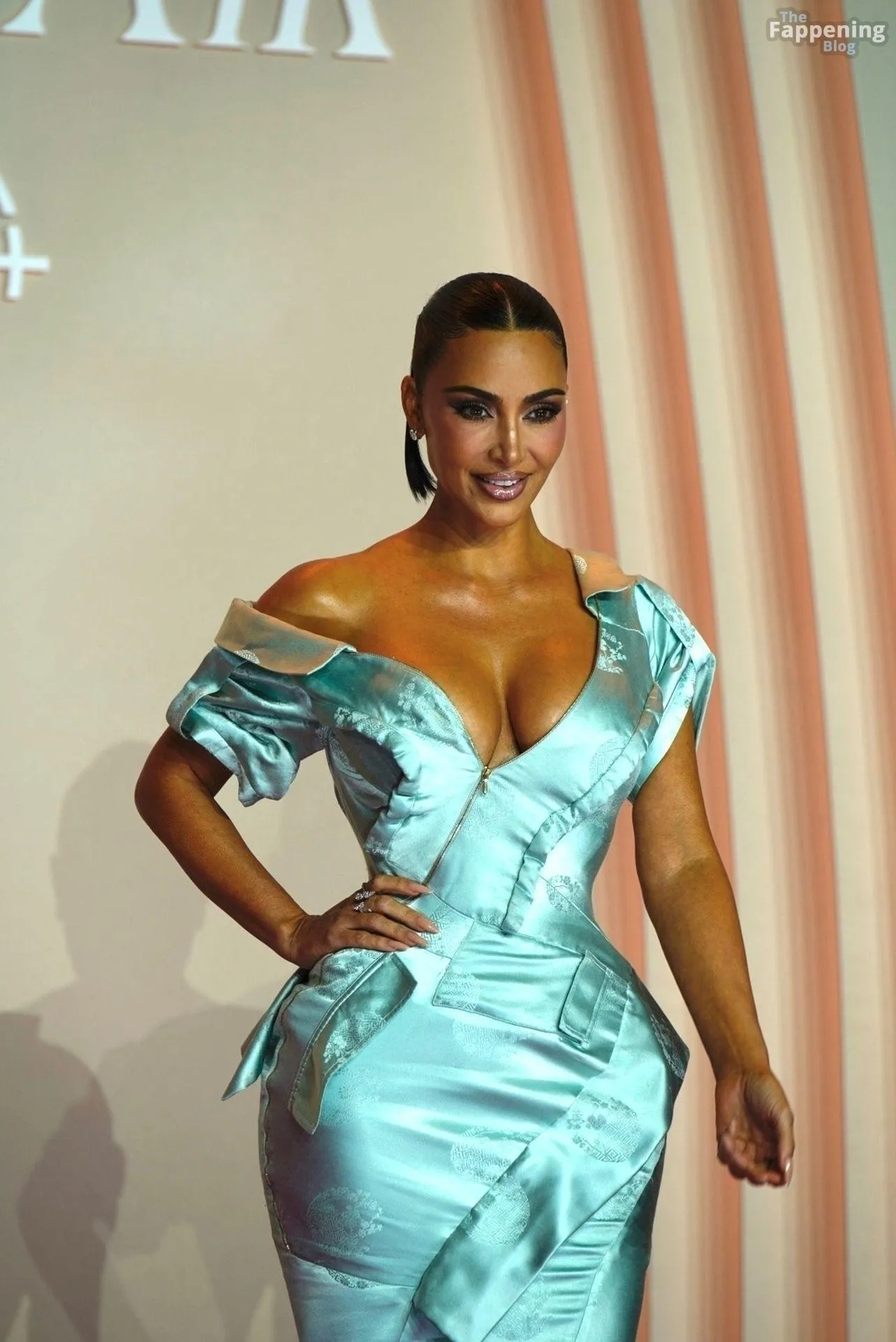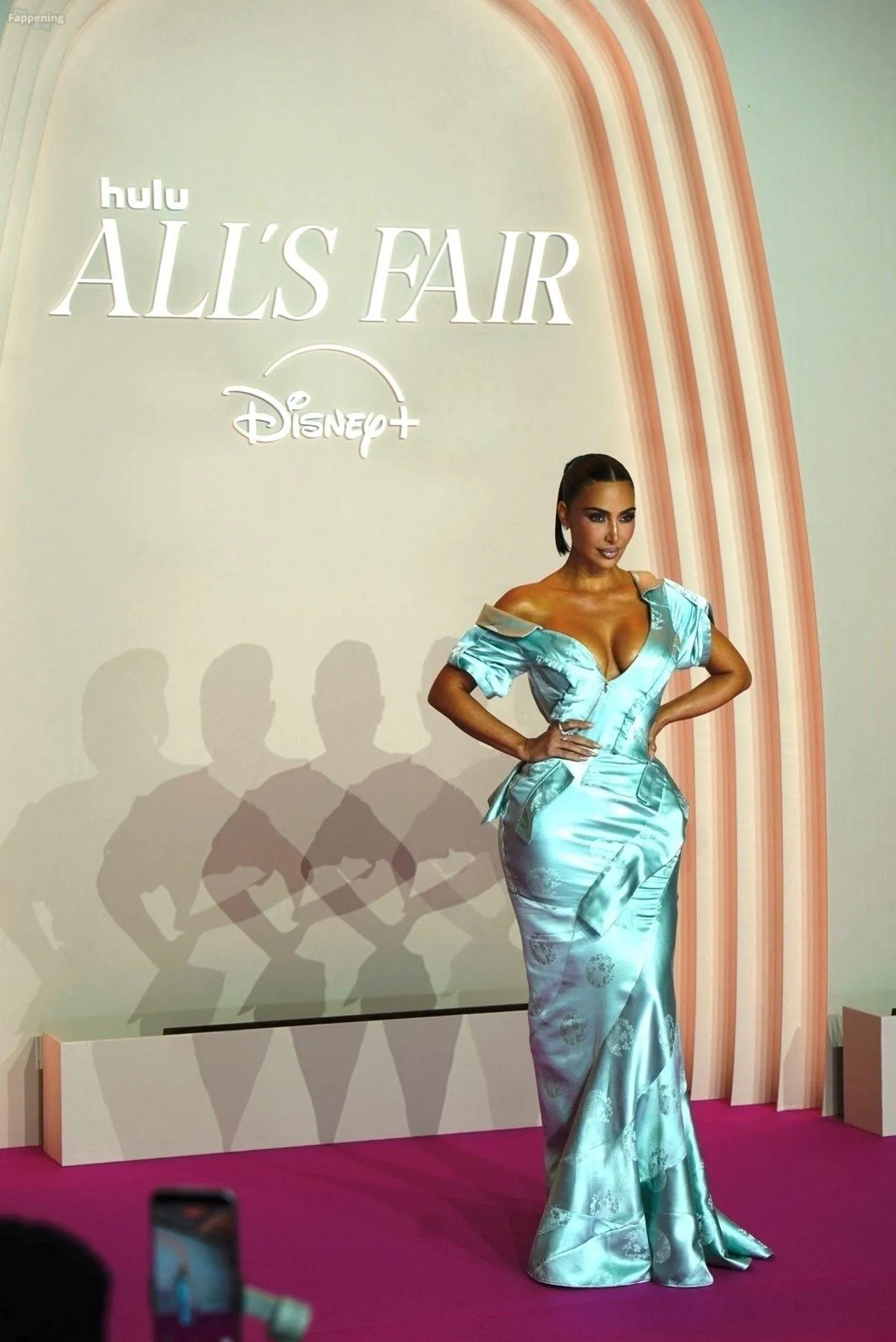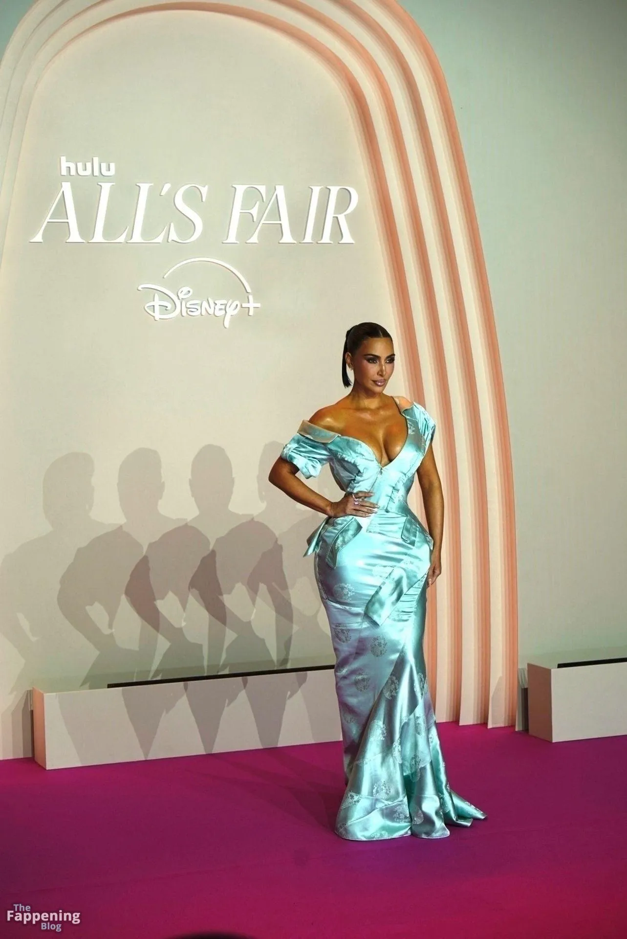 Kim Kardashian showed up at the “All’s Fair” Disney+ Premiere at Maison de La Chimie in Paris, rockin’ a vintage Dior gown from John Galliano’s spring 2000 collection that had her massive boobs nearly spillin’ out.
