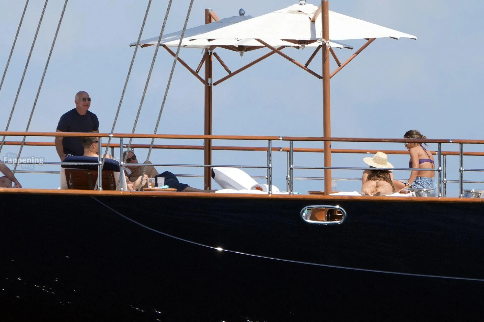 Jeff Bezos and Lauren Sanchez enjoy some intimate moments on the super yacht Koru moored in the South of France. The Amazon founder is enjoying the luxury of his 500 million dollar yacht with his wife-to-be and some friends.