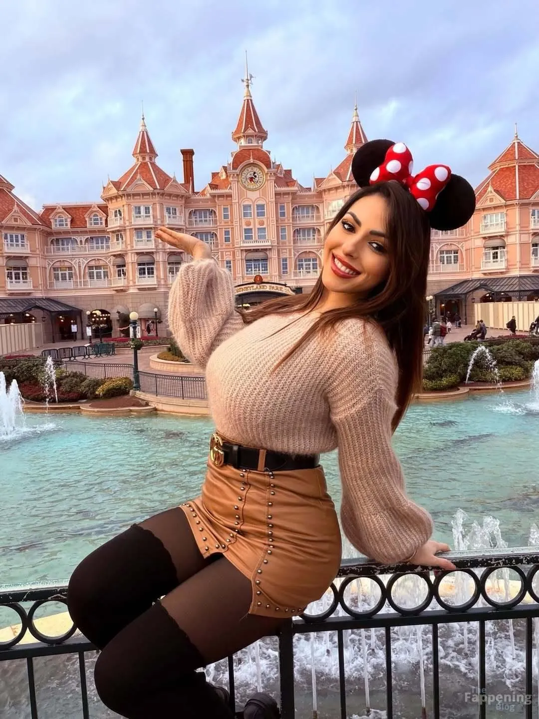 Maddalena Cabizzosu stuns at Disneyland Paris in a sweater, mini skirt and Minnie ears. Check out her beautiful figure in the social media photos.