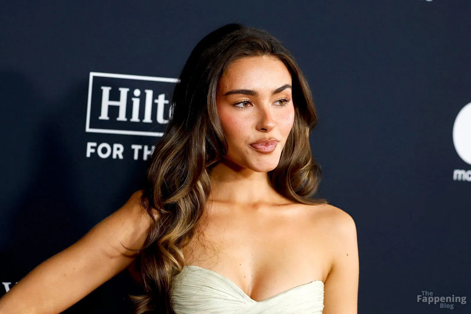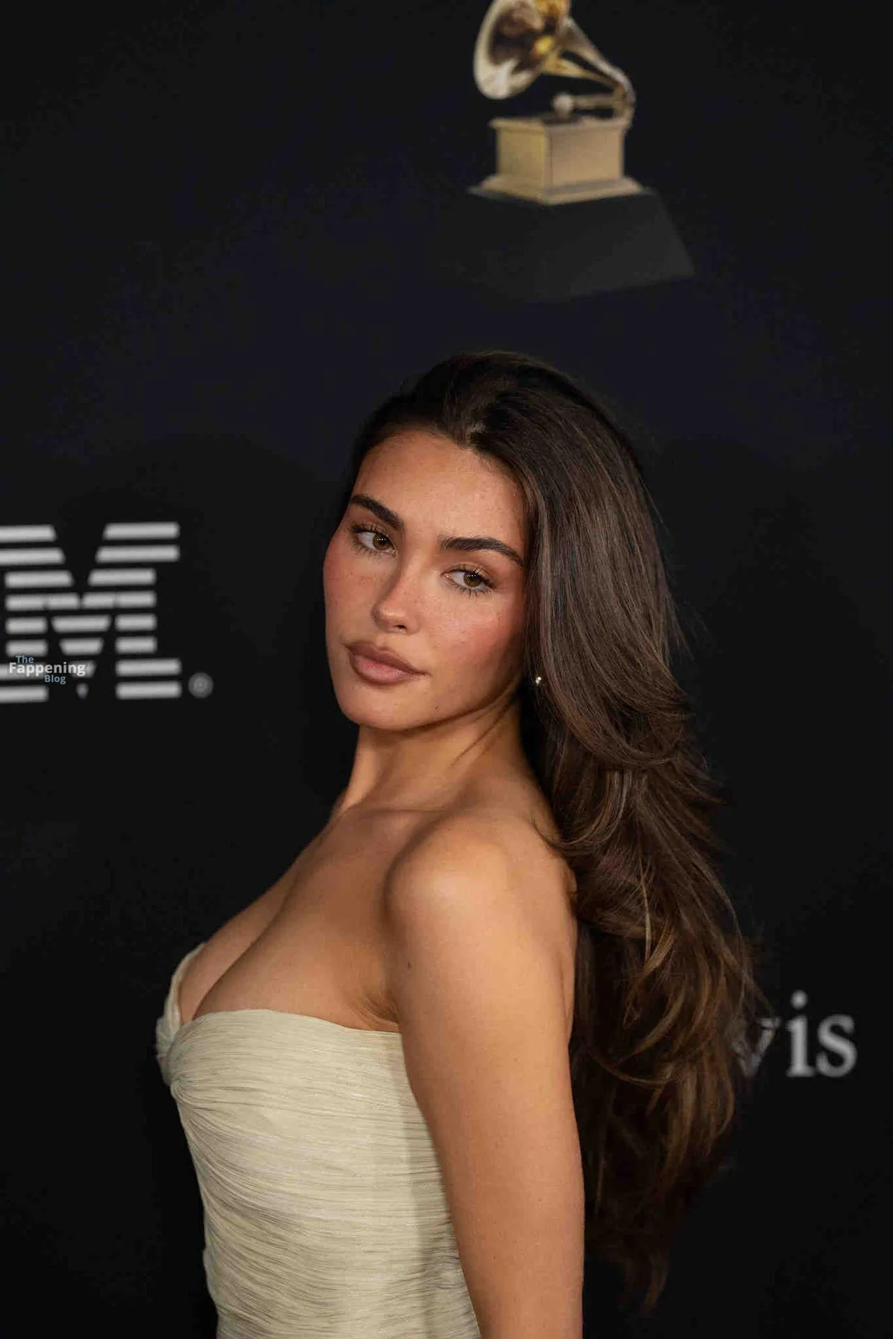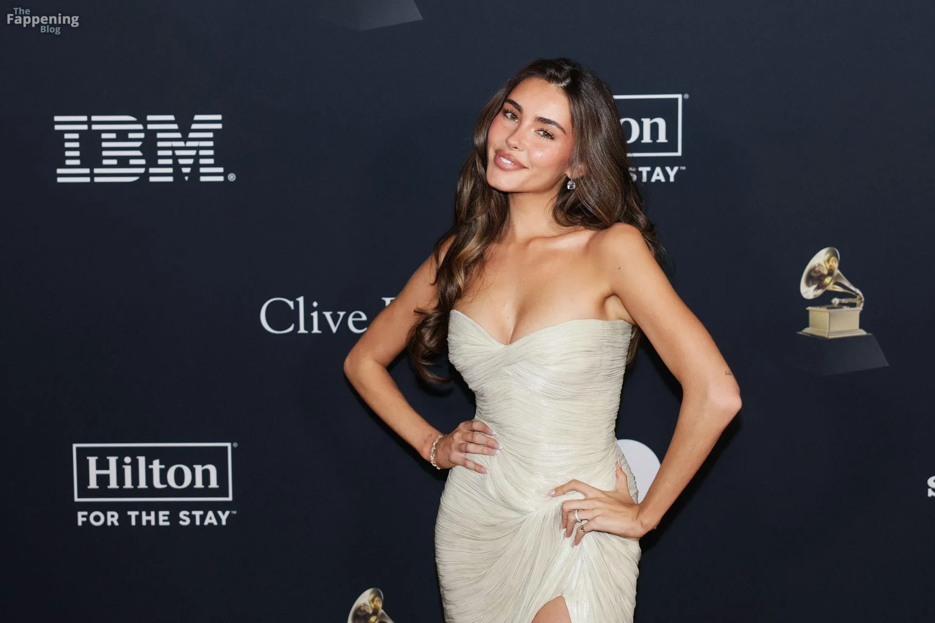 Madison Beer shows off her sexy figure, cleavage, and legs in a tight silk dress at the Pre-Grammy Gala on the eve of the 68th Annual Grammy Awards in Los Angeles.