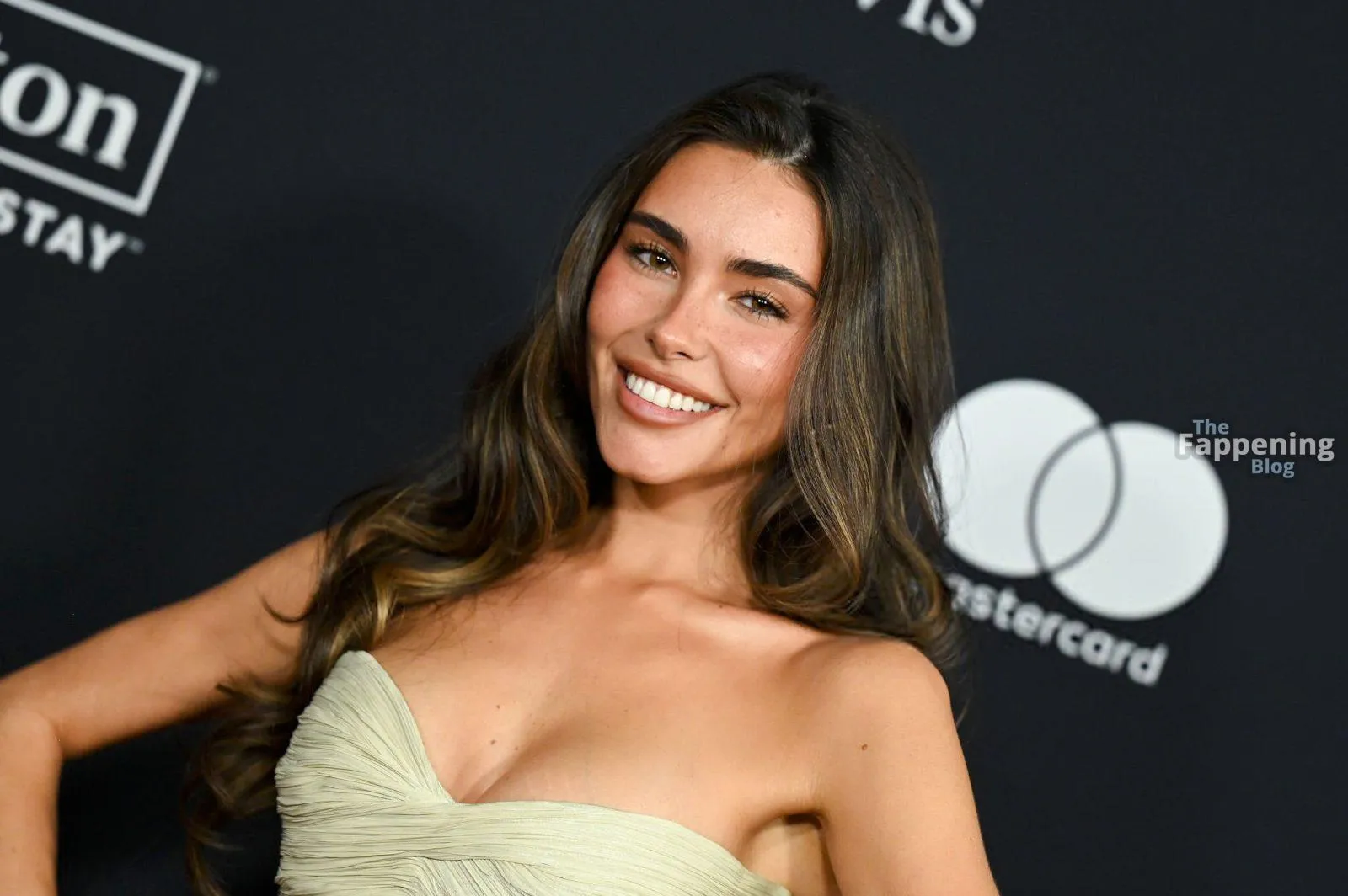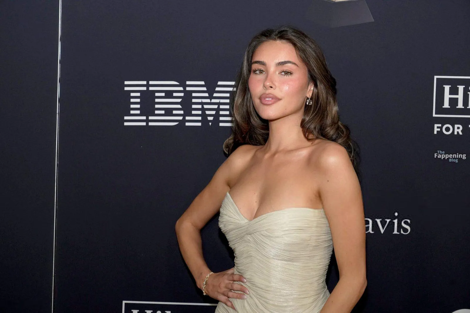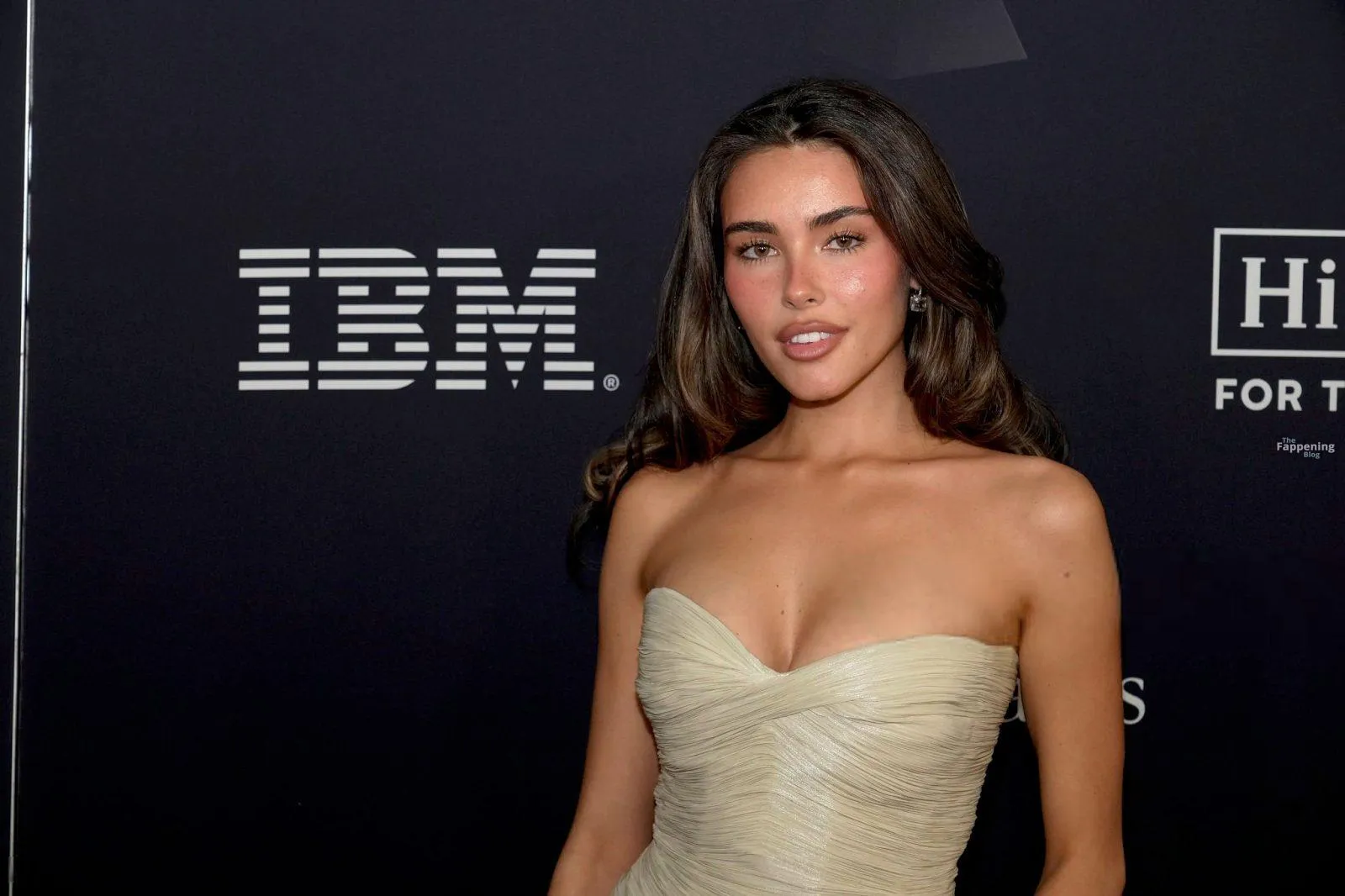 Madison Beer shows off her sexy figure, cleavage, and legs in a tight silk dress at the Pre-Grammy Gala on the eve of the 68th Annual Grammy Awards in Los Angeles.