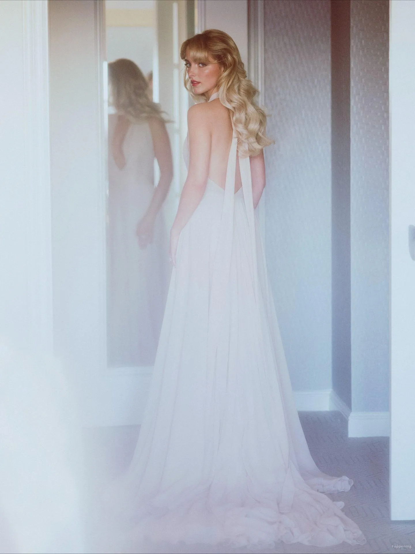 The “Regretting You” star Mckenna Grace poses in a daring deep-plunge gown for a seductive hotel shoot, flashin’ sexy tits and legs.