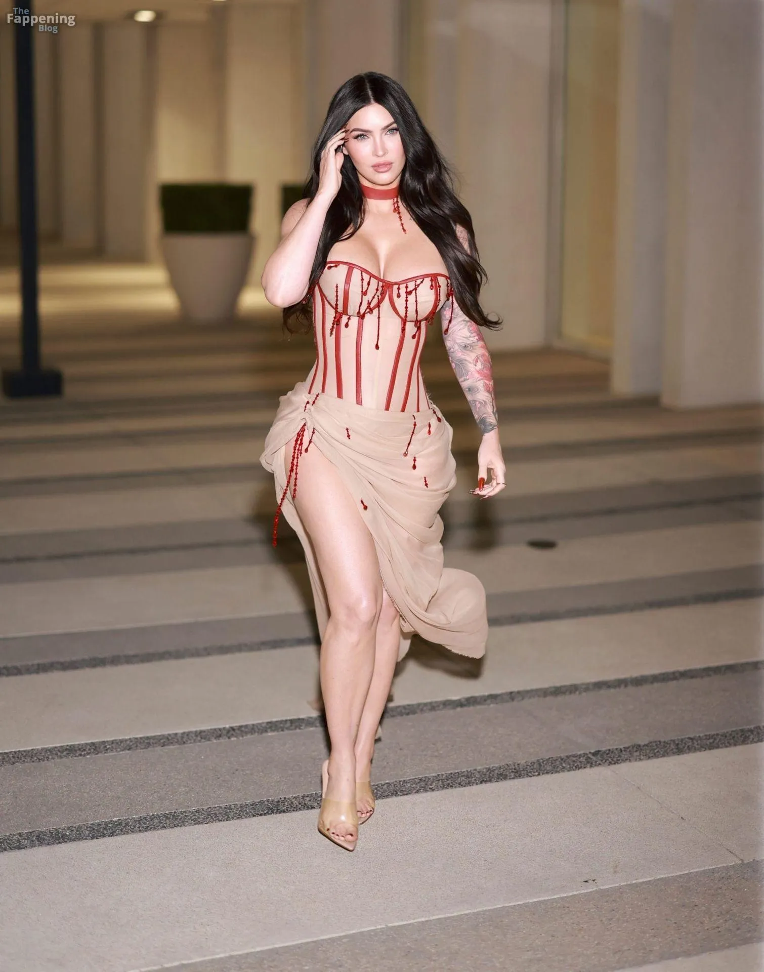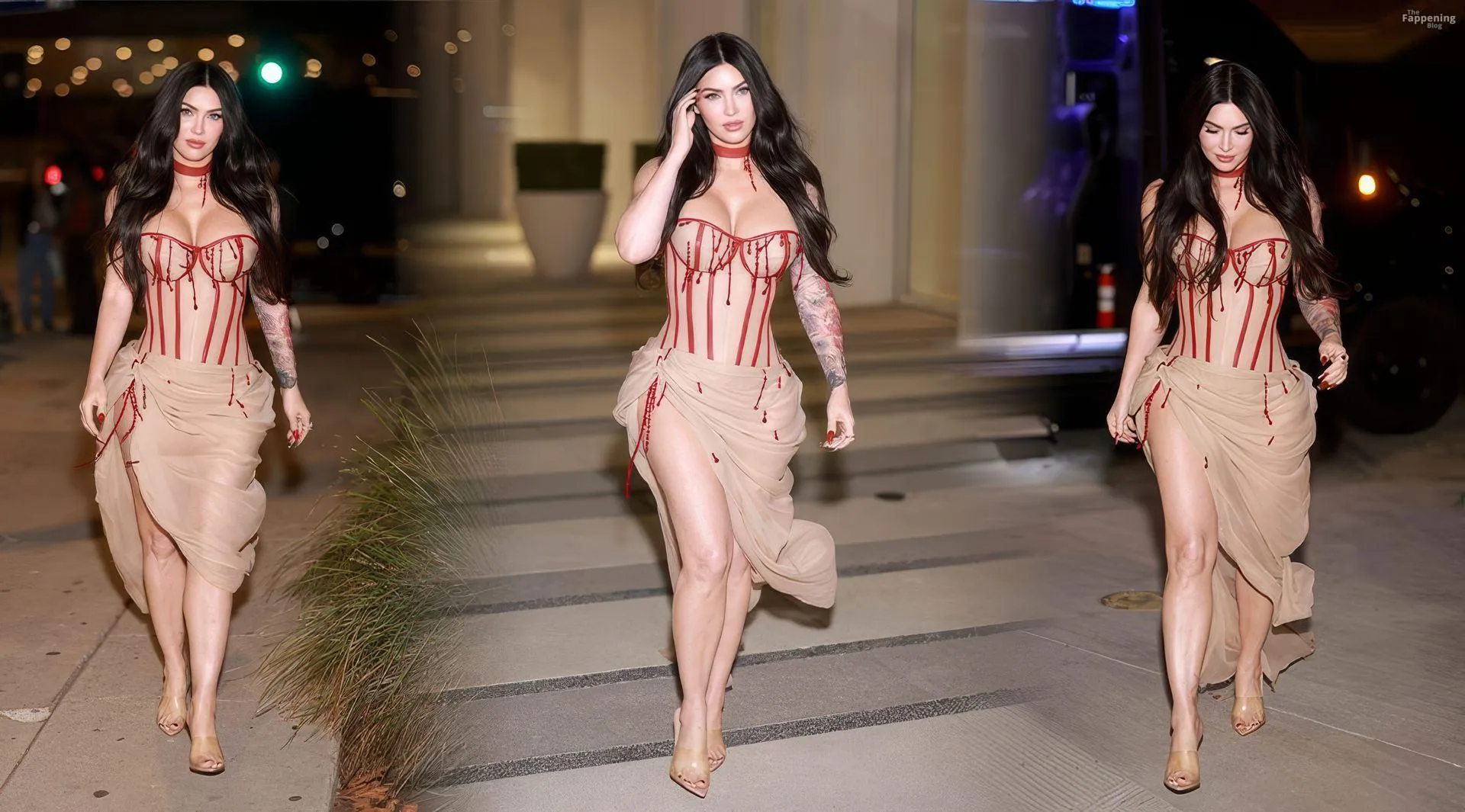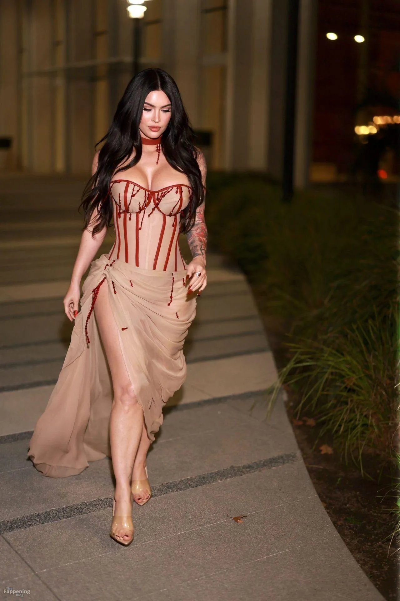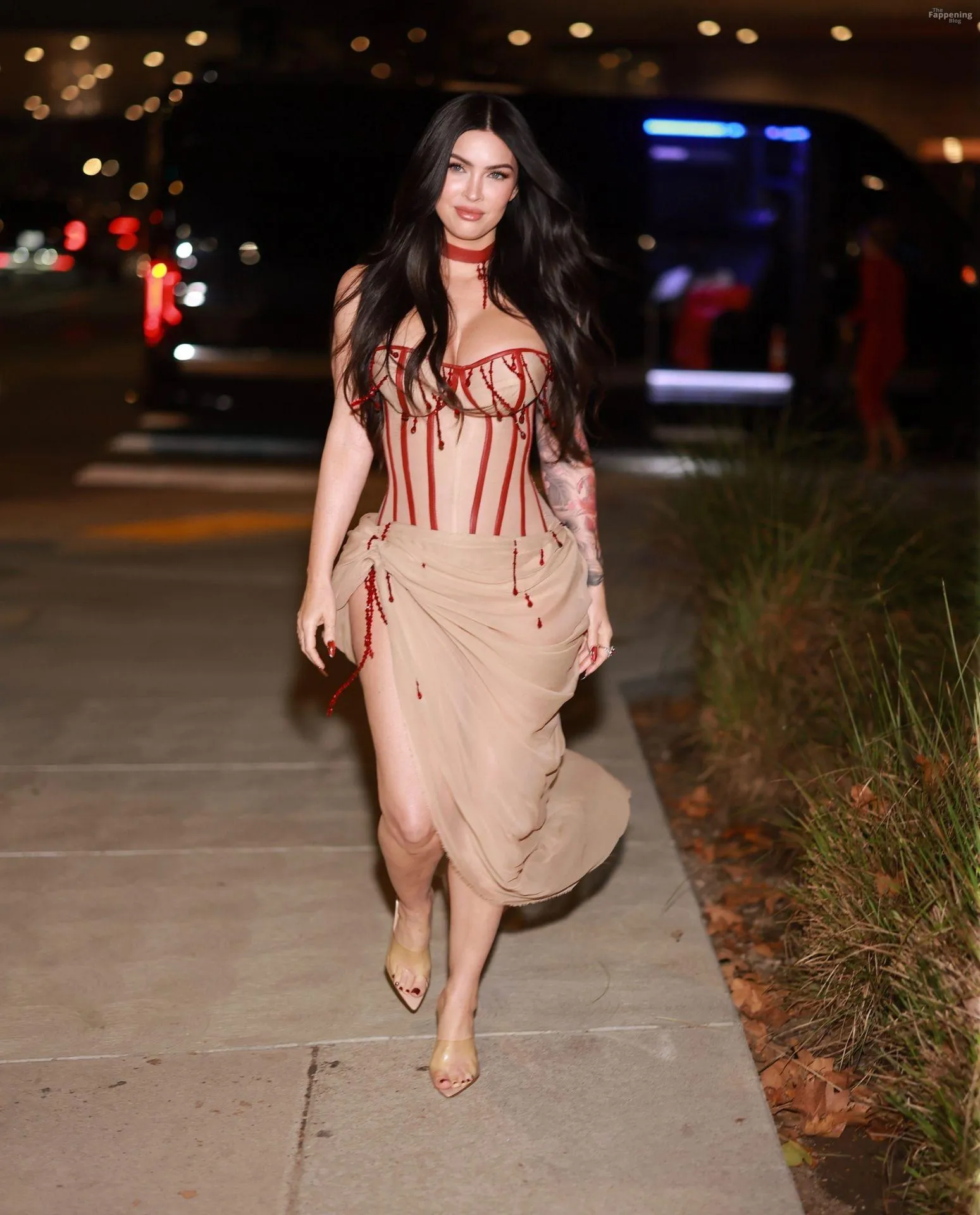 Megan Fox showed up at the “Jennifer’s Body” screening in LA, rockin’ a sheer corset and high-slit skirt.