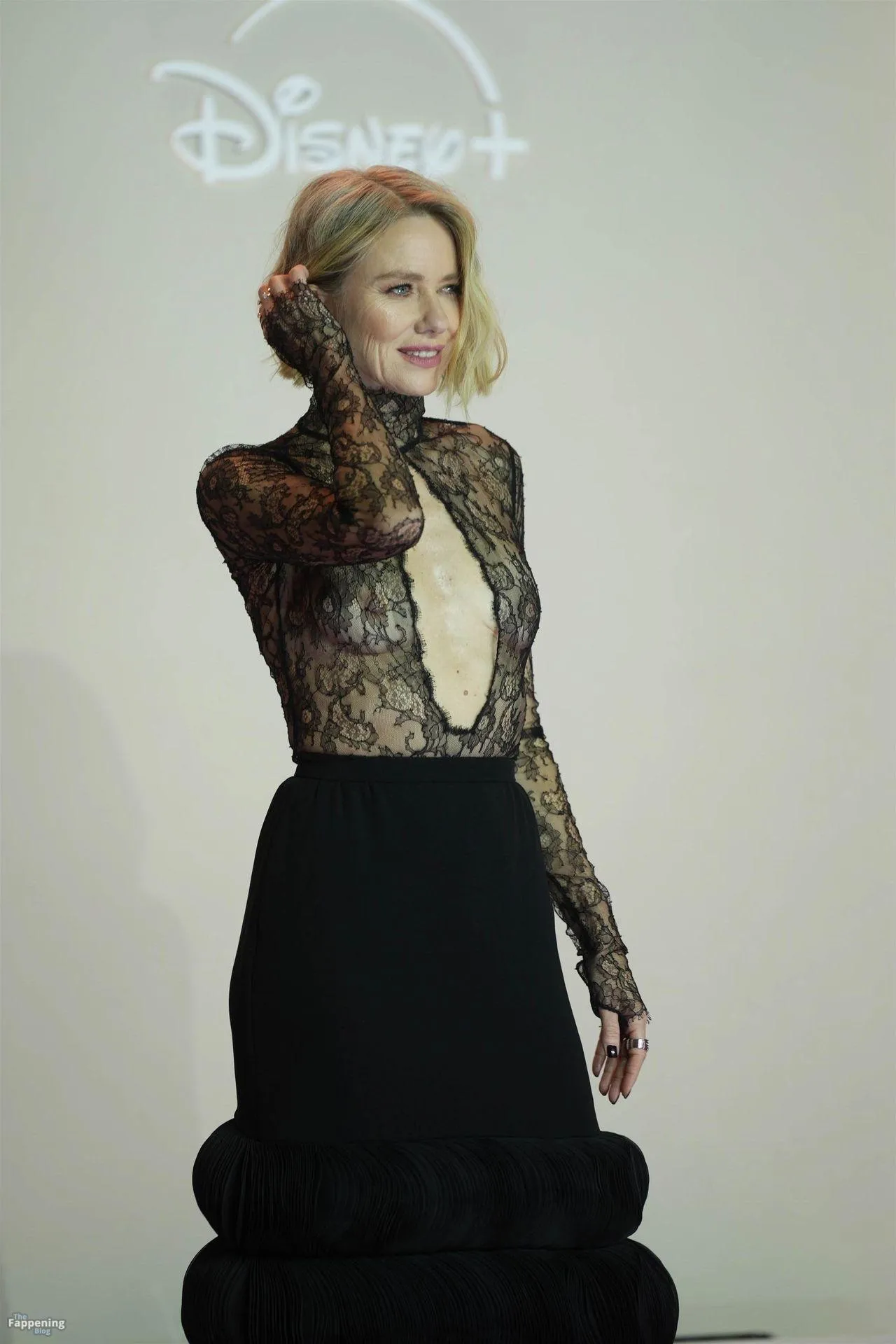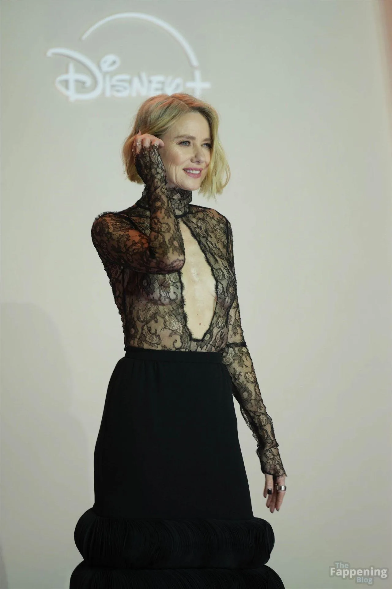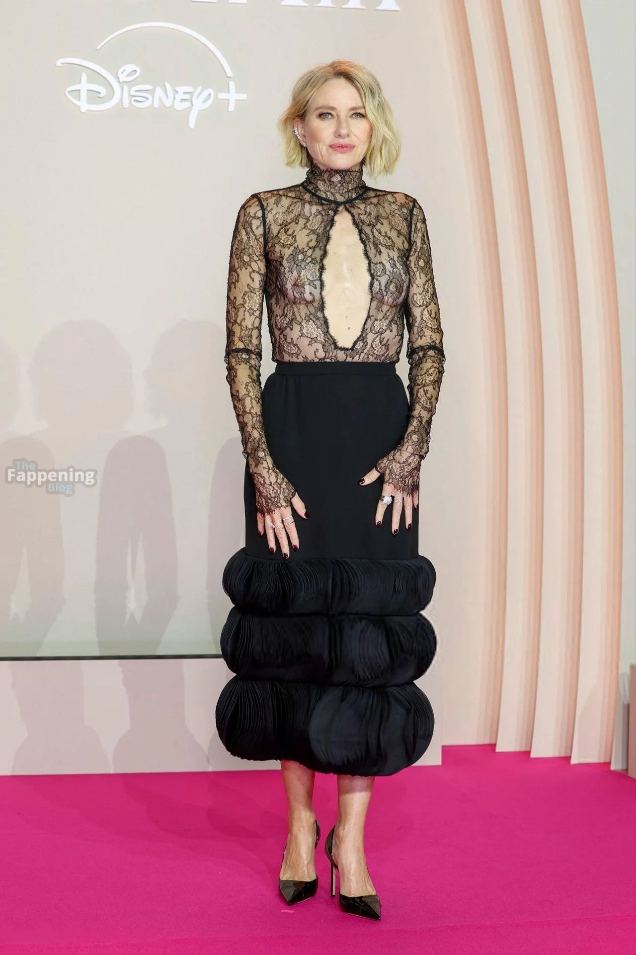 British actress Naomi Watts was at the “All’s Fair” premiere in Paris, rockin’ a sheer black lace top with a plungin’ neckline that showed off her tits. She paired it with a big textured skirt and a structured blazer draped over her shoulders. Very beautiful, sexy, and age ain’t slowin’ her down one bit.
