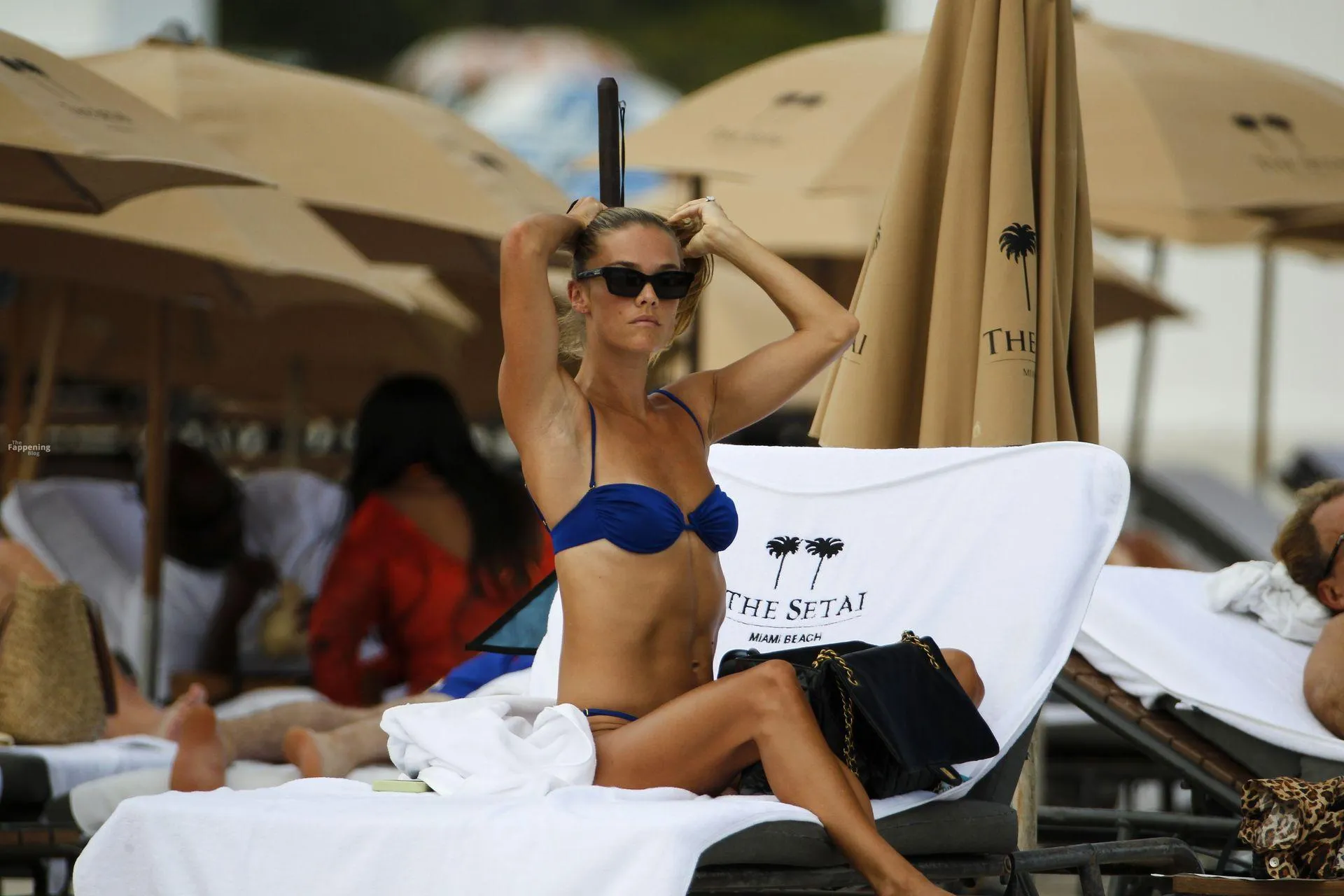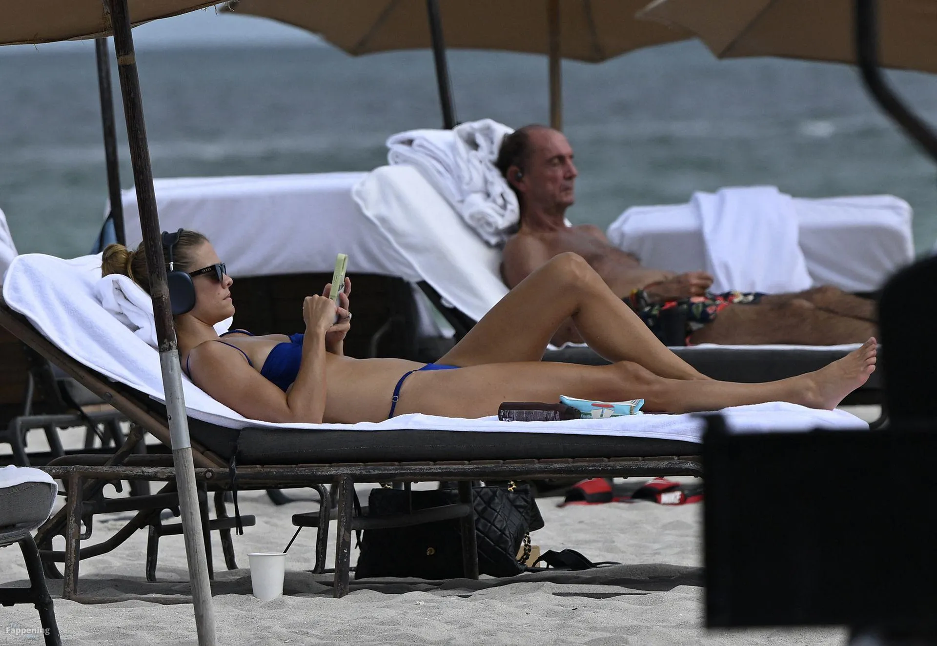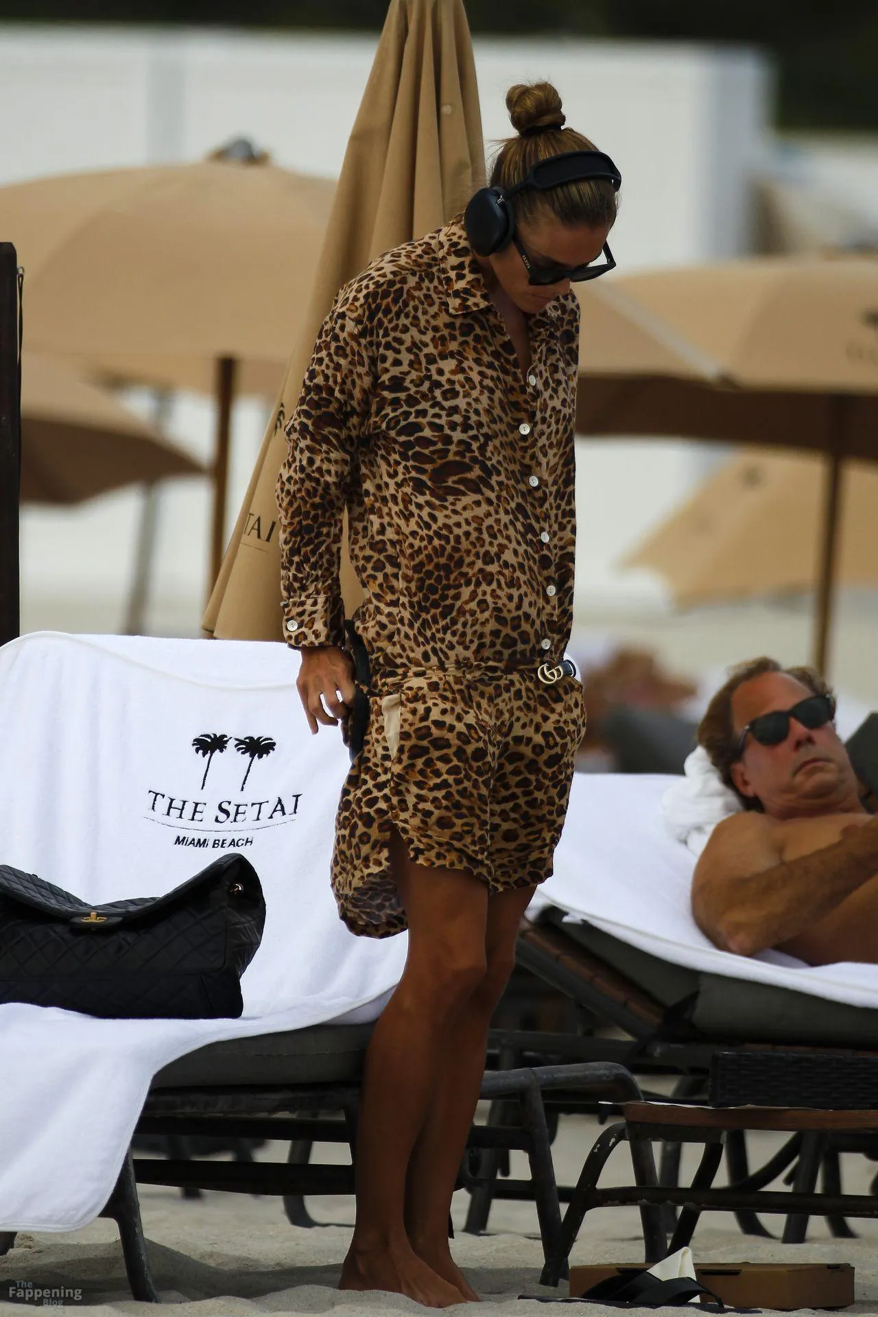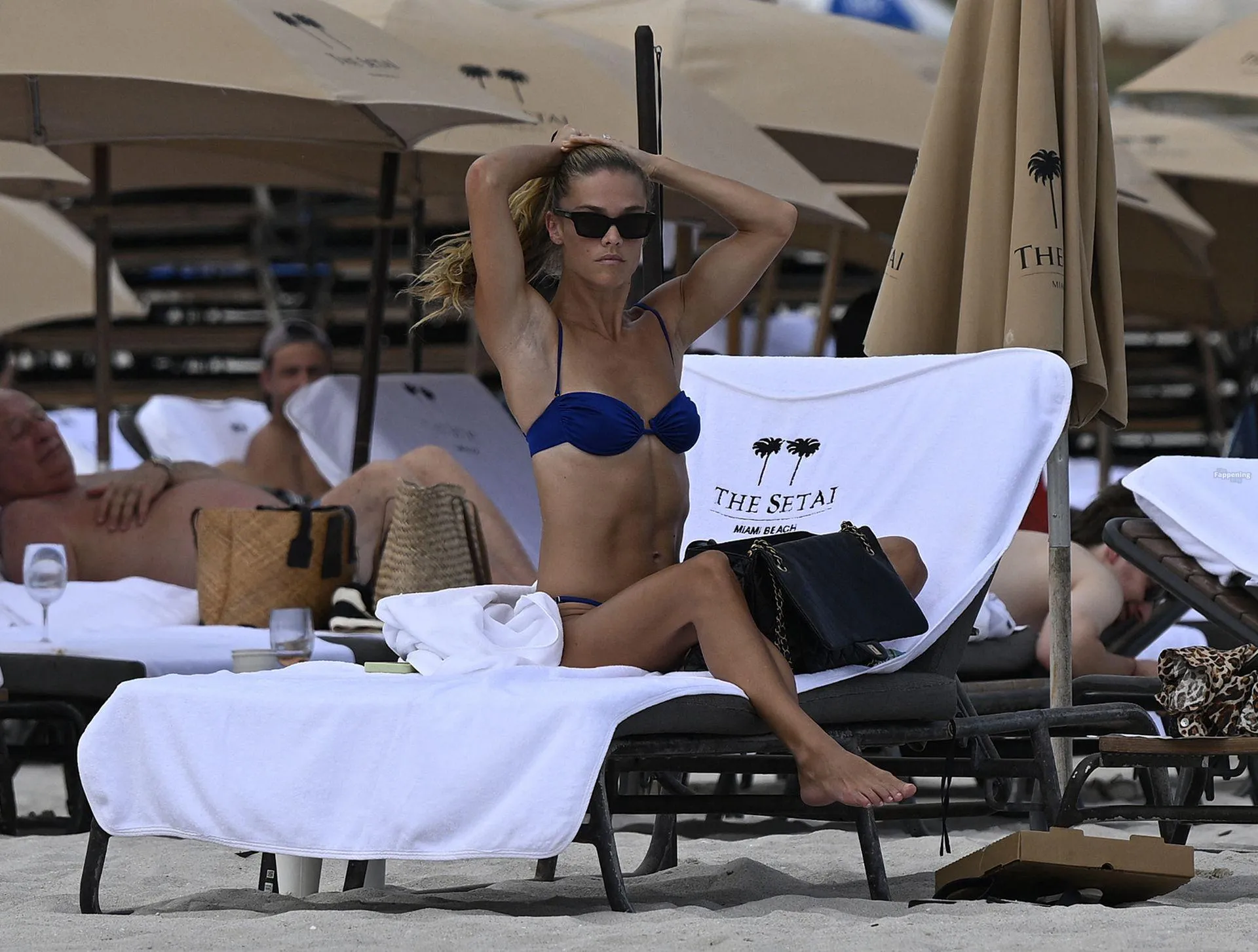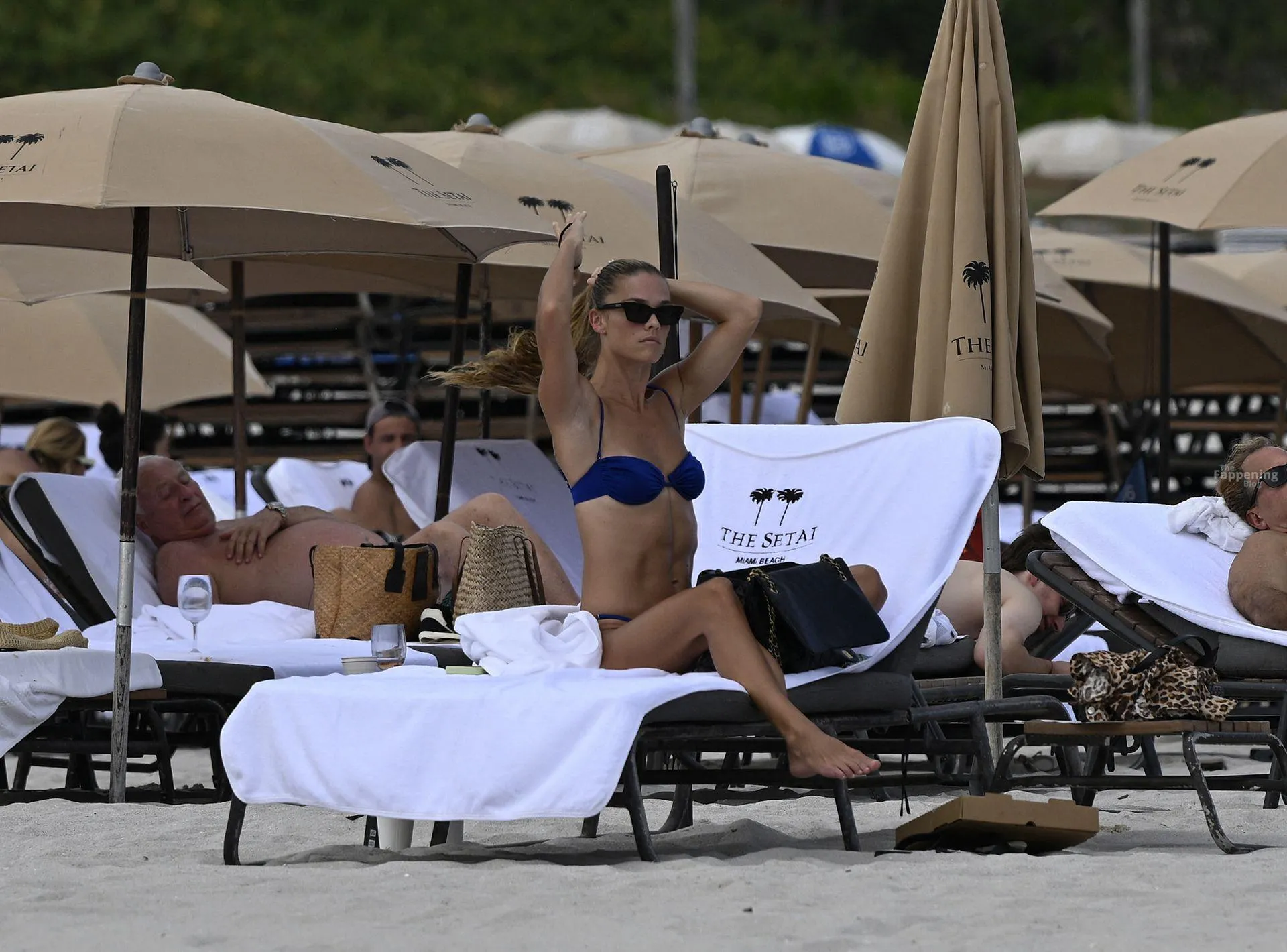 Danish model Nina Agdal was spotted soakin’ up the sun on Miami Beach, rockin’ a blue bikini before changing into a chic leopard print outfit.