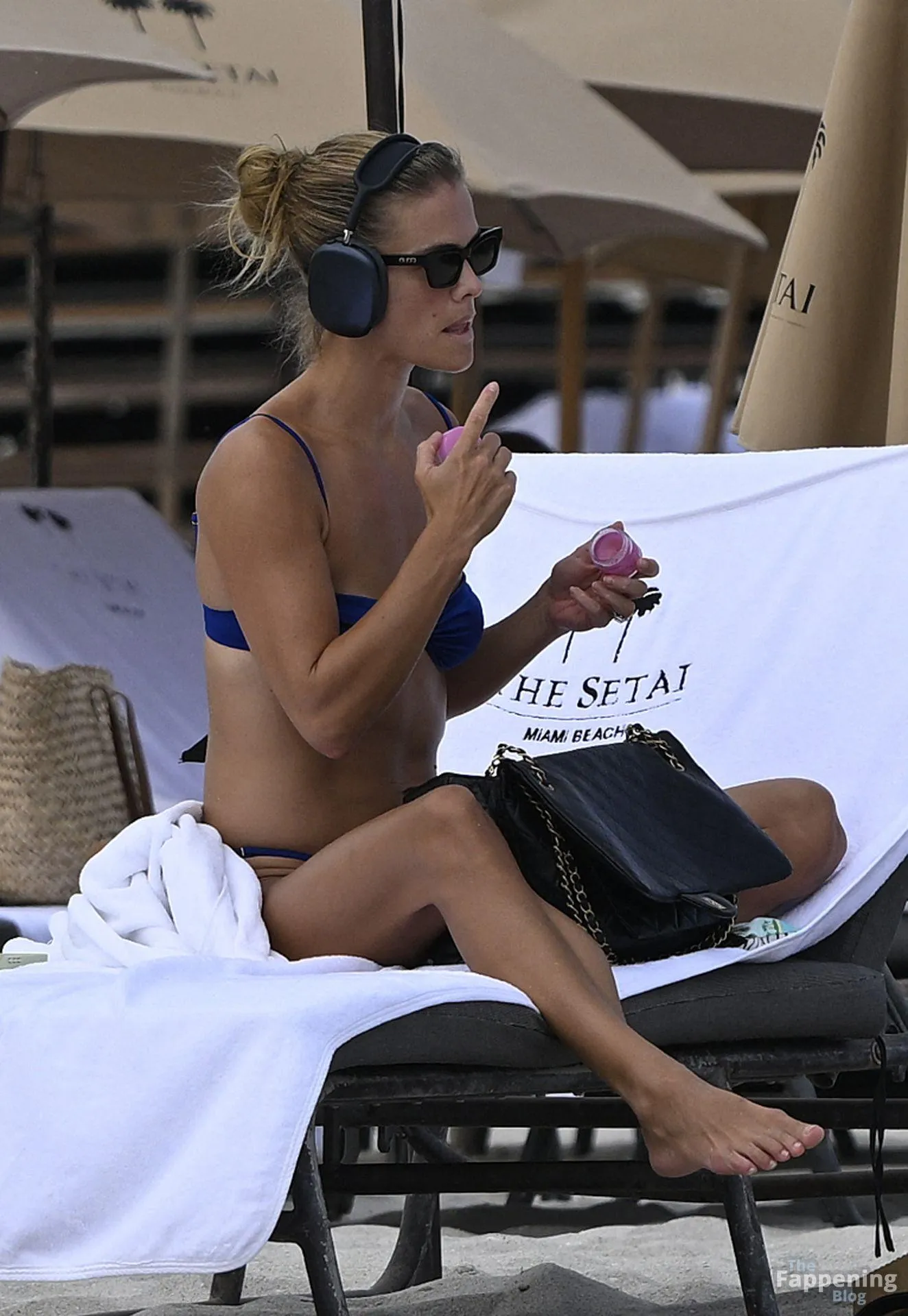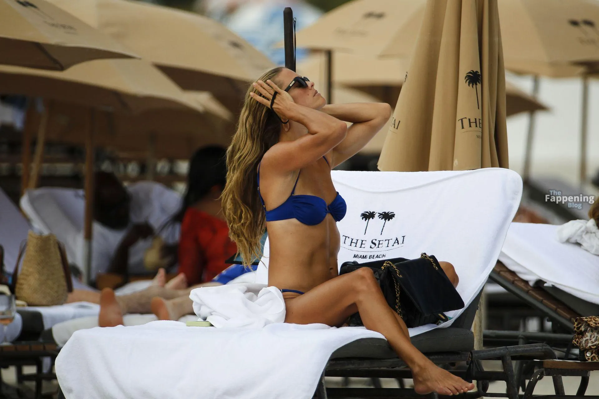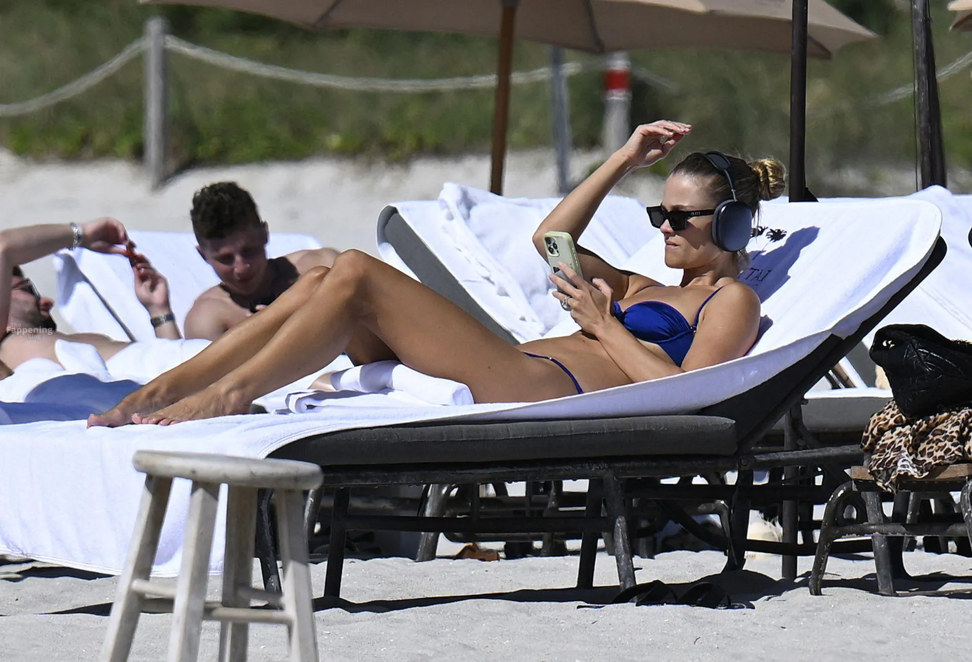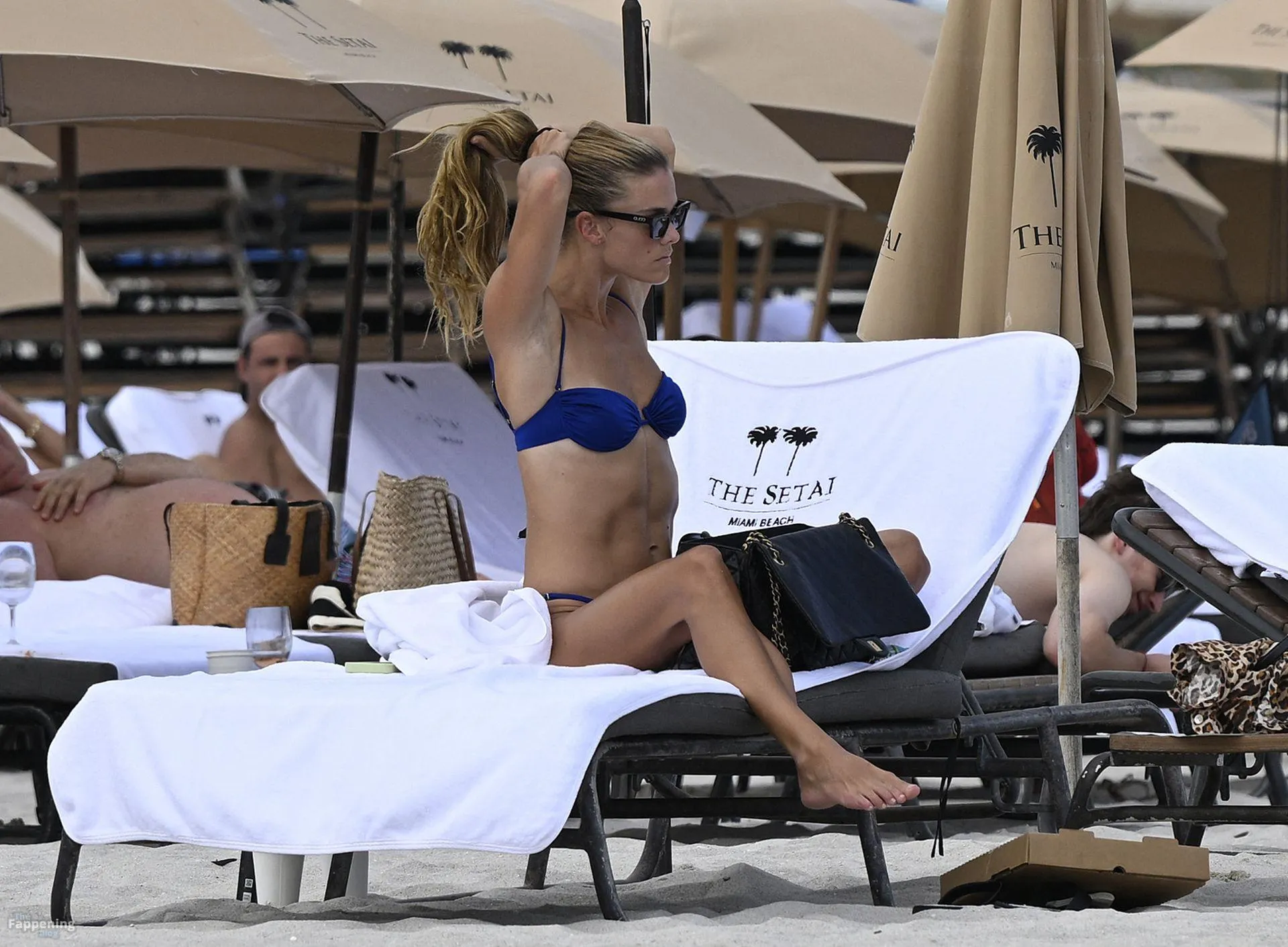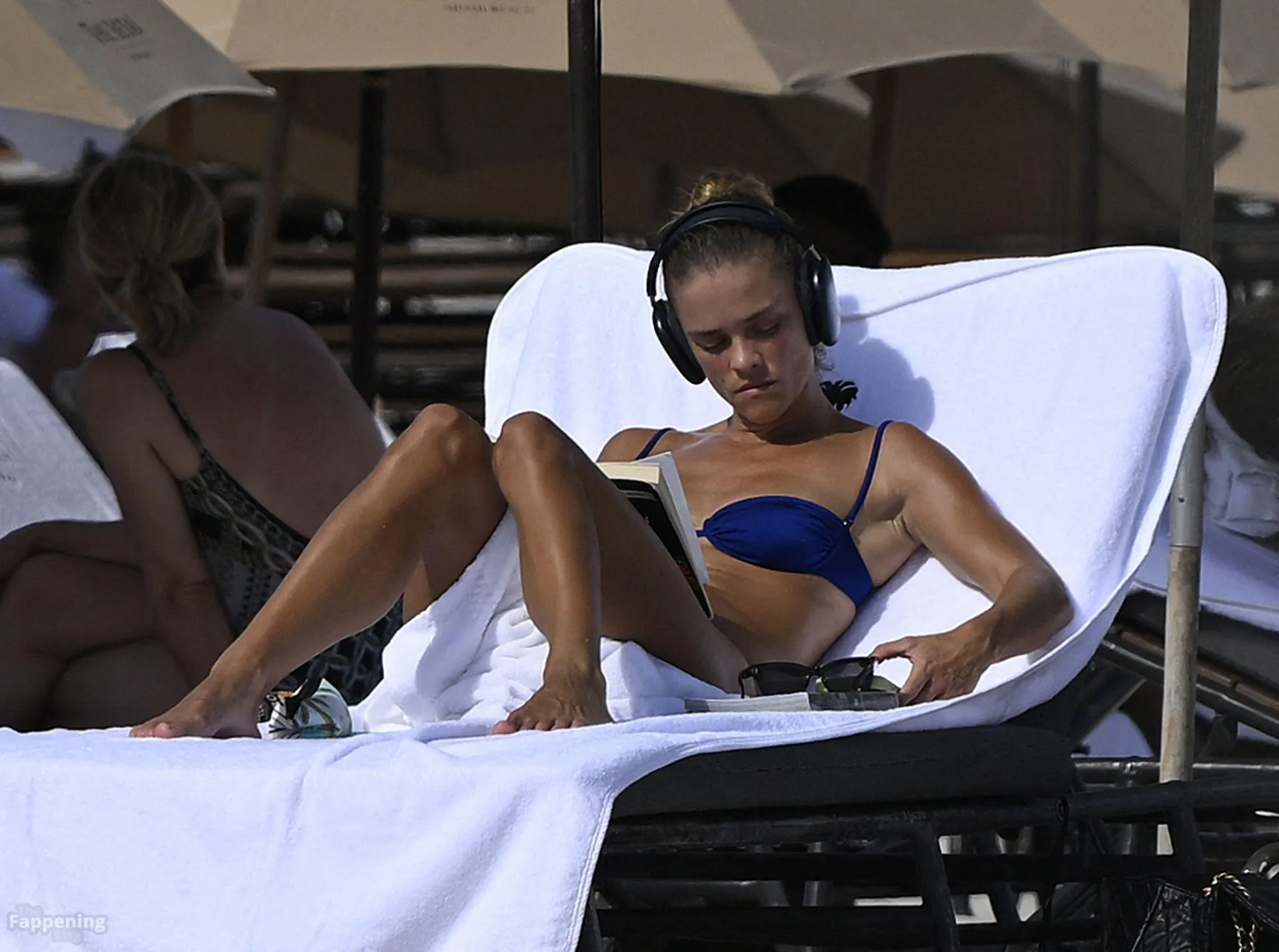 Danish model Nina Agdal was spotted soakin’ up the sun on Miami Beach, rockin’ a blue bikini before changing into a chic leopard print outfit.