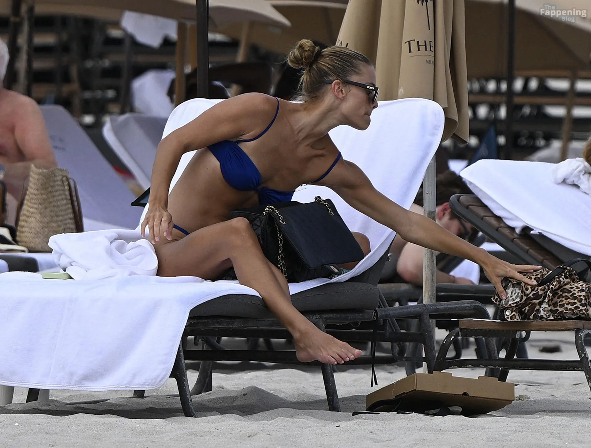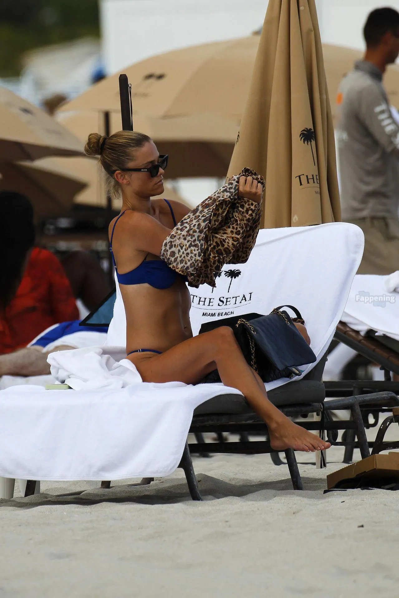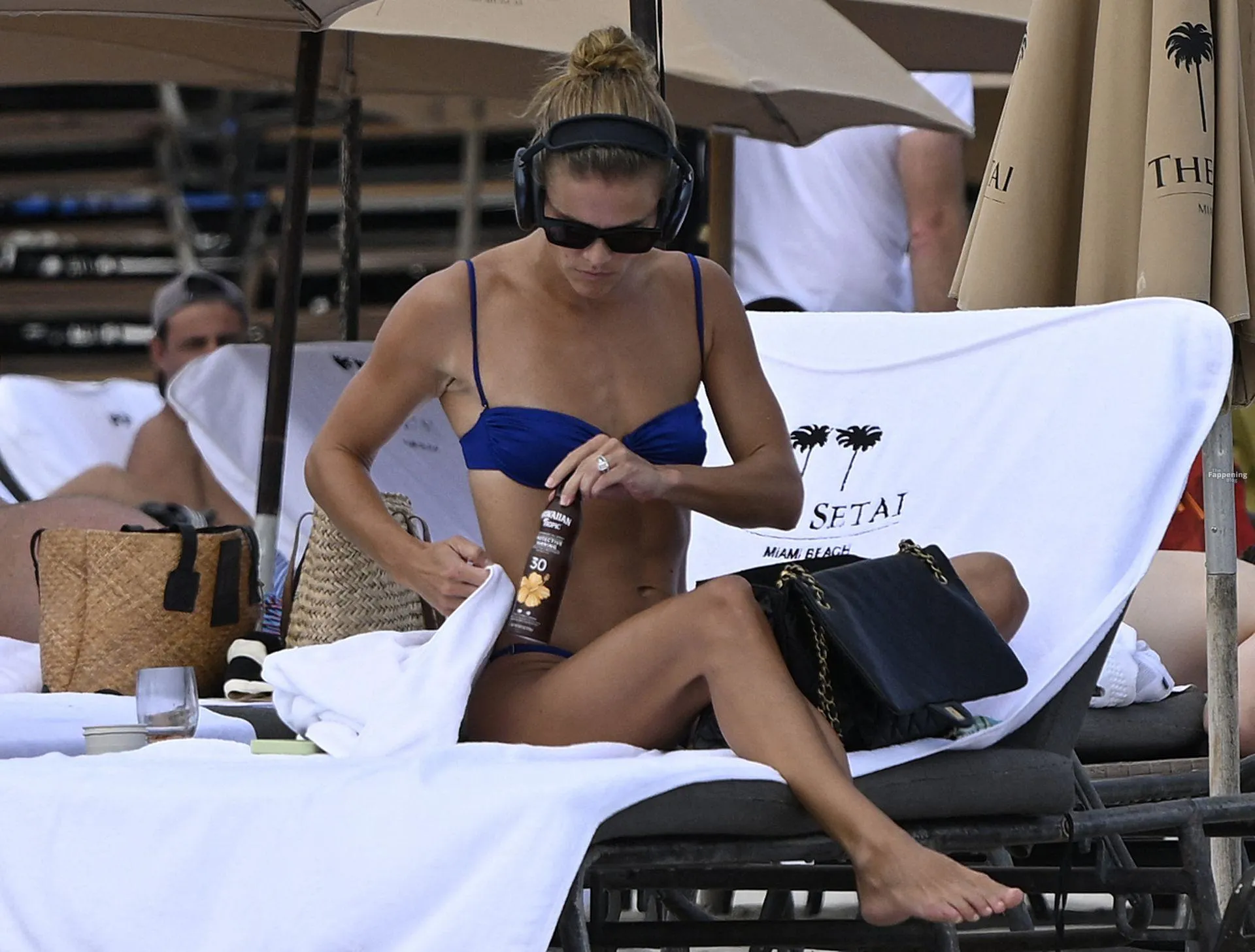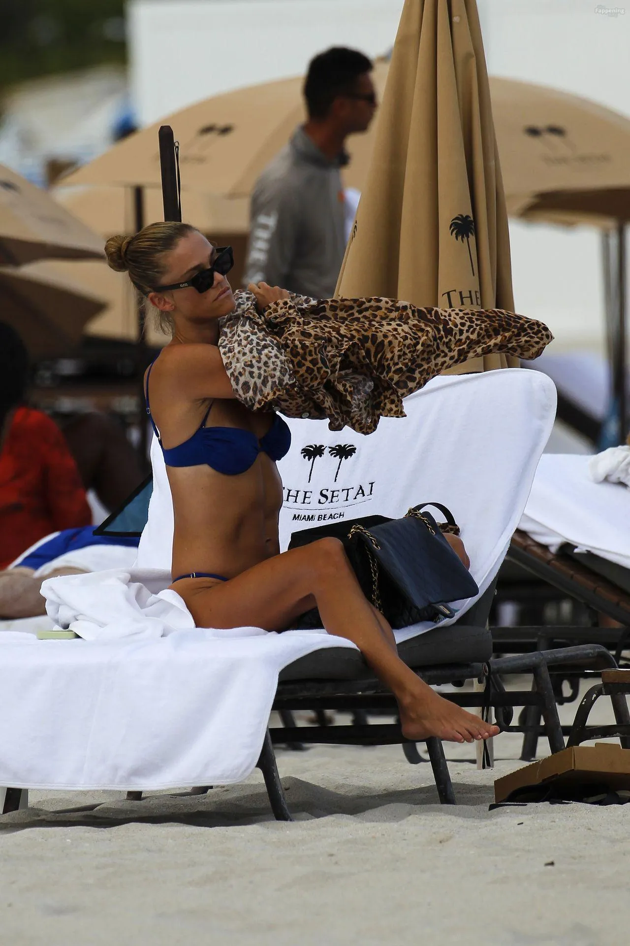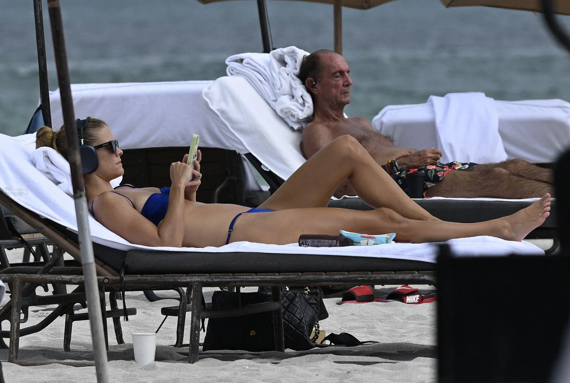 Danish model Nina Agdal was spotted soakin’ up the sun on Miami Beach, rockin’ a blue bikini before changing into a chic leopard print outfit.