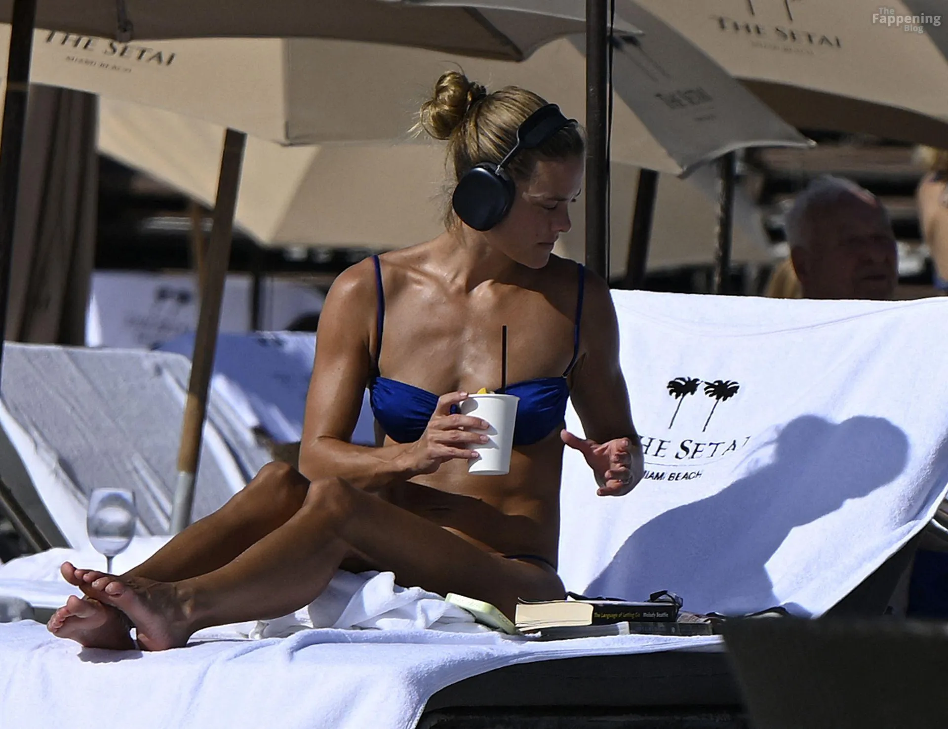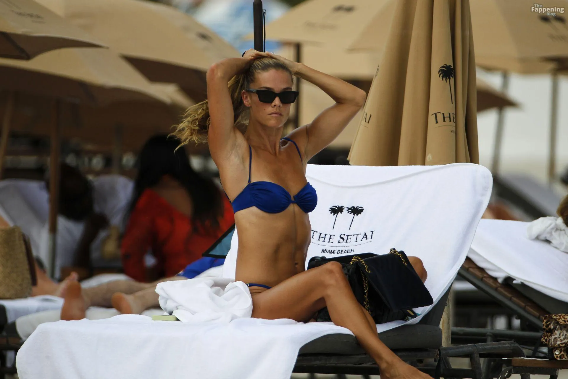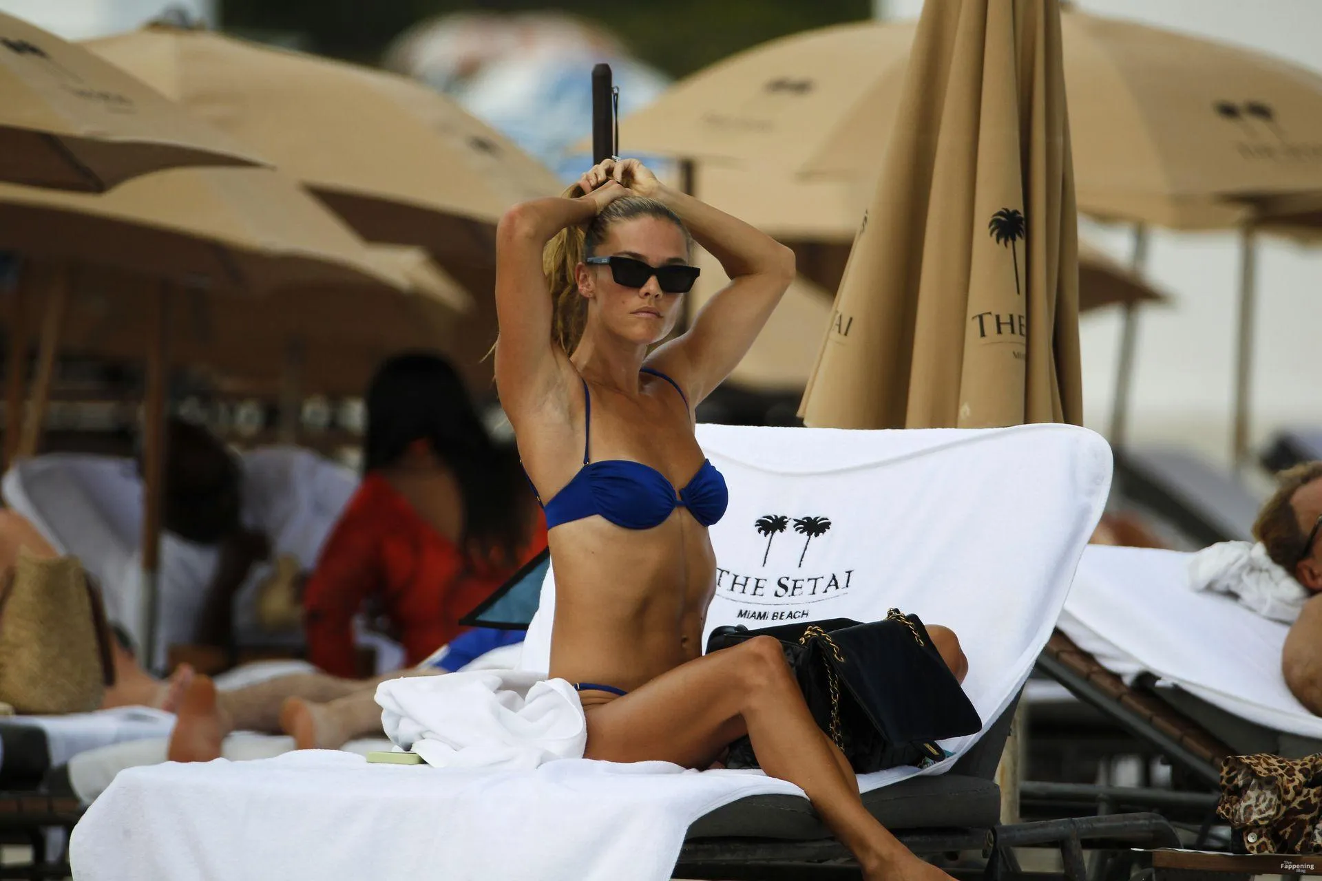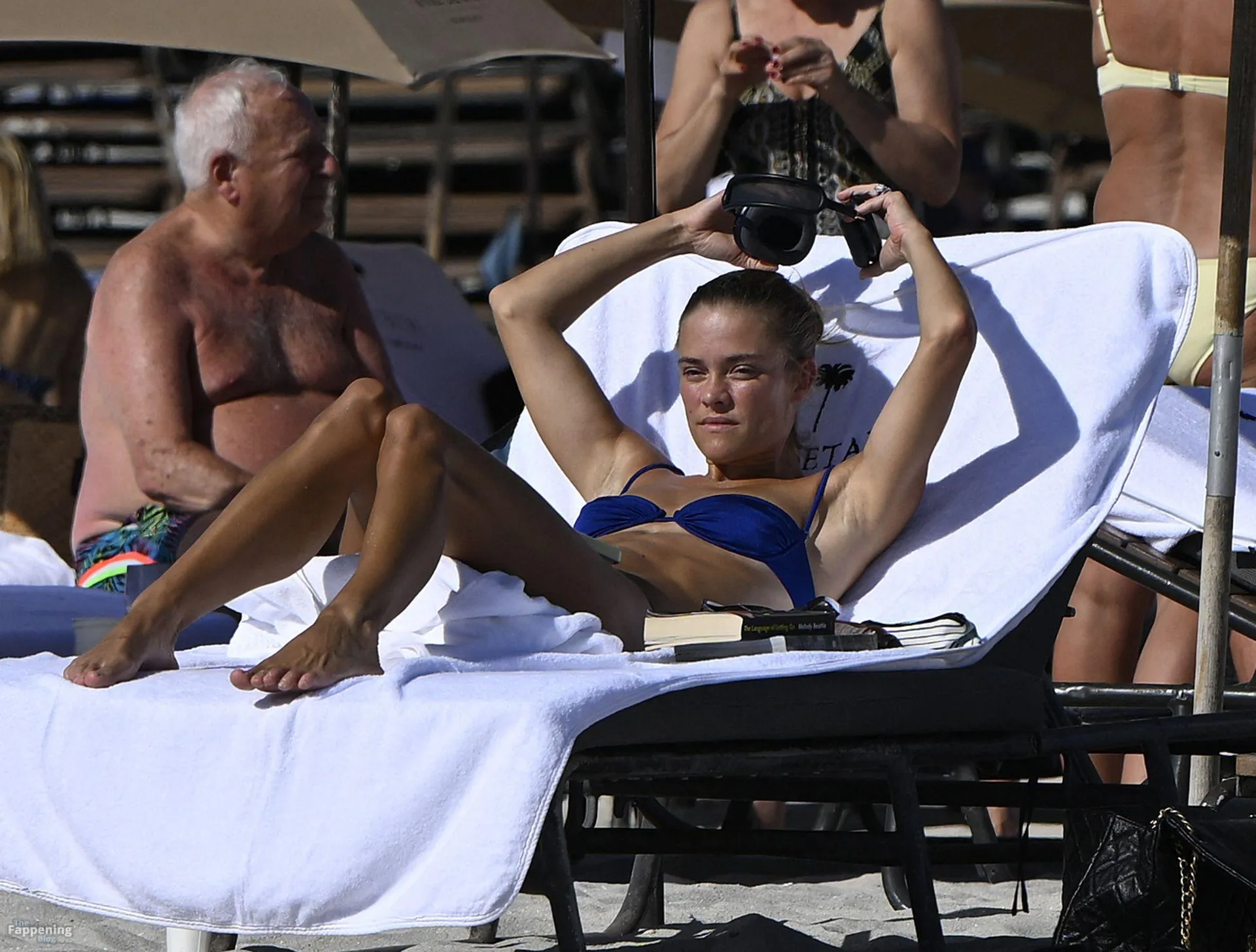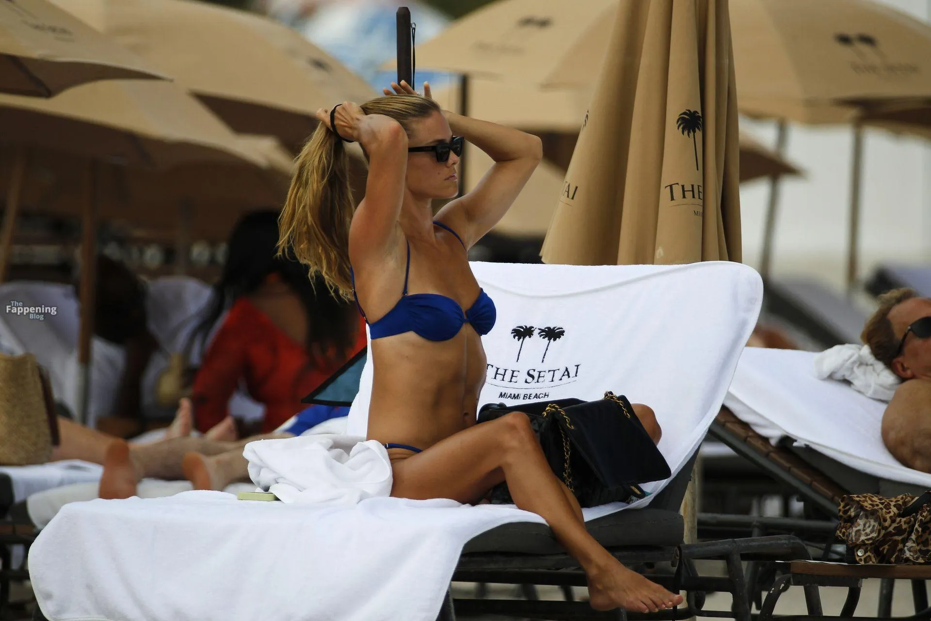 Danish model Nina Agdal was spotted soakin’ up the sun on Miami Beach, rockin’ a blue bikini before changing into a chic leopard print outfit.