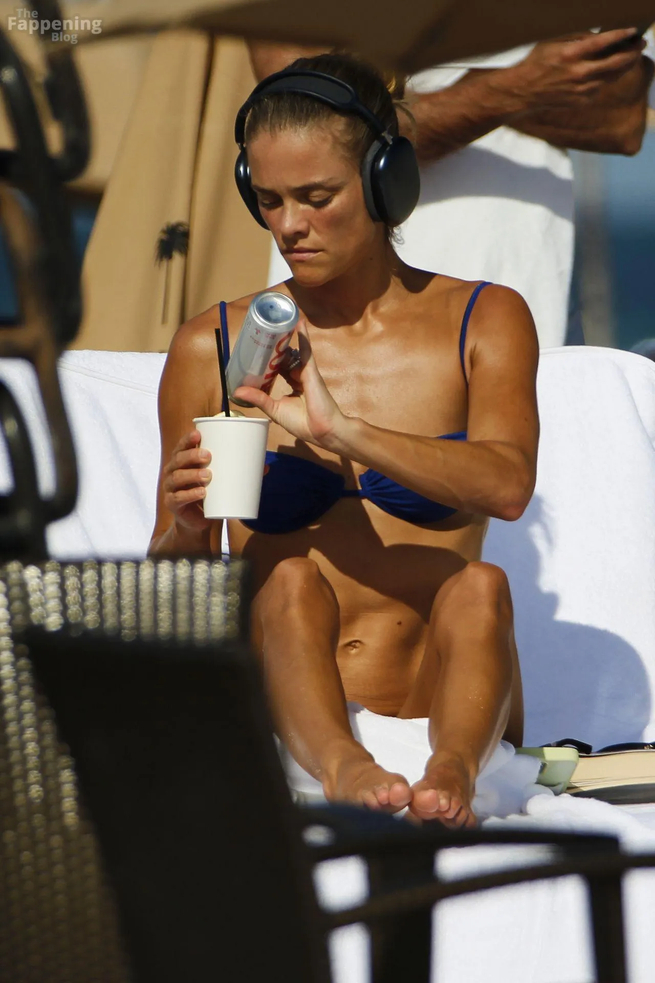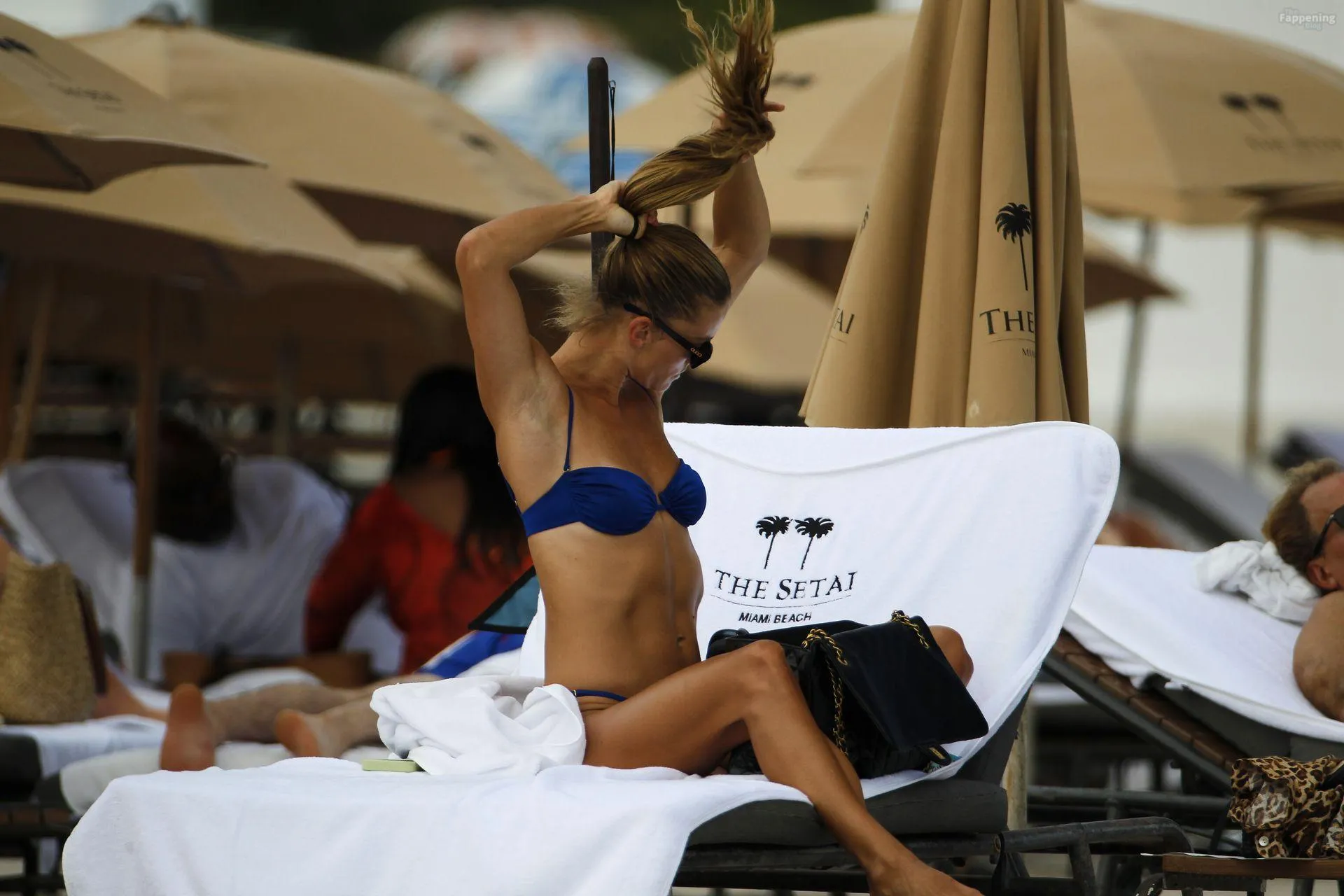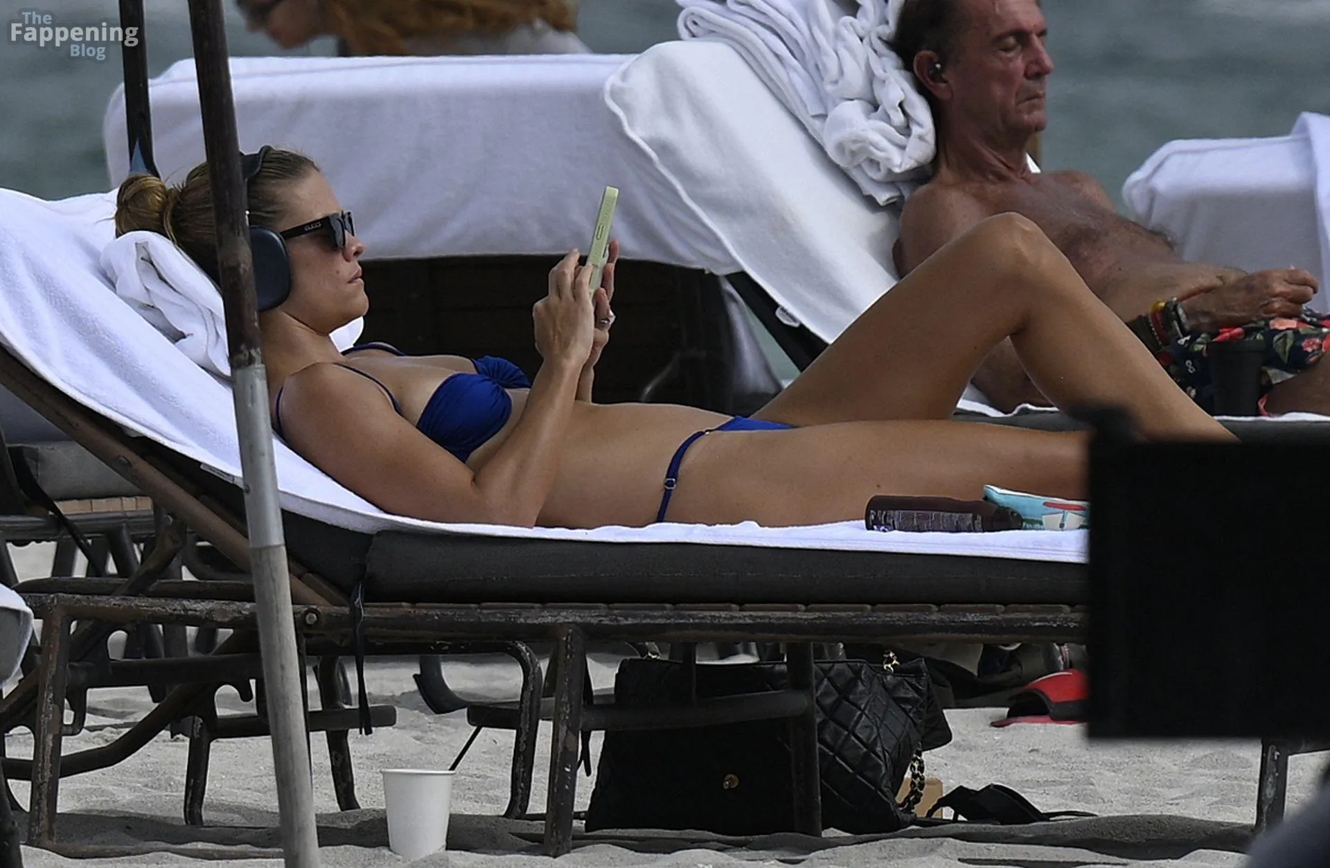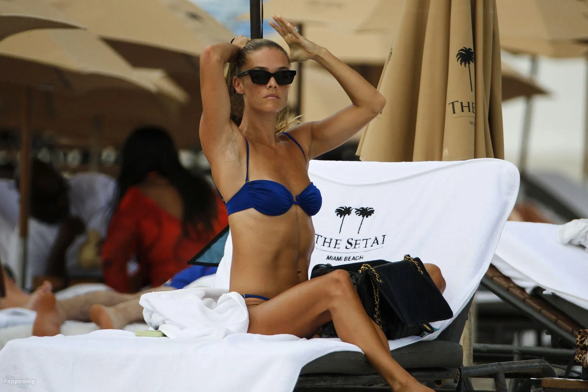 Danish model Nina Agdal was spotted soakin’ up the sun on Miami Beach, rockin’ a blue bikini before changing into a chic leopard print outfit.